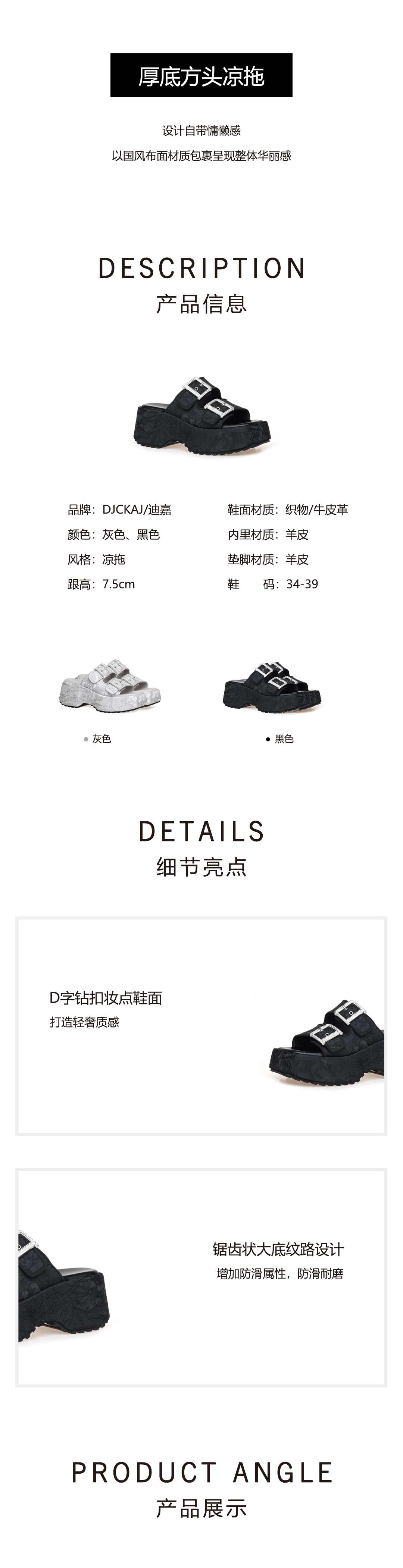 豪麟名鞋奥莱迪嘉女鞋凉拖织物/牛皮革DJYYO51WL209灰色 原价1960元