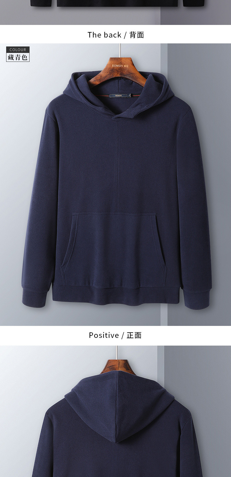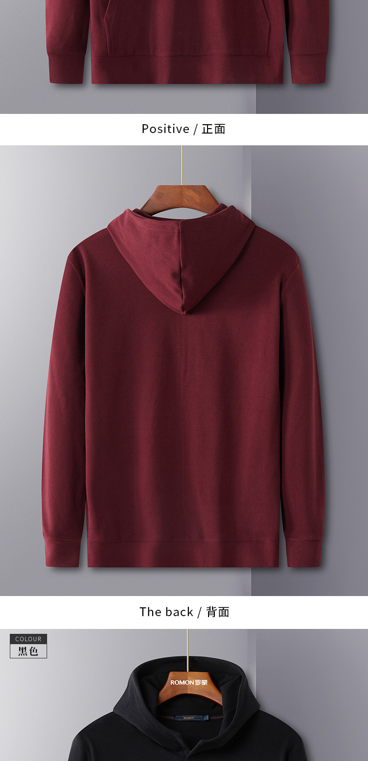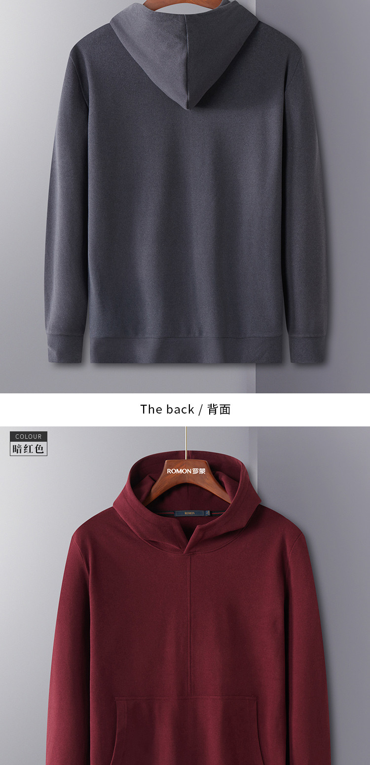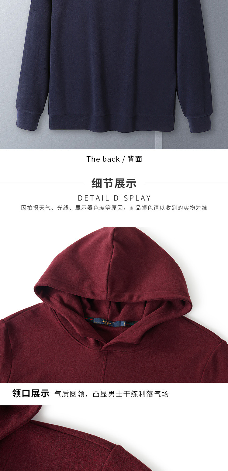 【厚实保暖】罗蒙秋冬男装连帽卫衣男士休闲学院风纯色简约卫衣外套男