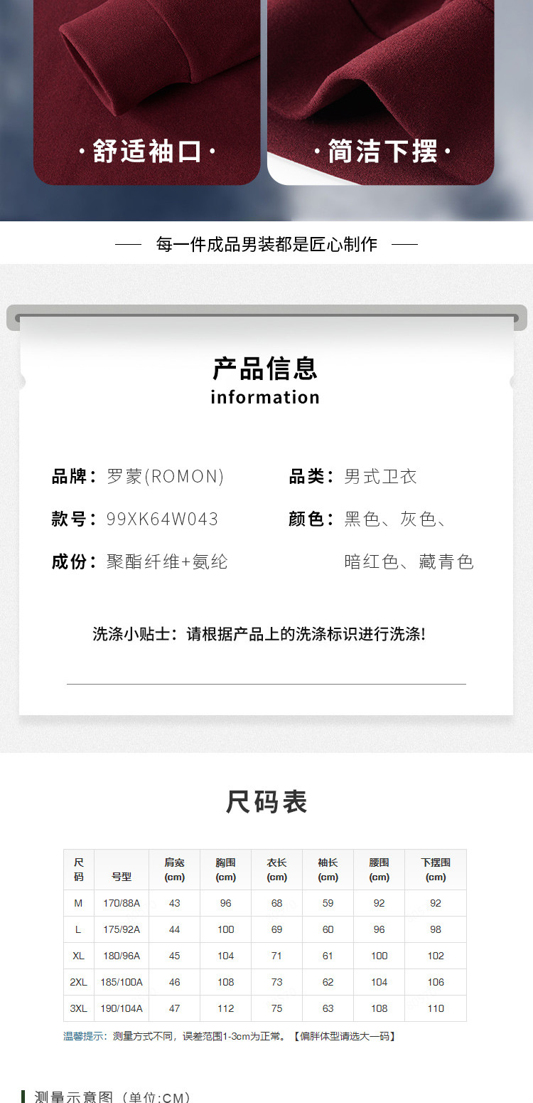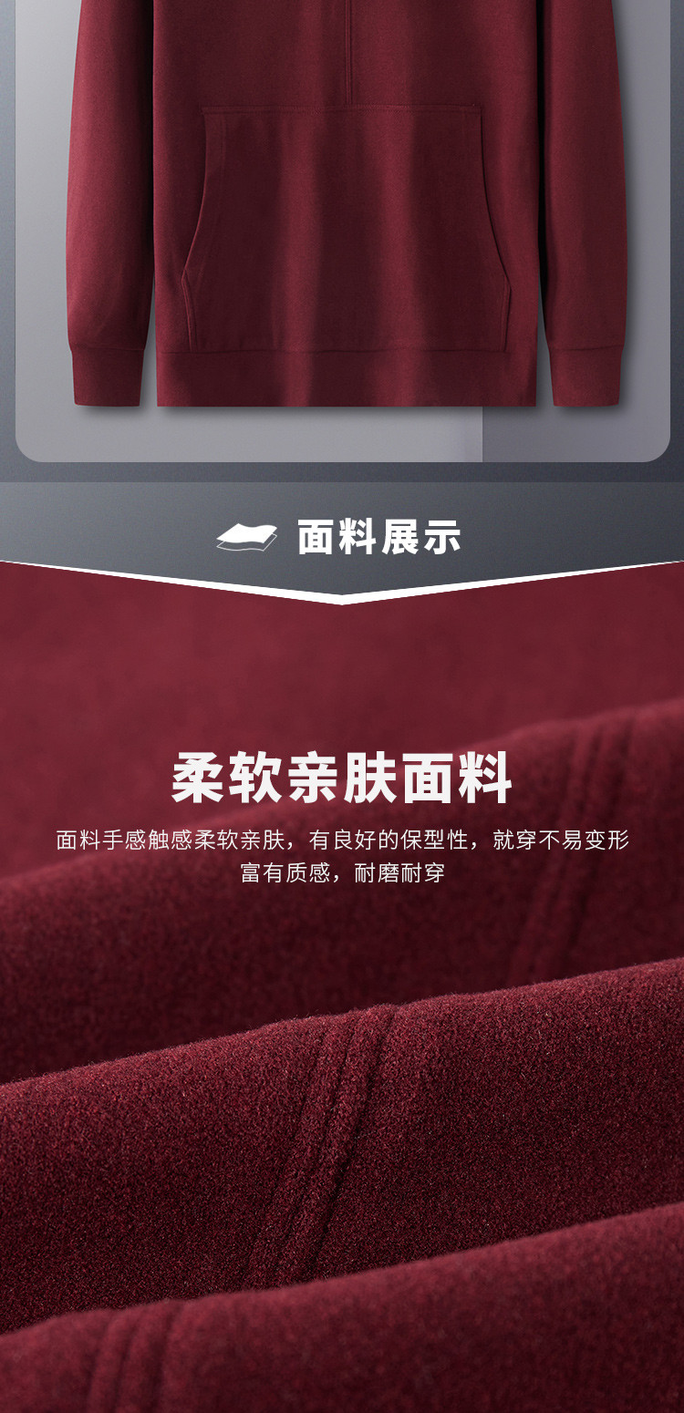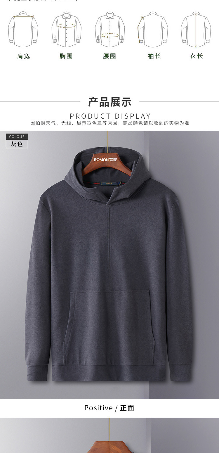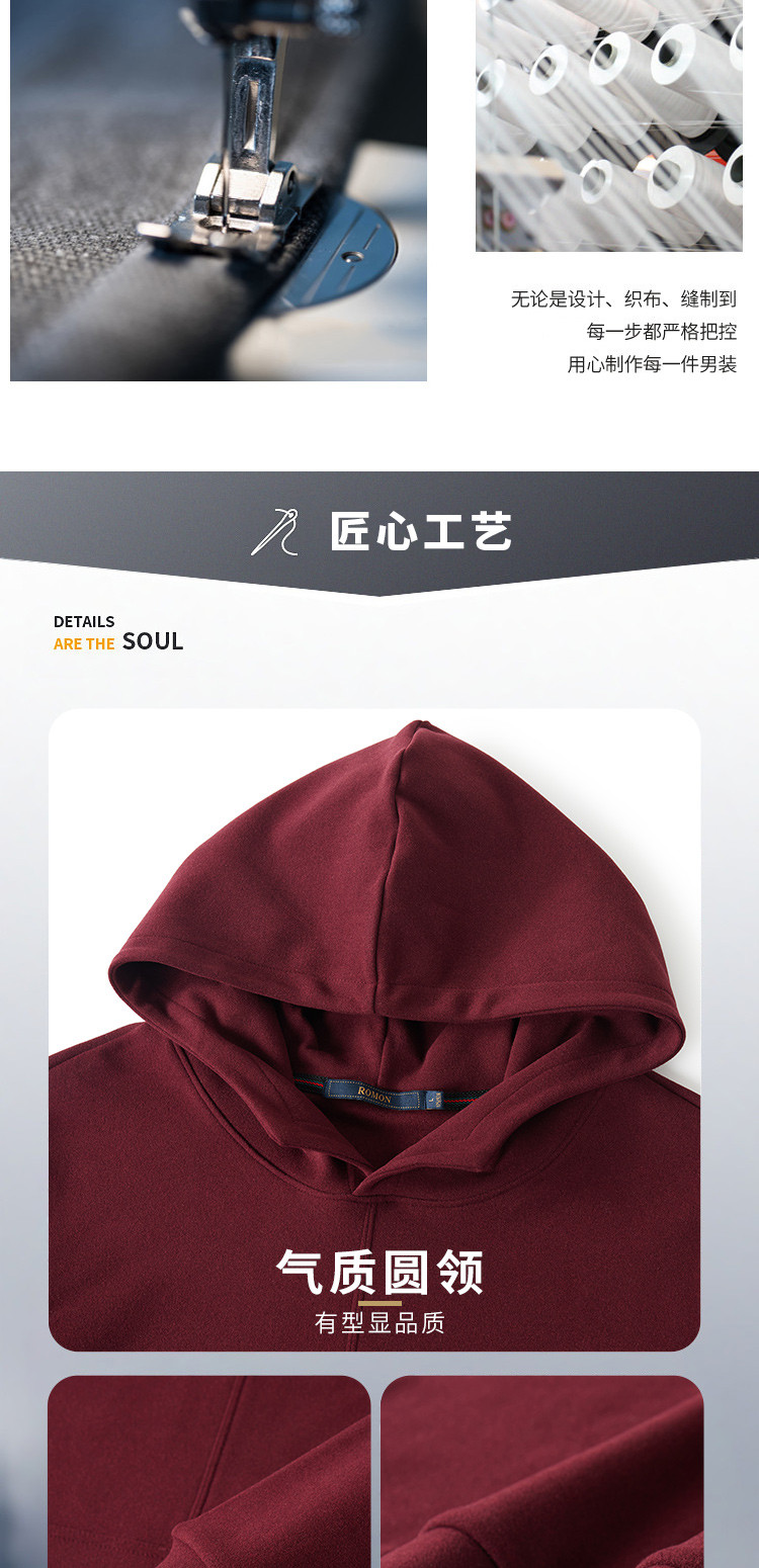 【厚实保暖】罗蒙秋冬男装连帽卫衣男士休闲学院风纯色简约卫衣外套男