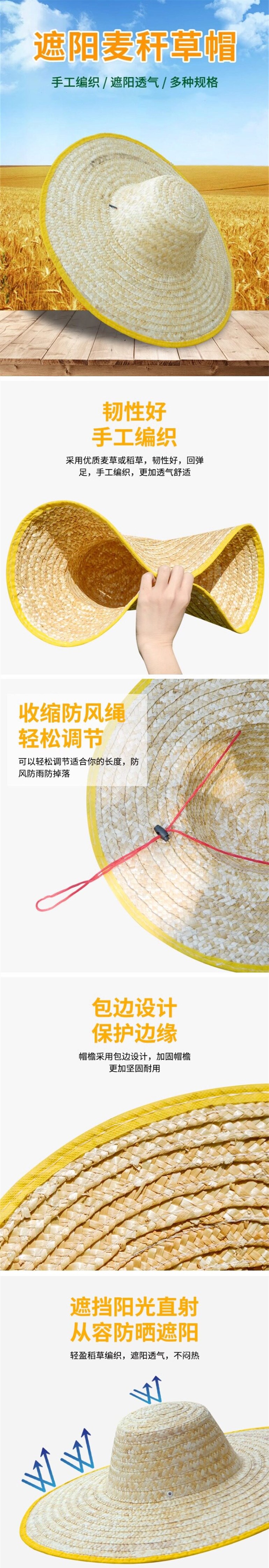 户外大草帽 手工麦秆草帽 工地钓鱼户外大檐太阳帽 45cm 包边 田园遮阳防晒 1顶