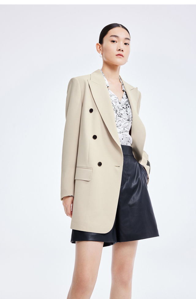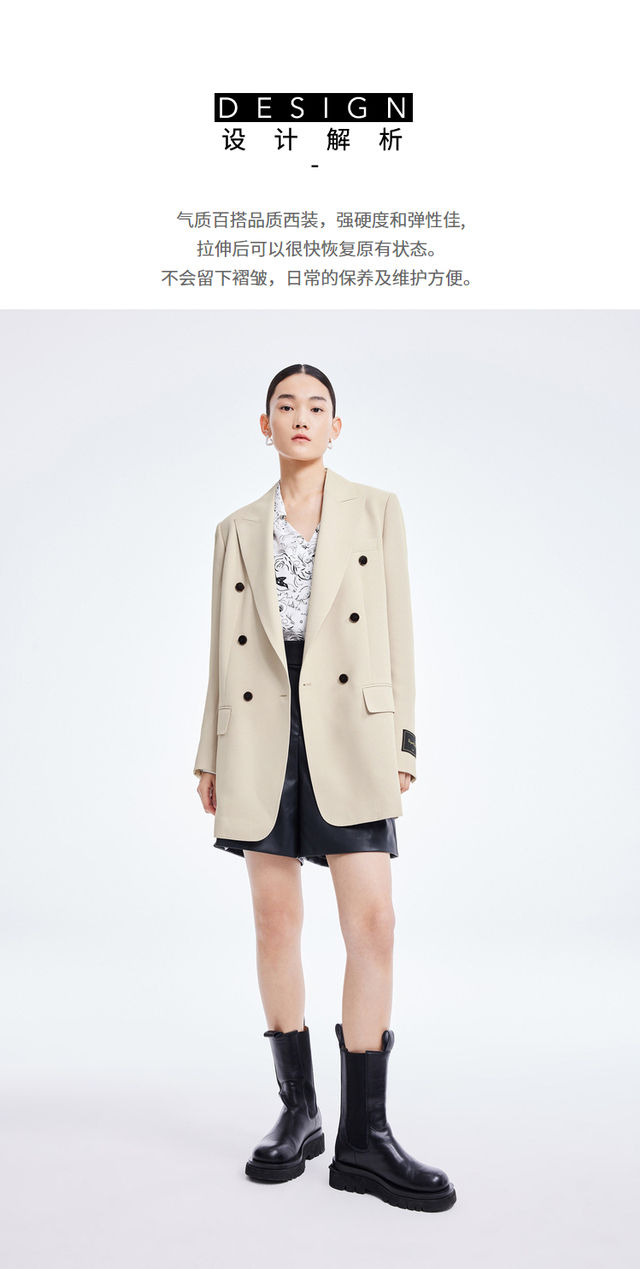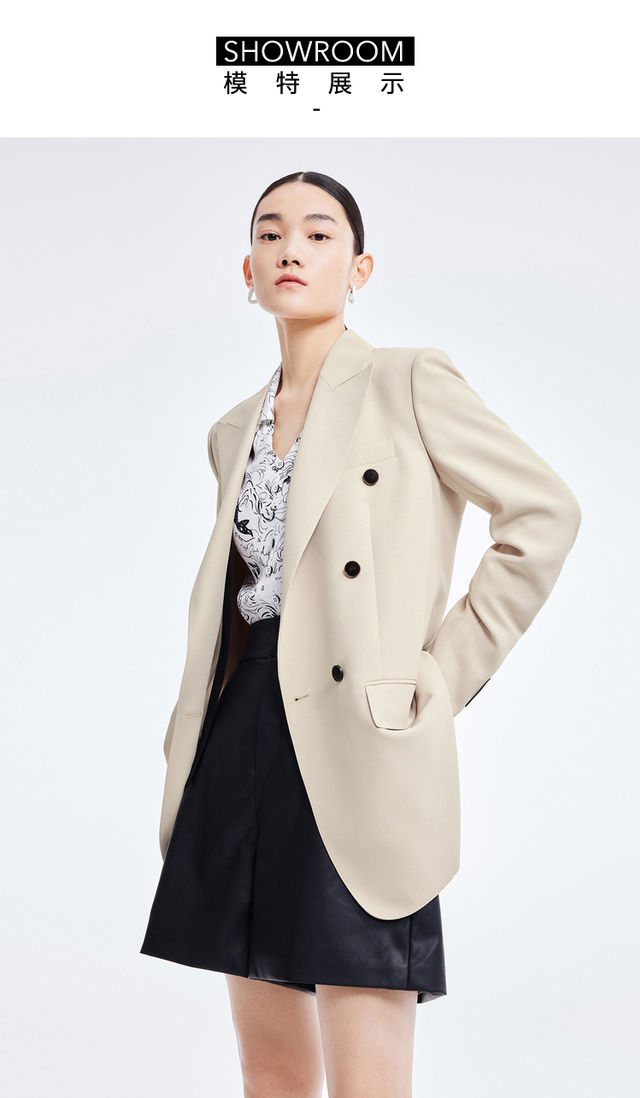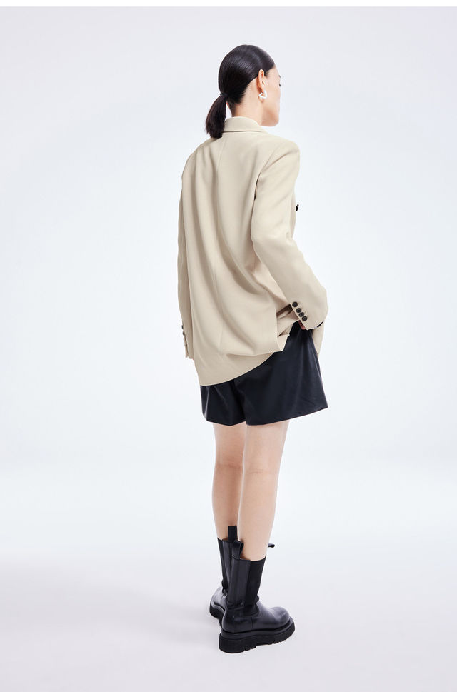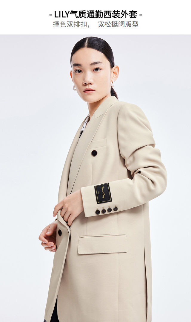LILY2022夏新款女装气质通勤款撞色排扣宽松西装外套122200c2165