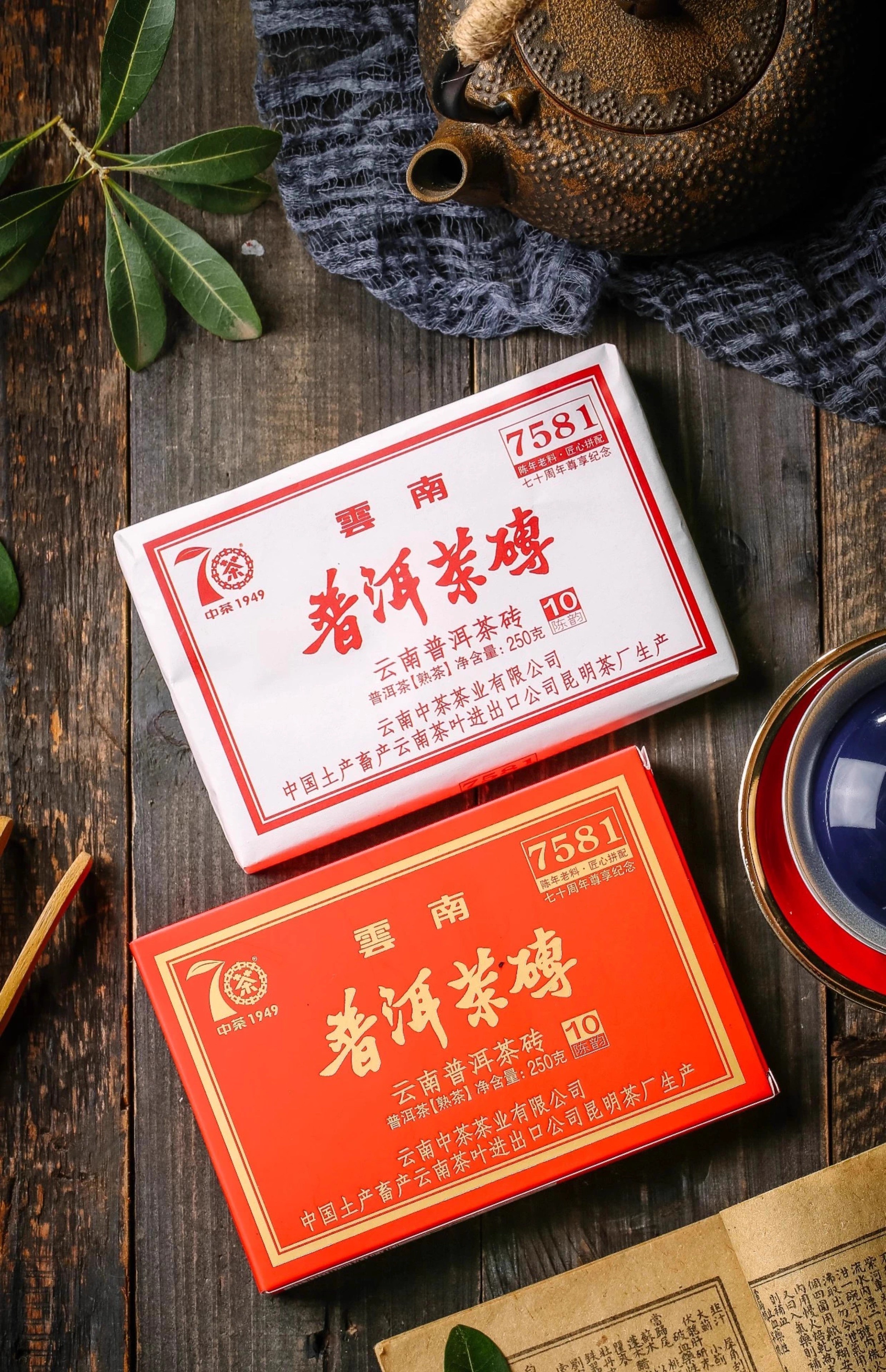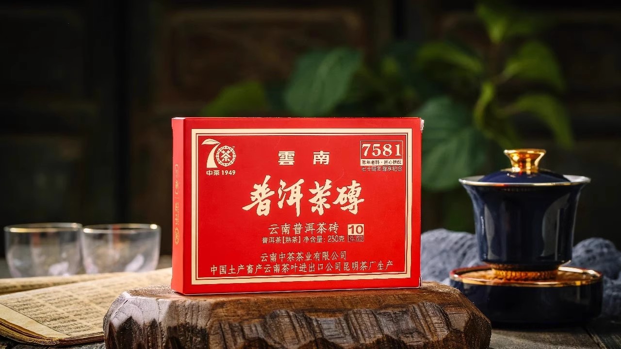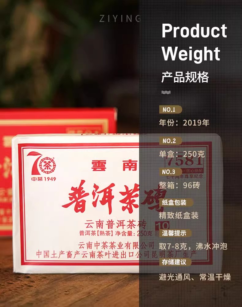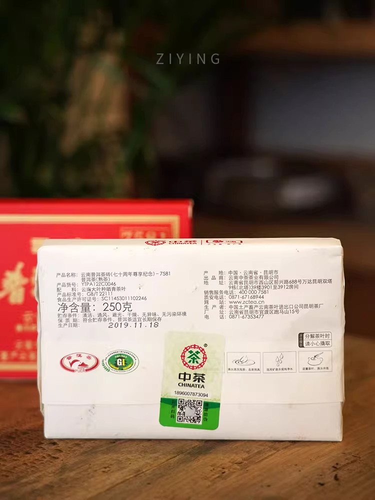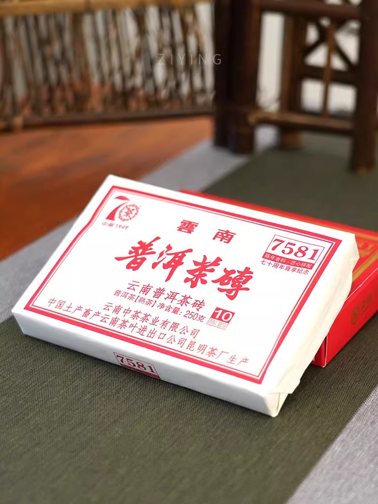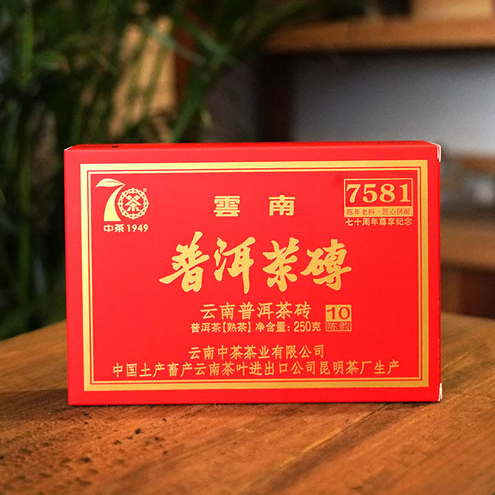 中粮-中茶 2019年10年陈7581 中茶普洱茶砖熟茶 七十周年尊享纪念普洱熟砖 /云南干仓直发