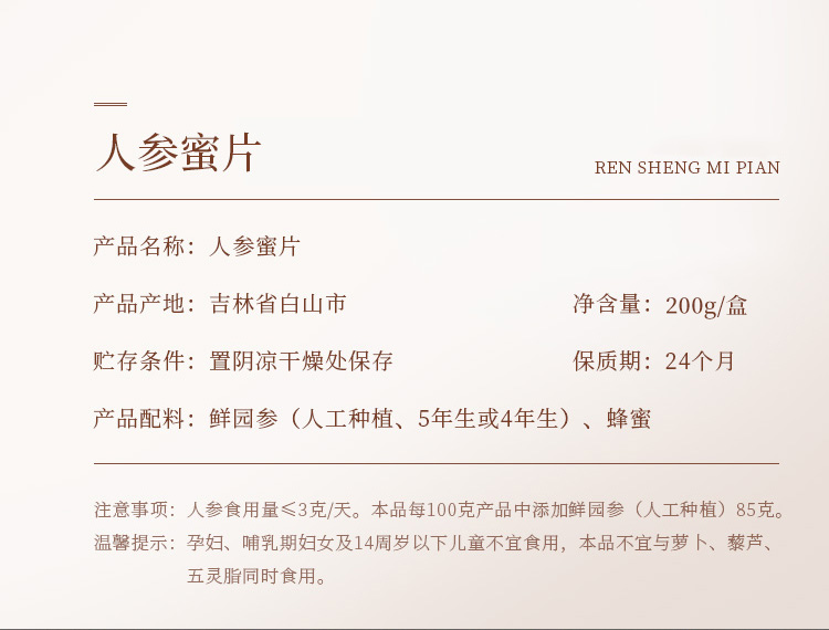 【自营】精品人参蜜片名礼盒 200g