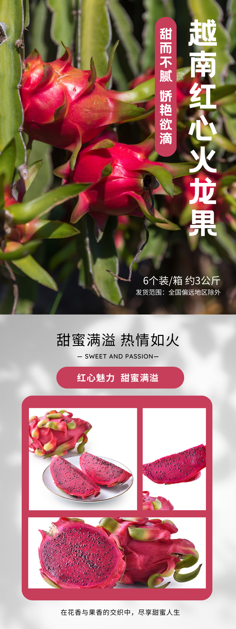 乡巴佬 越南红心火龙果(6个装)约6斤