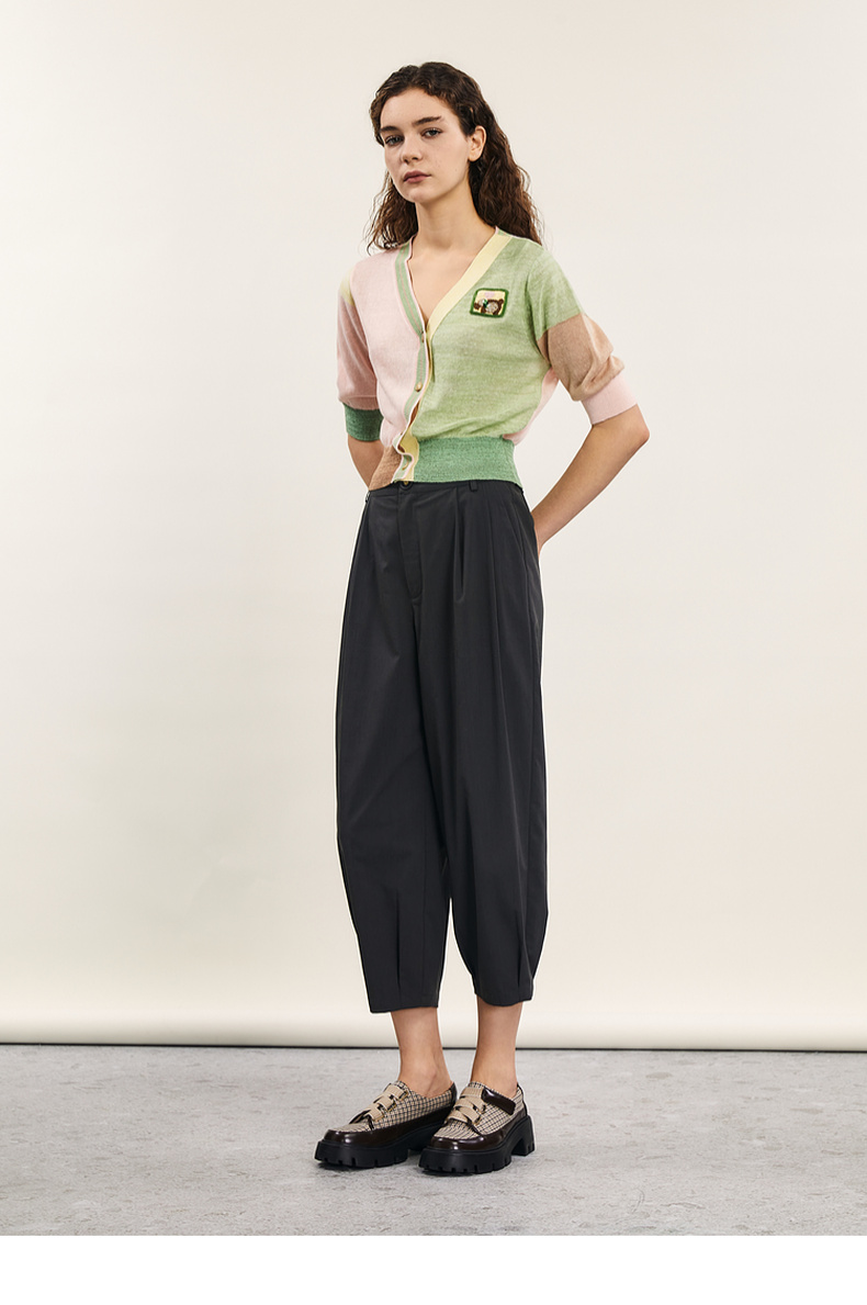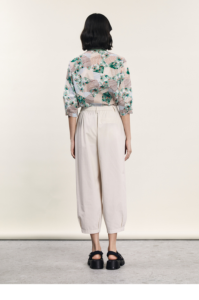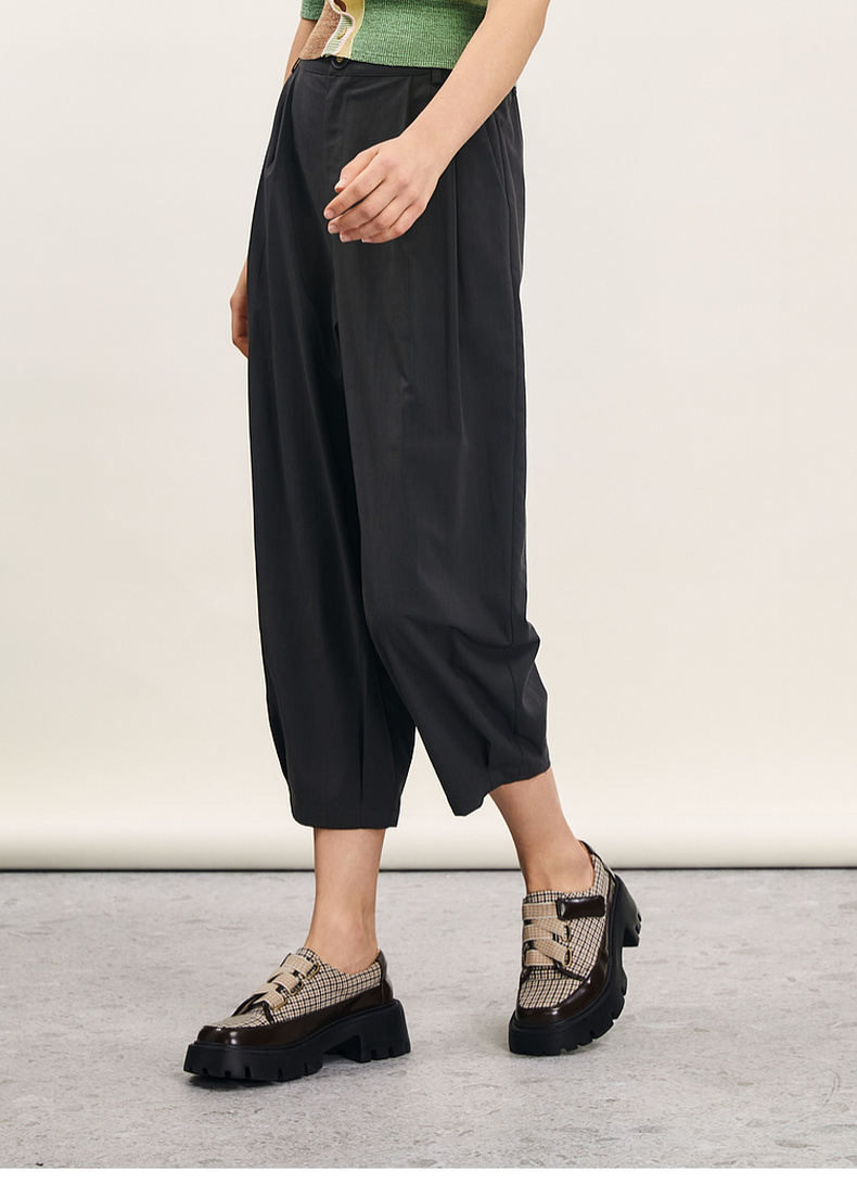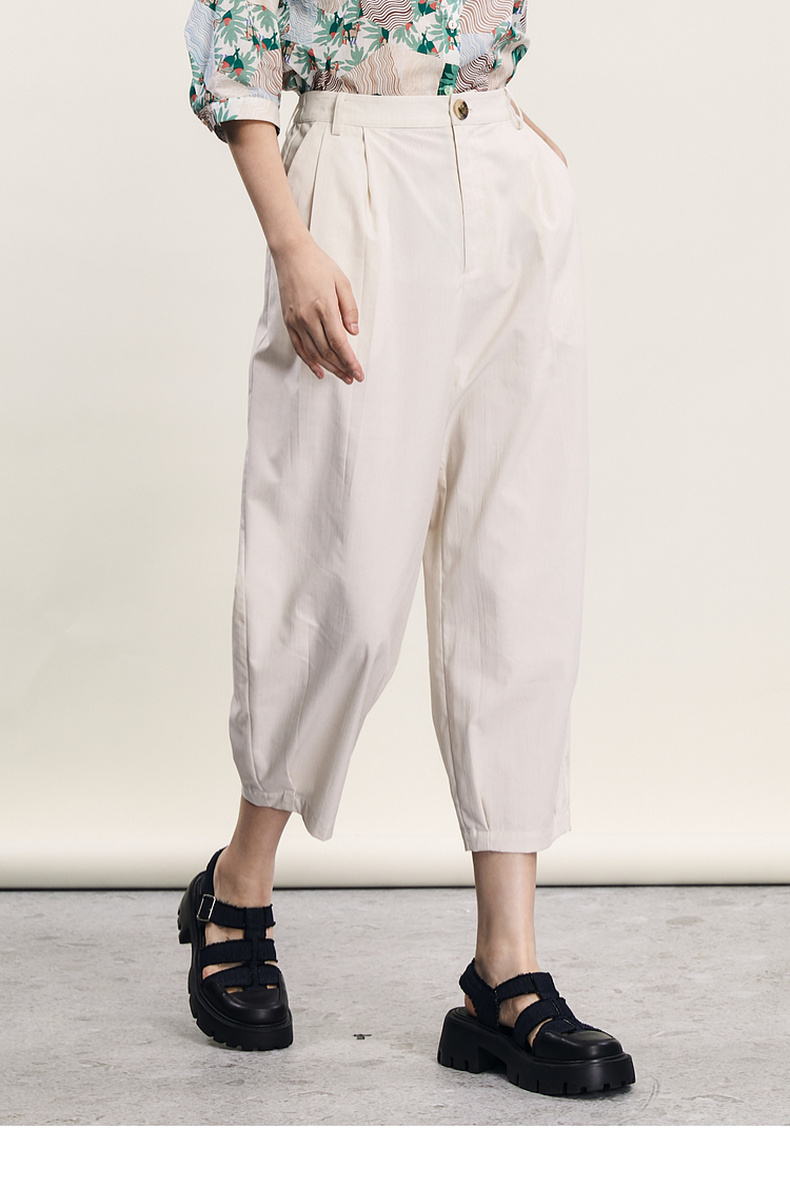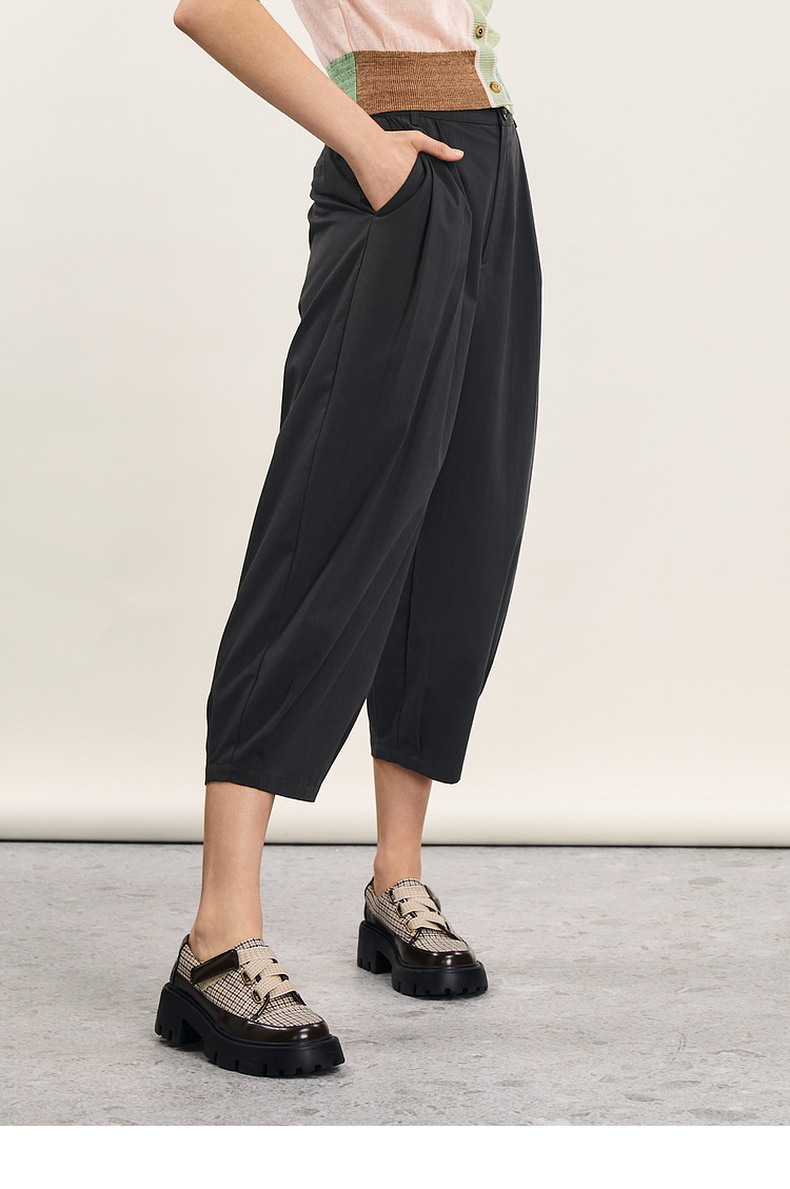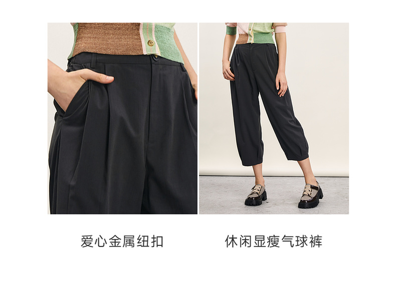 谜底休闲阔腿裤女士2024夏季新款通勤风简约宽松九分裤242MK0654