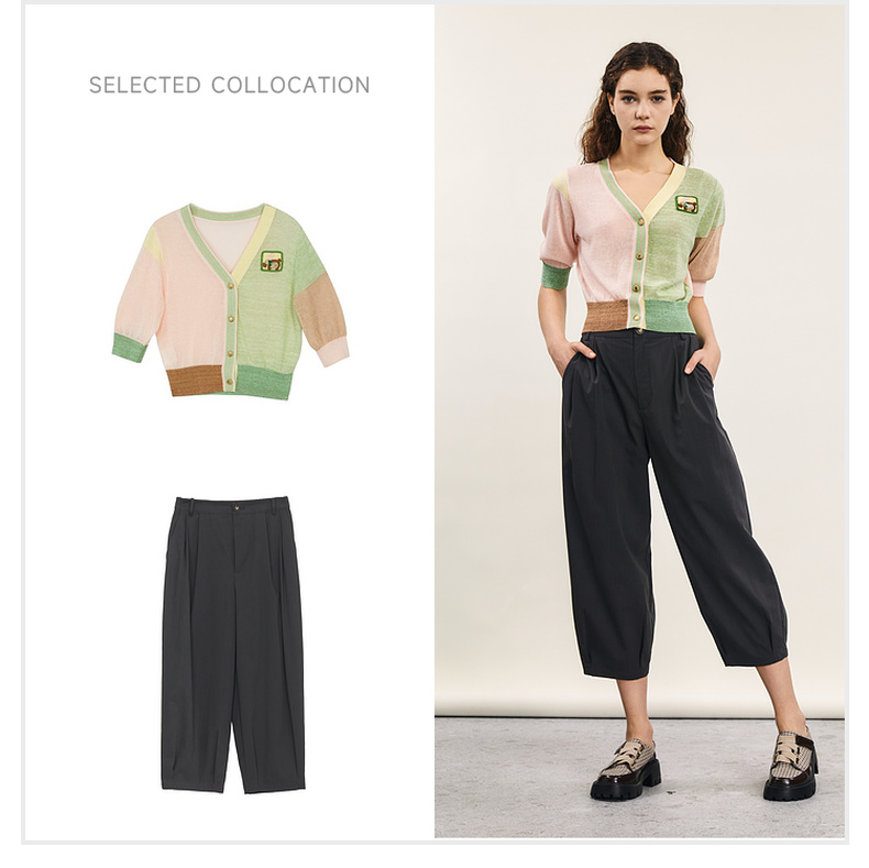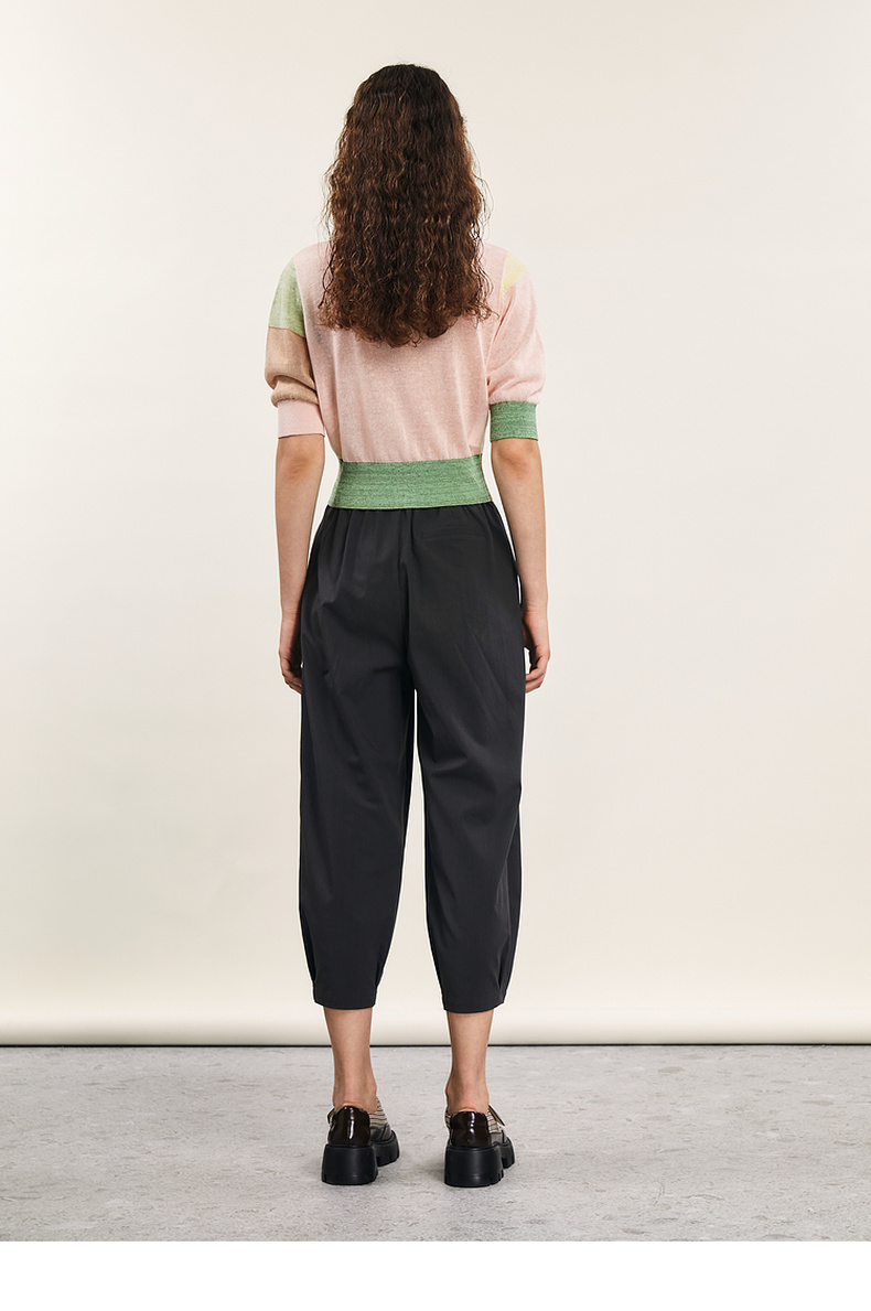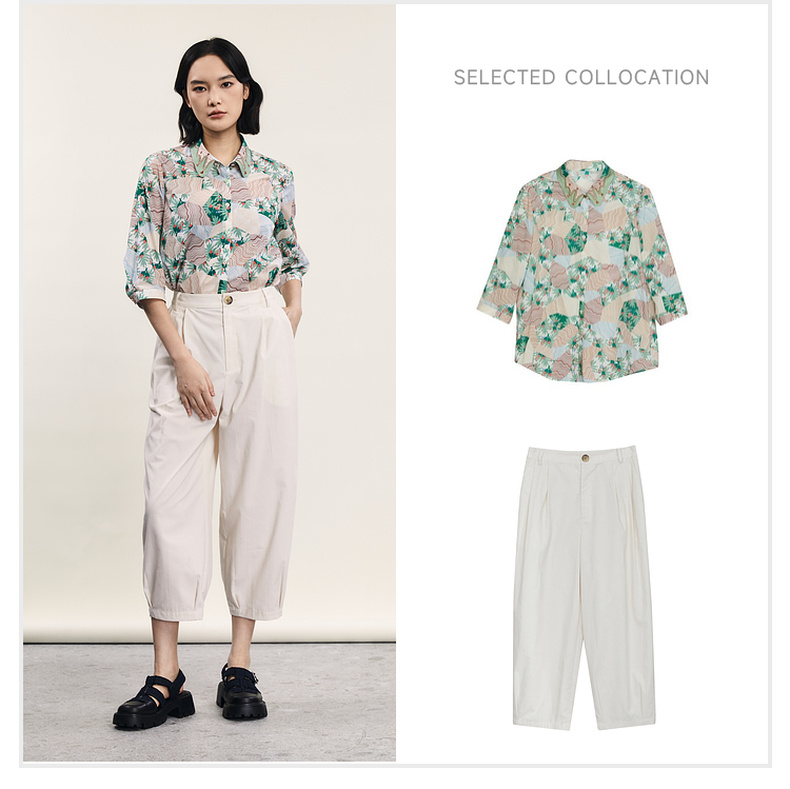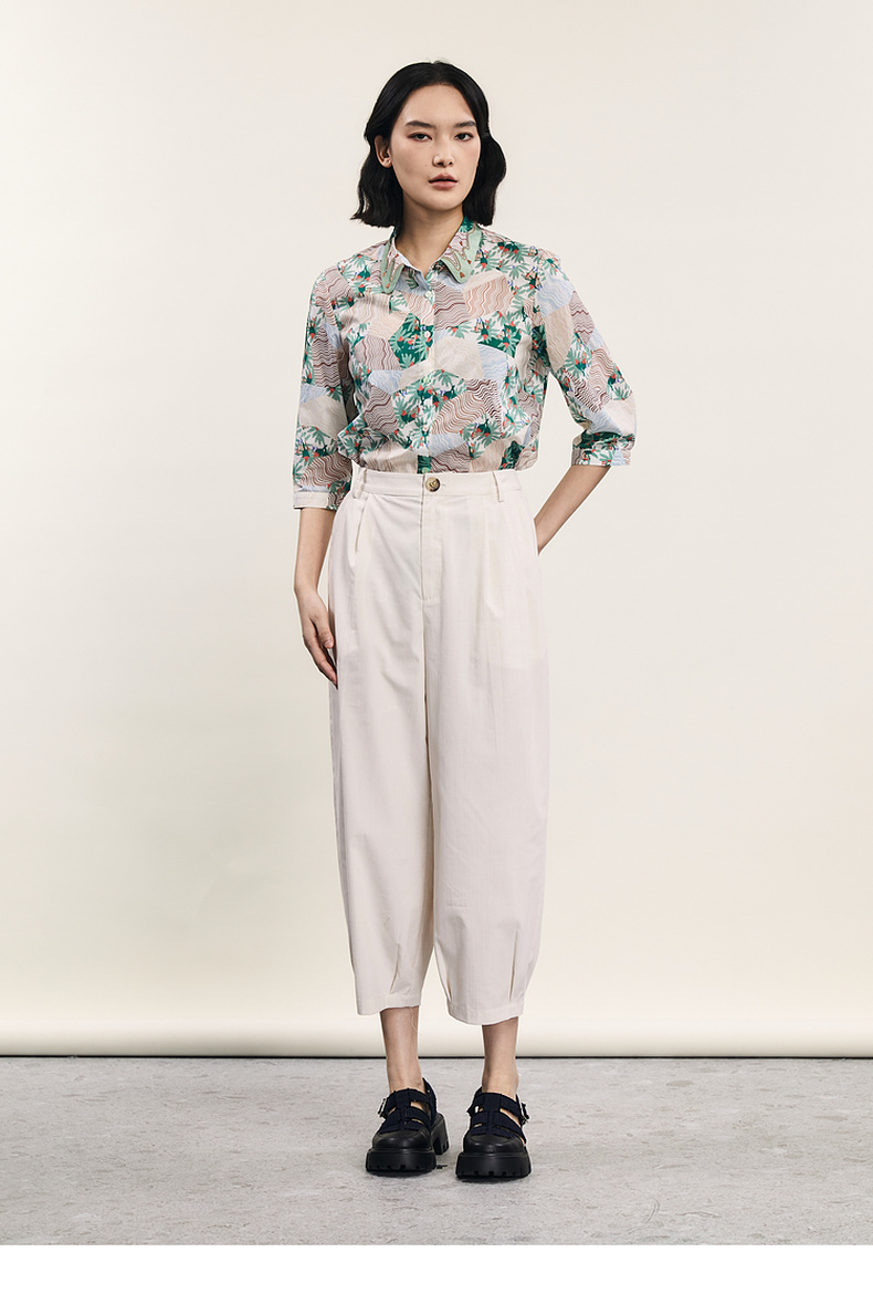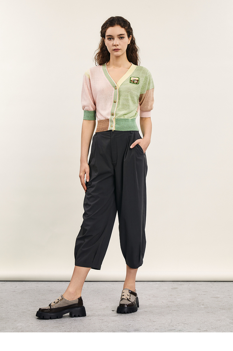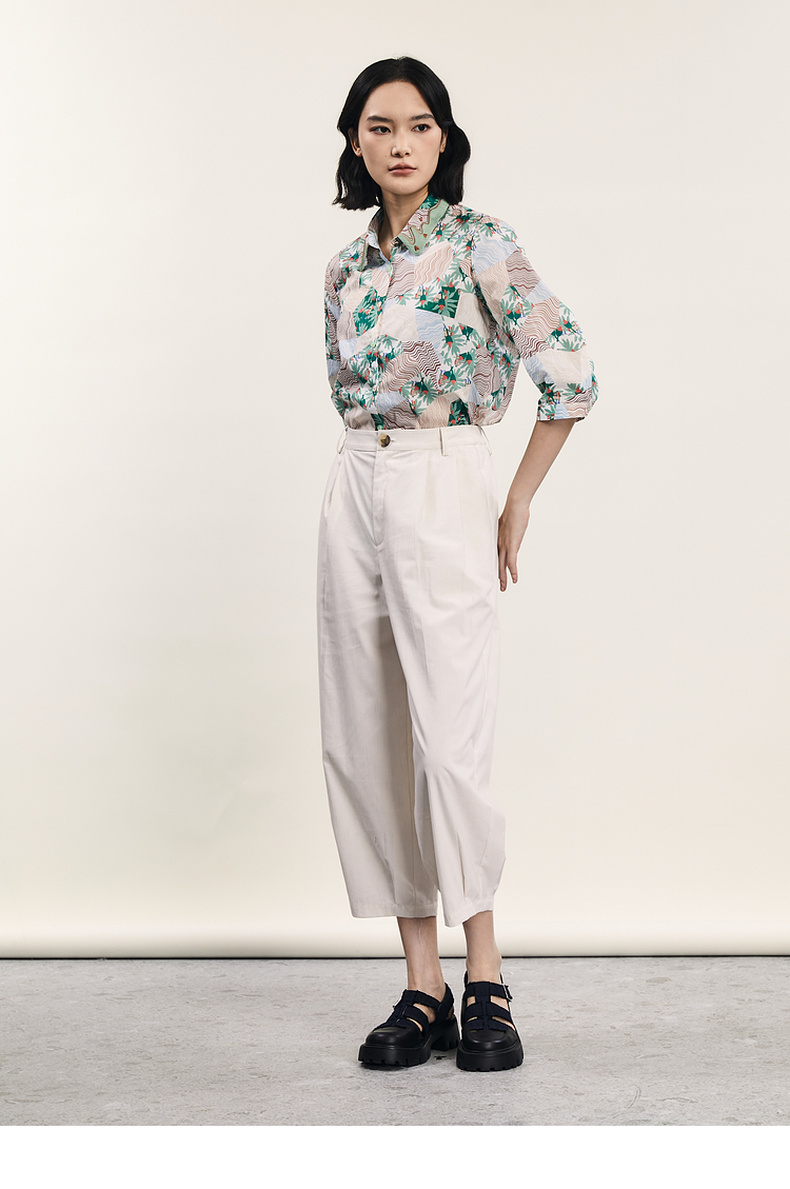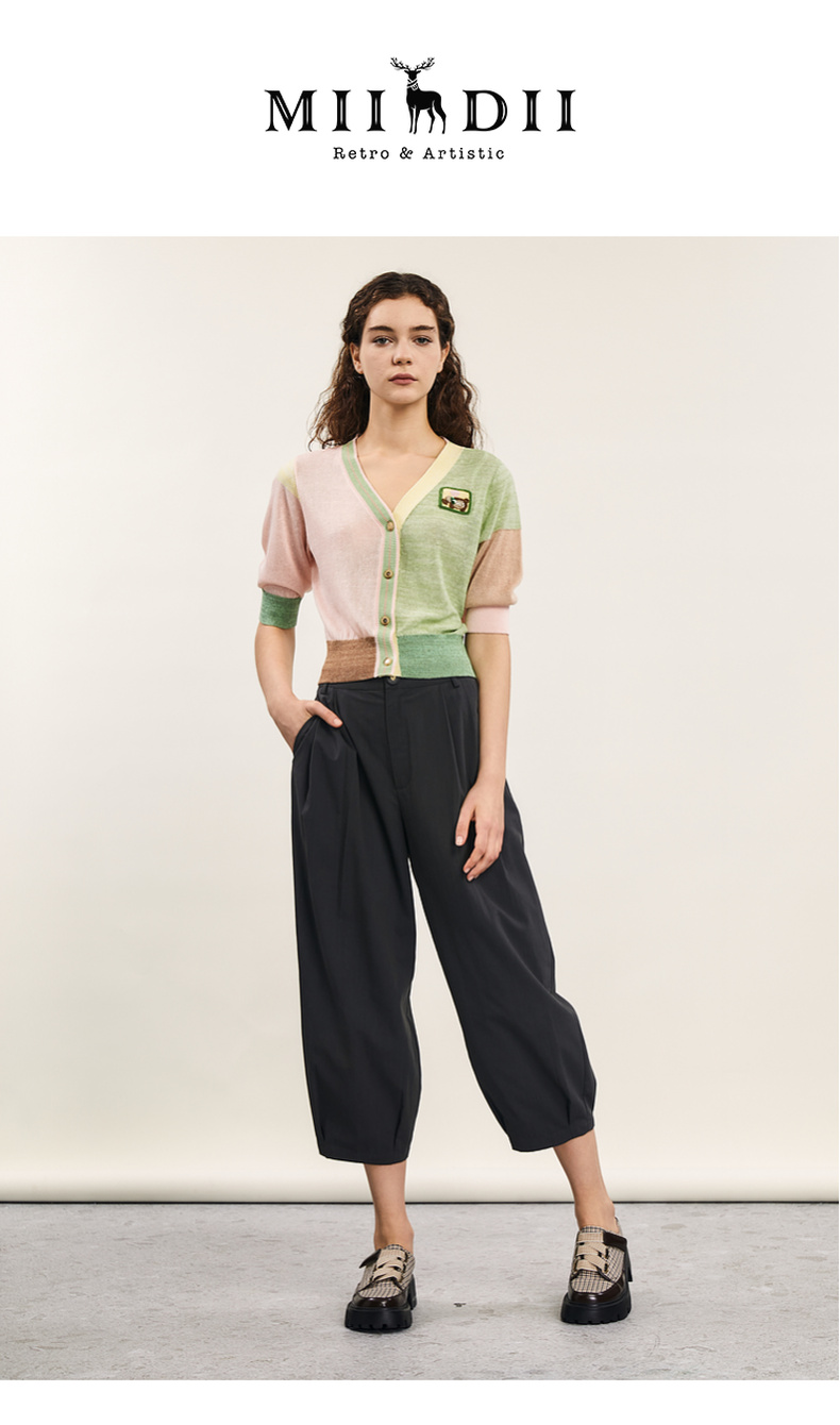 谜底休闲阔腿裤女士2024夏季新款通勤风简约宽松九分裤242MK0654
