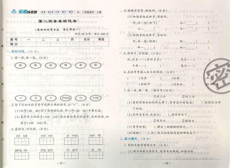 2025秋培优全能练考卷大字护眼 一二三四五六年级上册语文人教版数学北师大版试卷荣恒教育