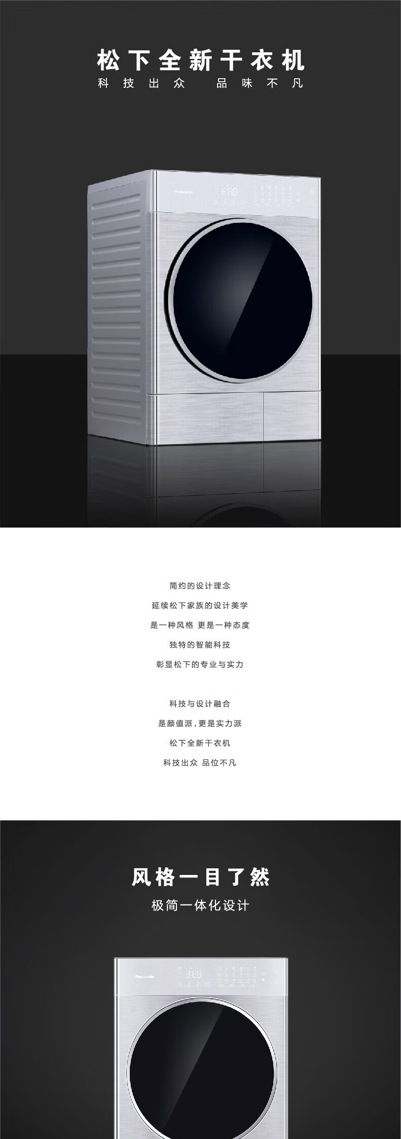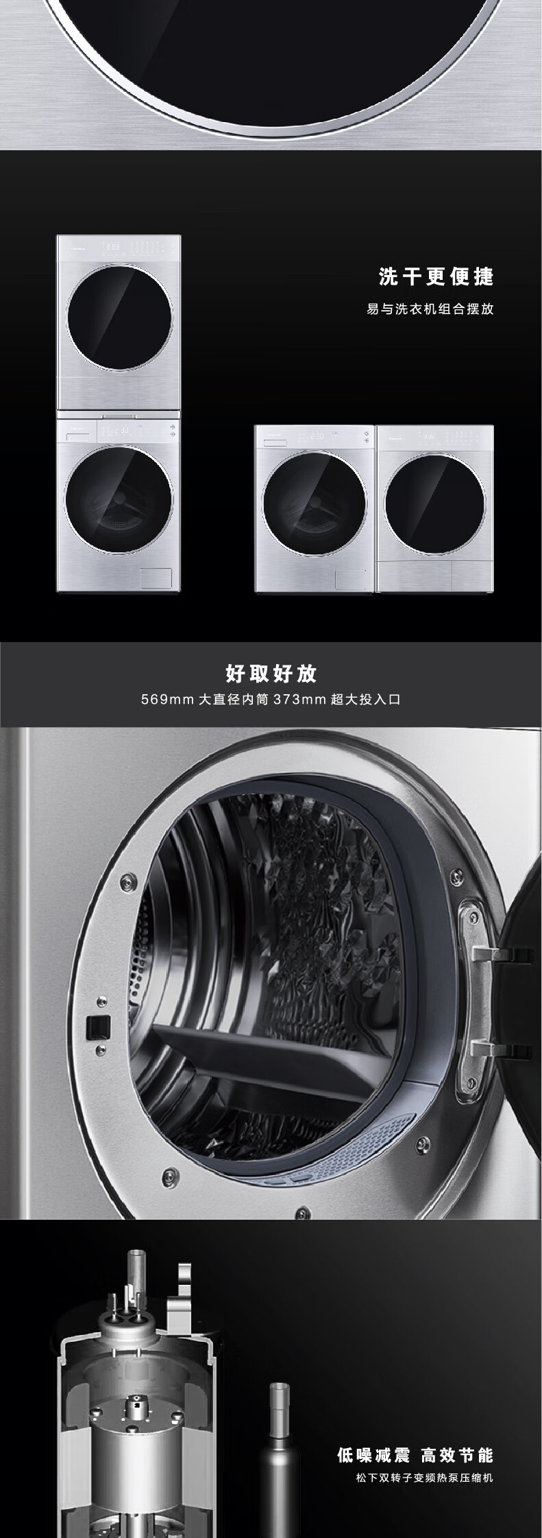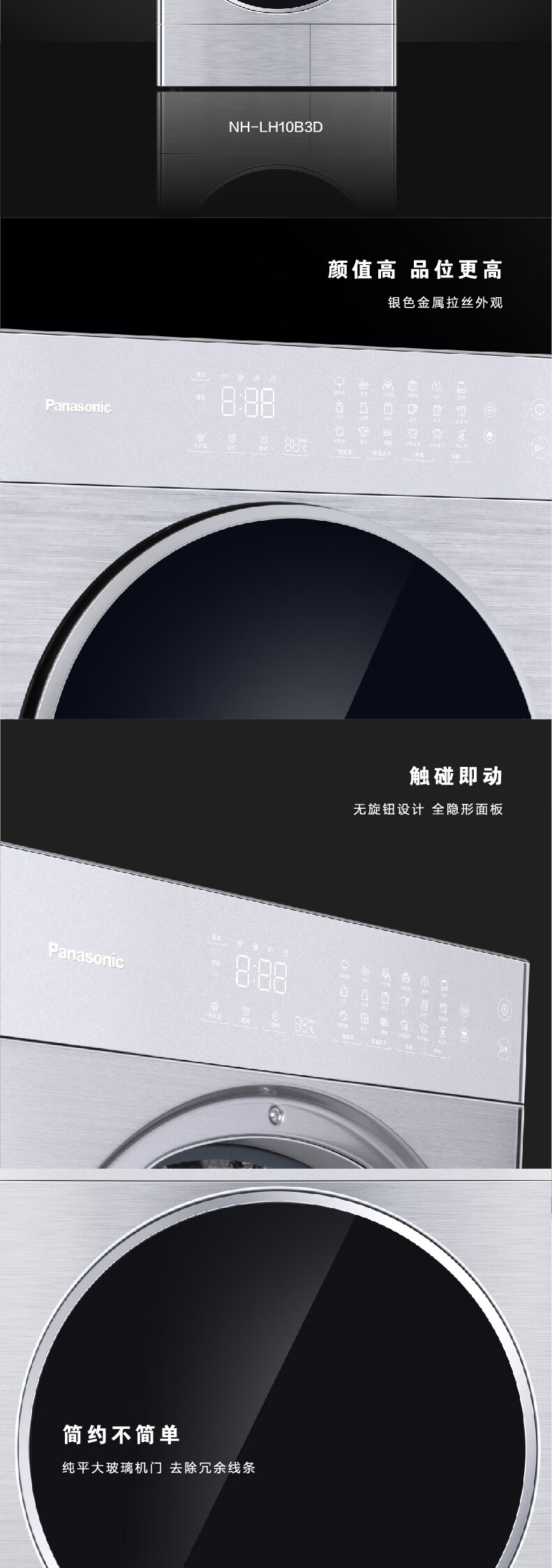 松下(Panasonic)L系列 10KG滚筒单洗+10KG烘干机 智能投放NH-LH10B3D+XQG100-L185