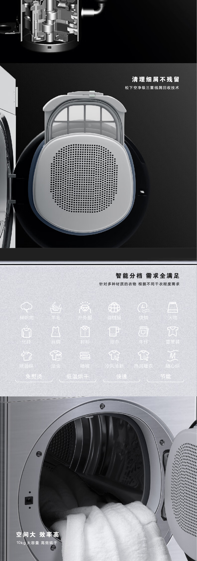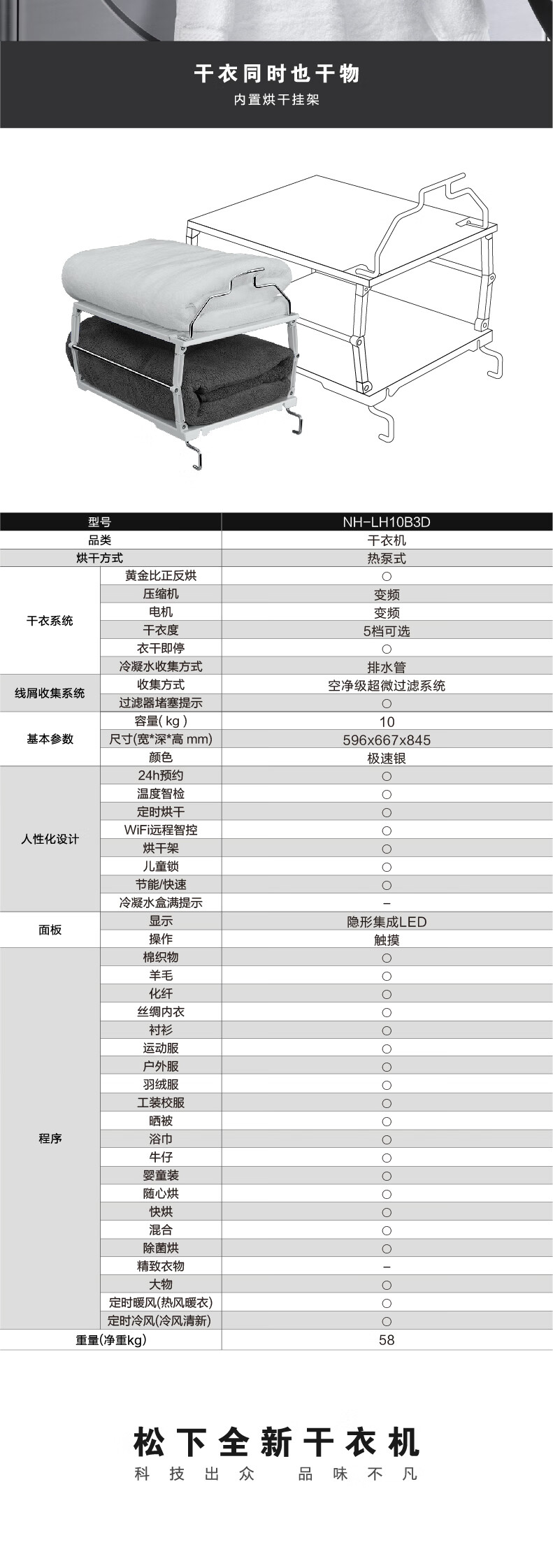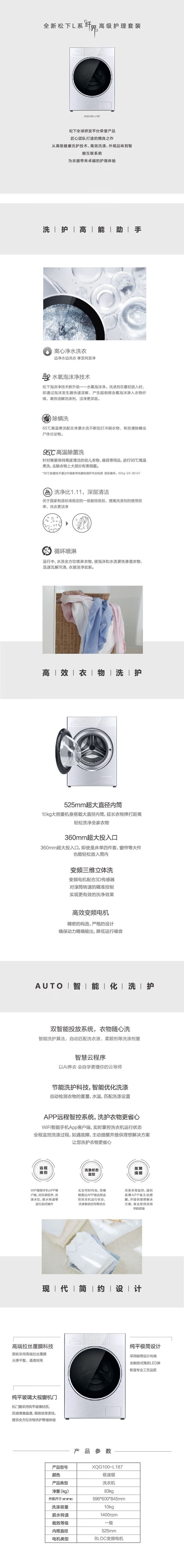 松下(Panasonic)L系列 10KG滚筒单洗+10KG烘干机 智能投放NH-LH10B3D+XQG100-L185