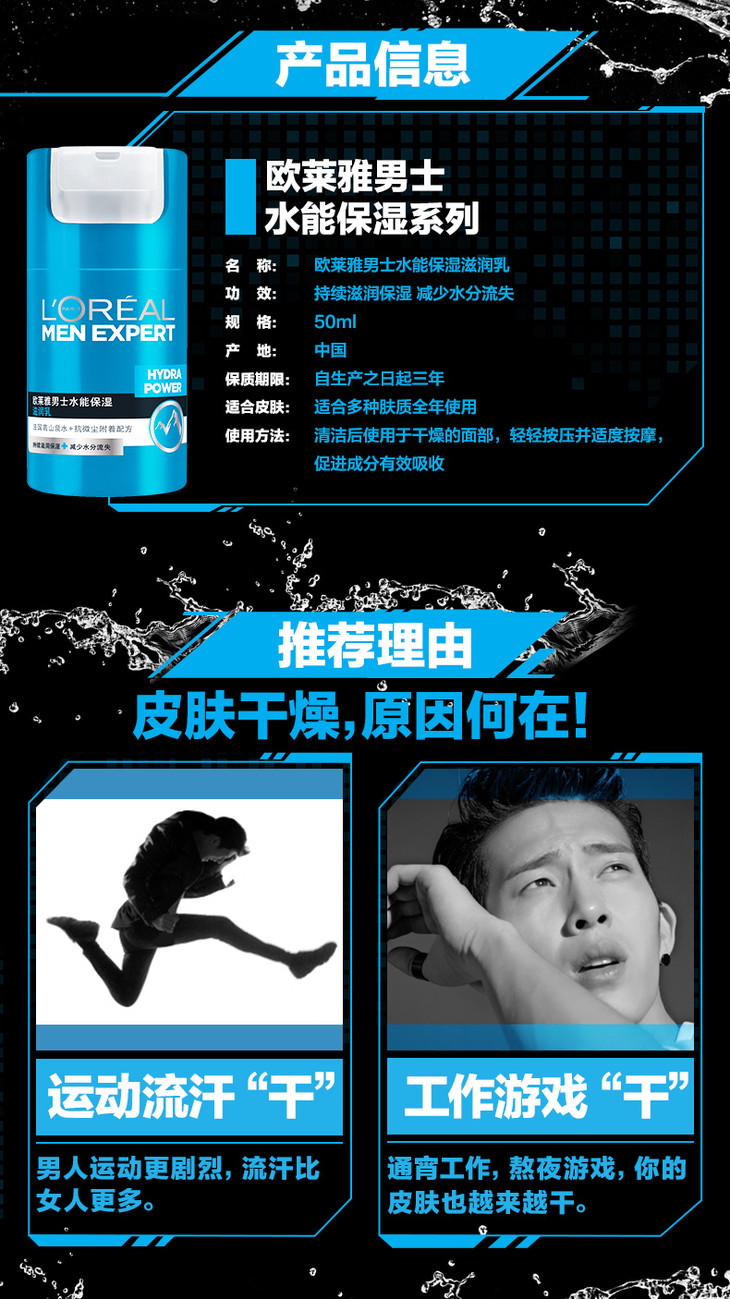 欧莱雅男士水能保湿滋润乳