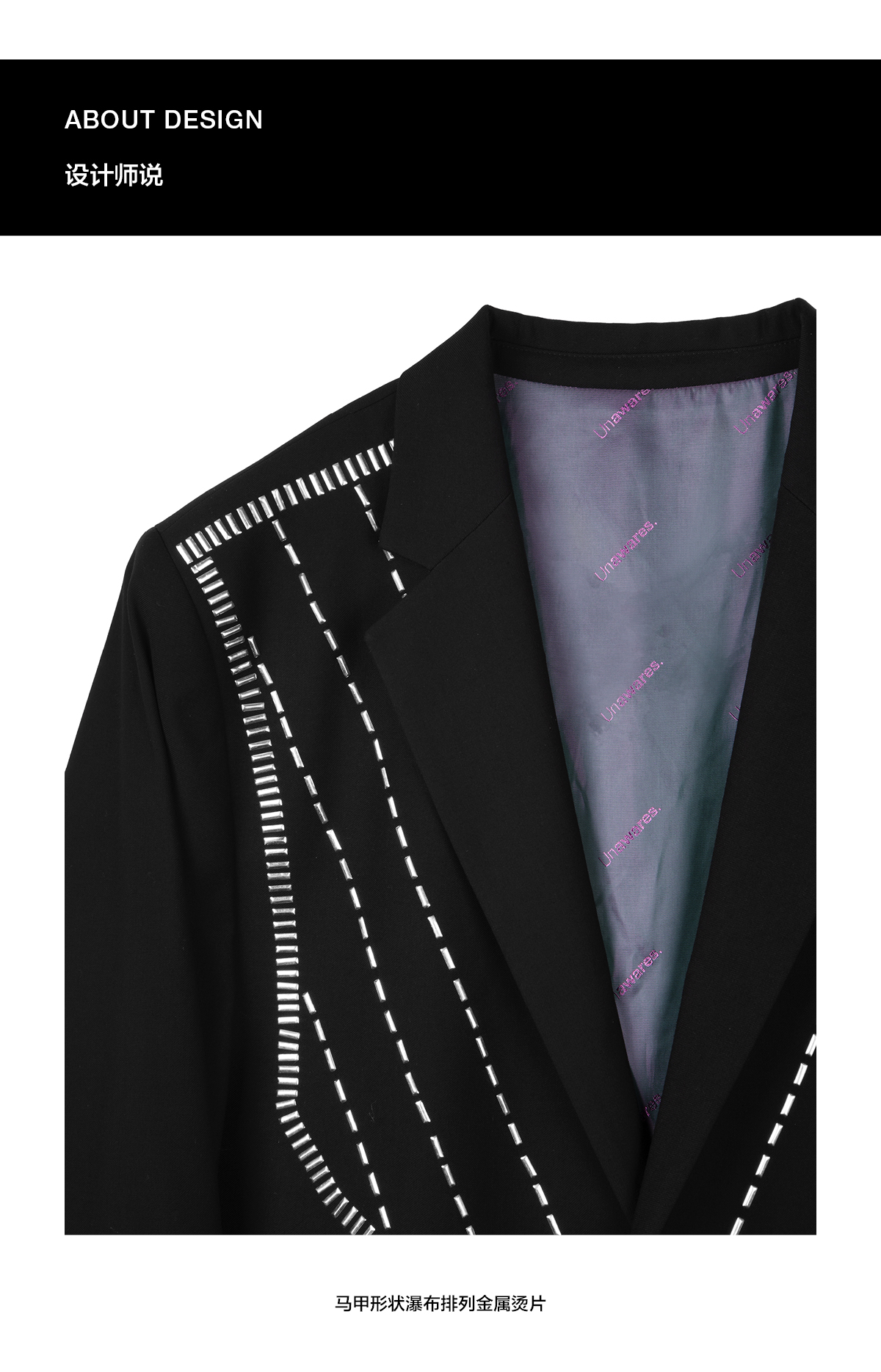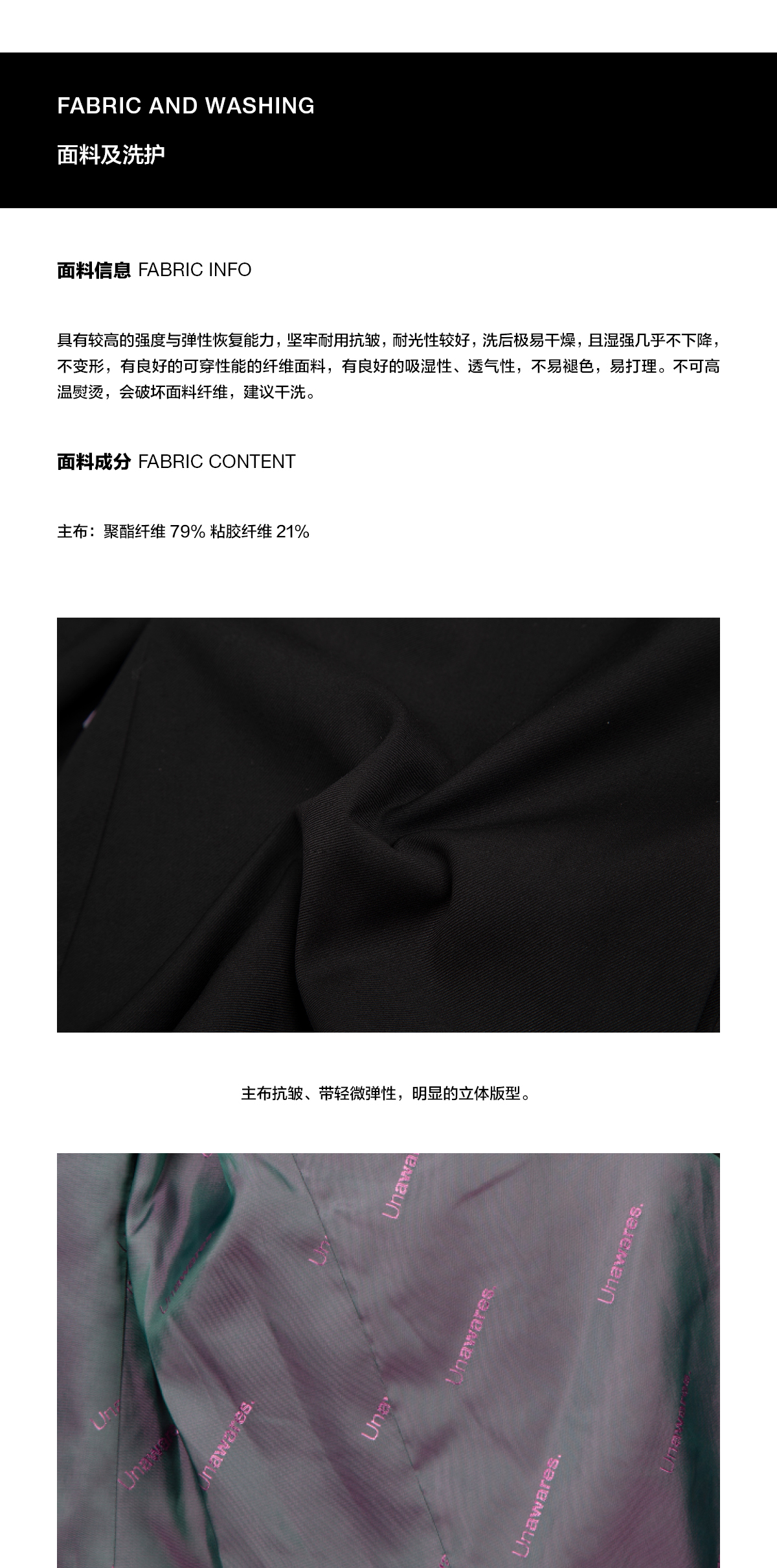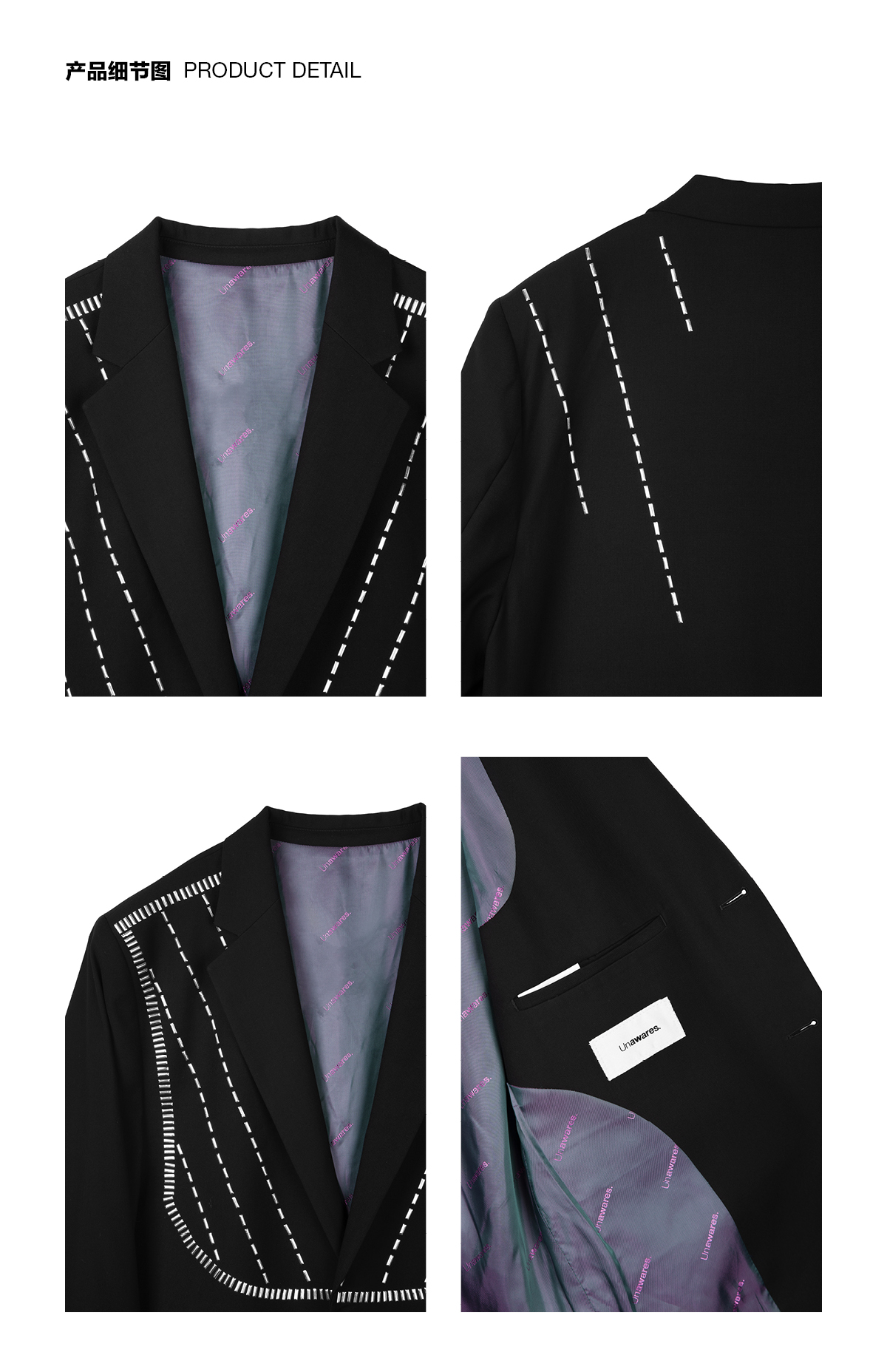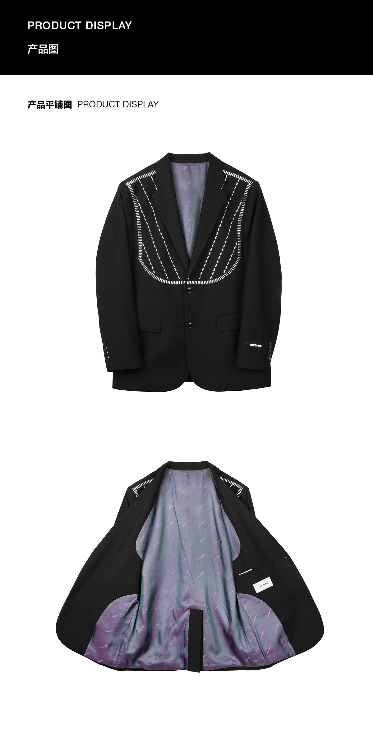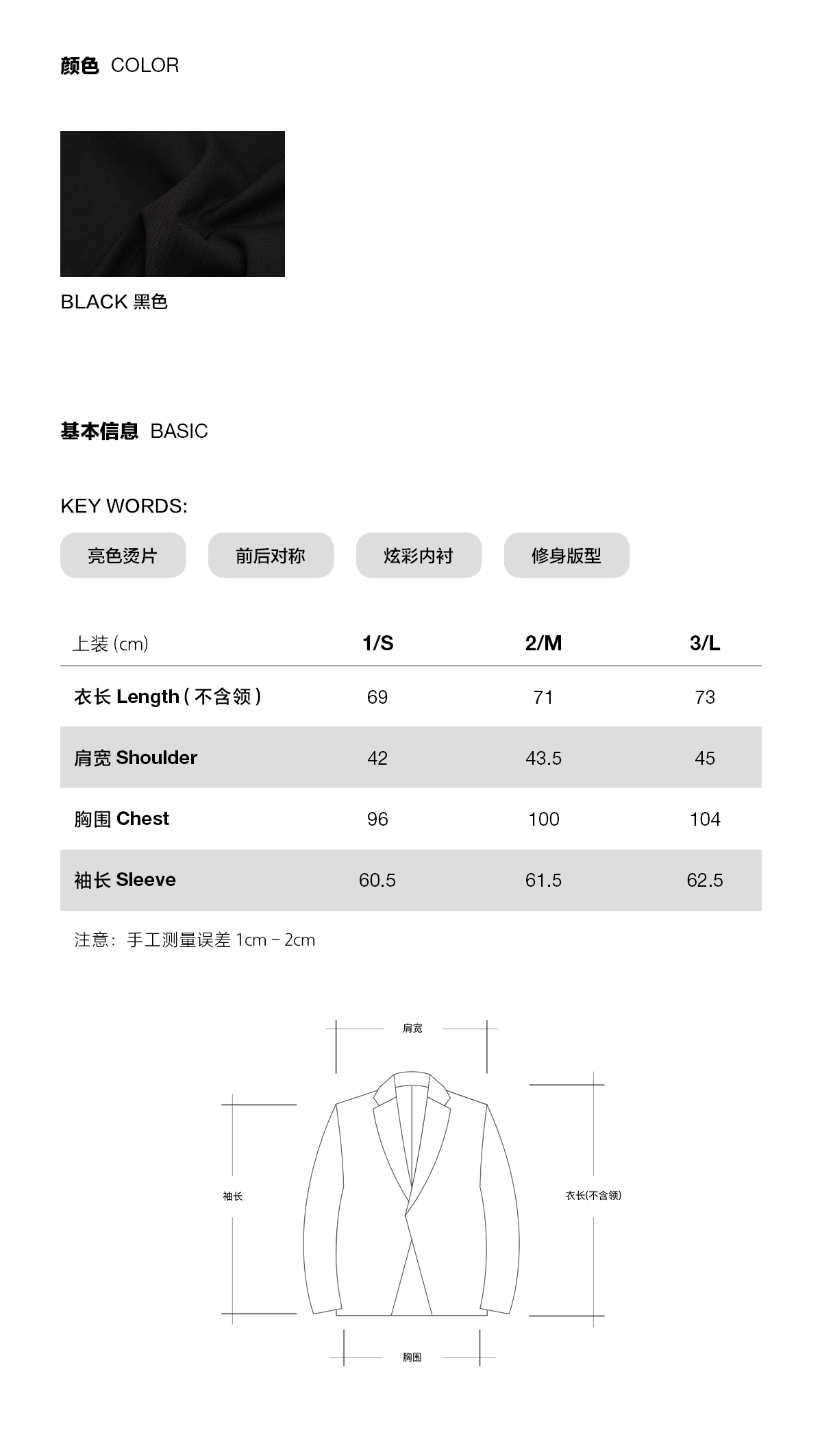 | 衣门襟: 两粒单排扣 | 颜色: BLACK/黑色 |