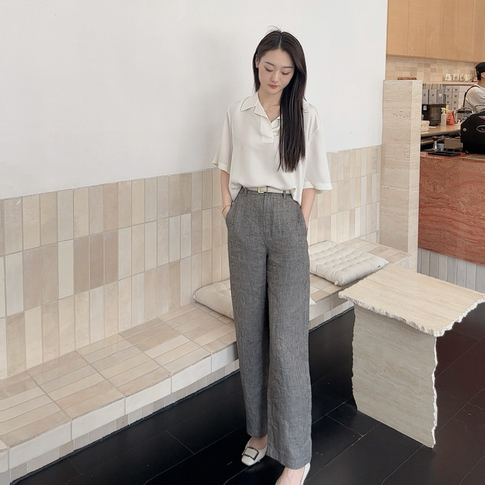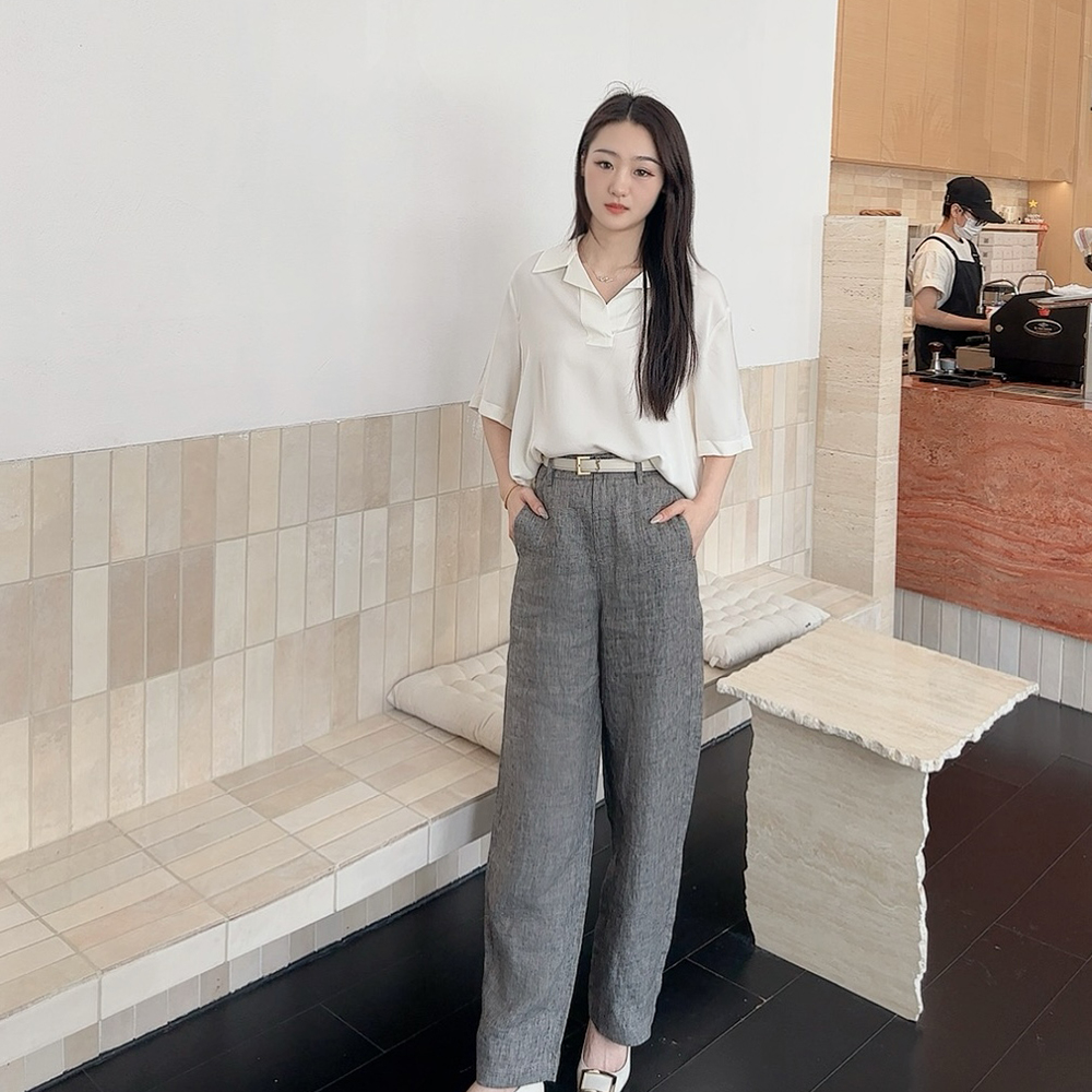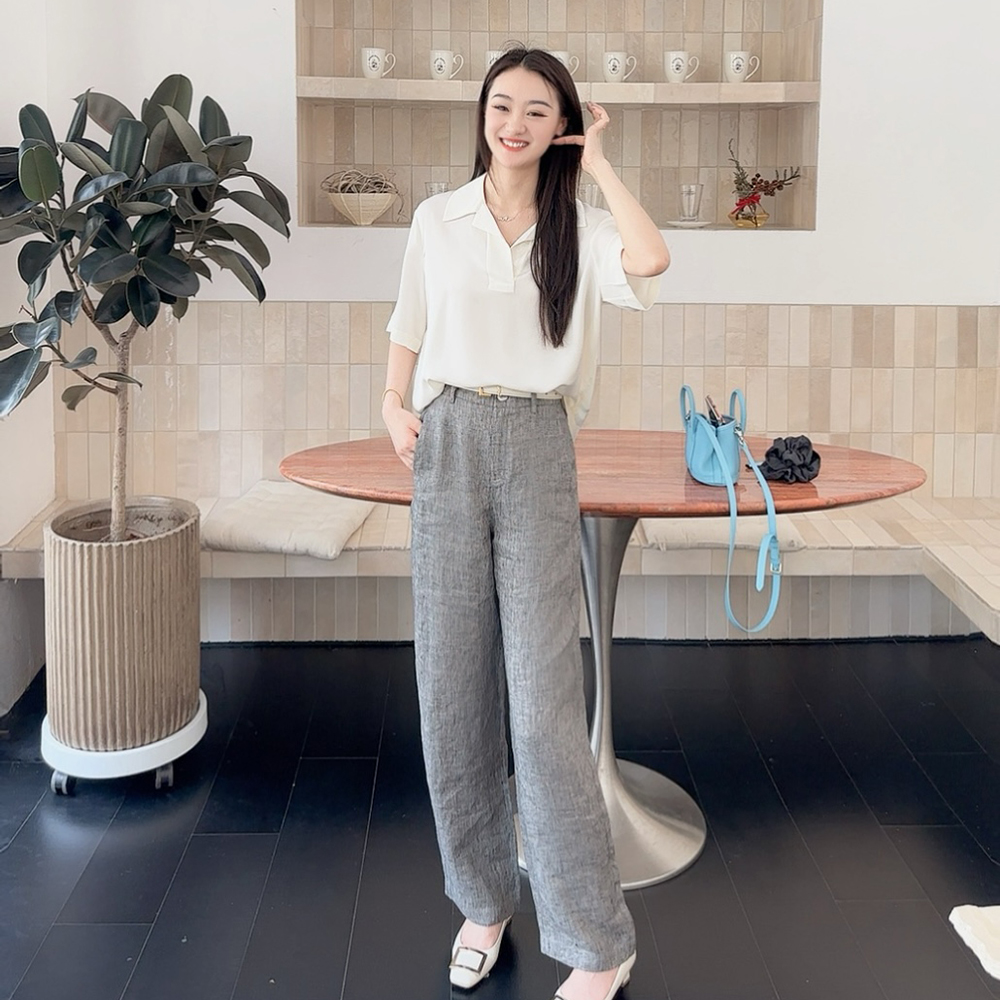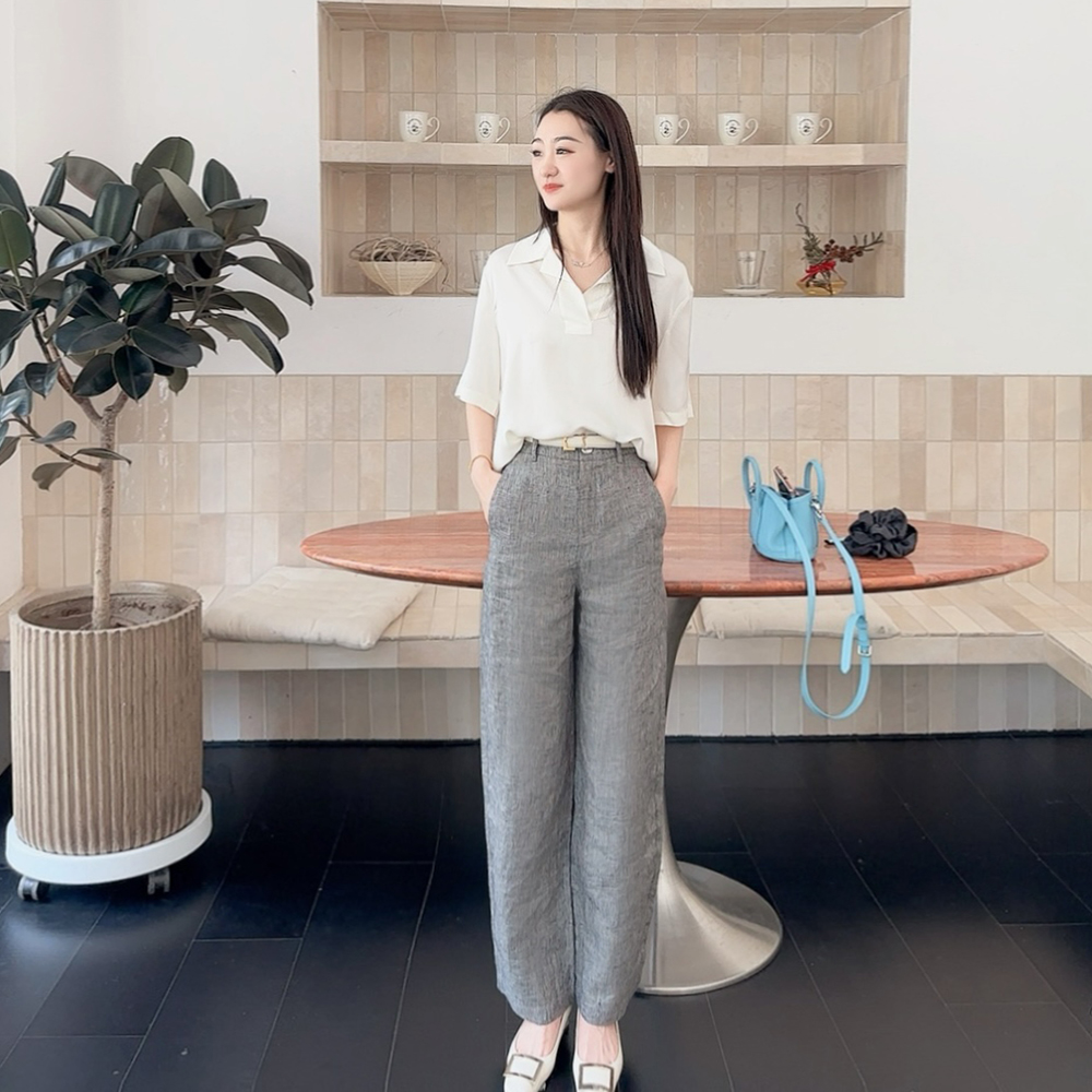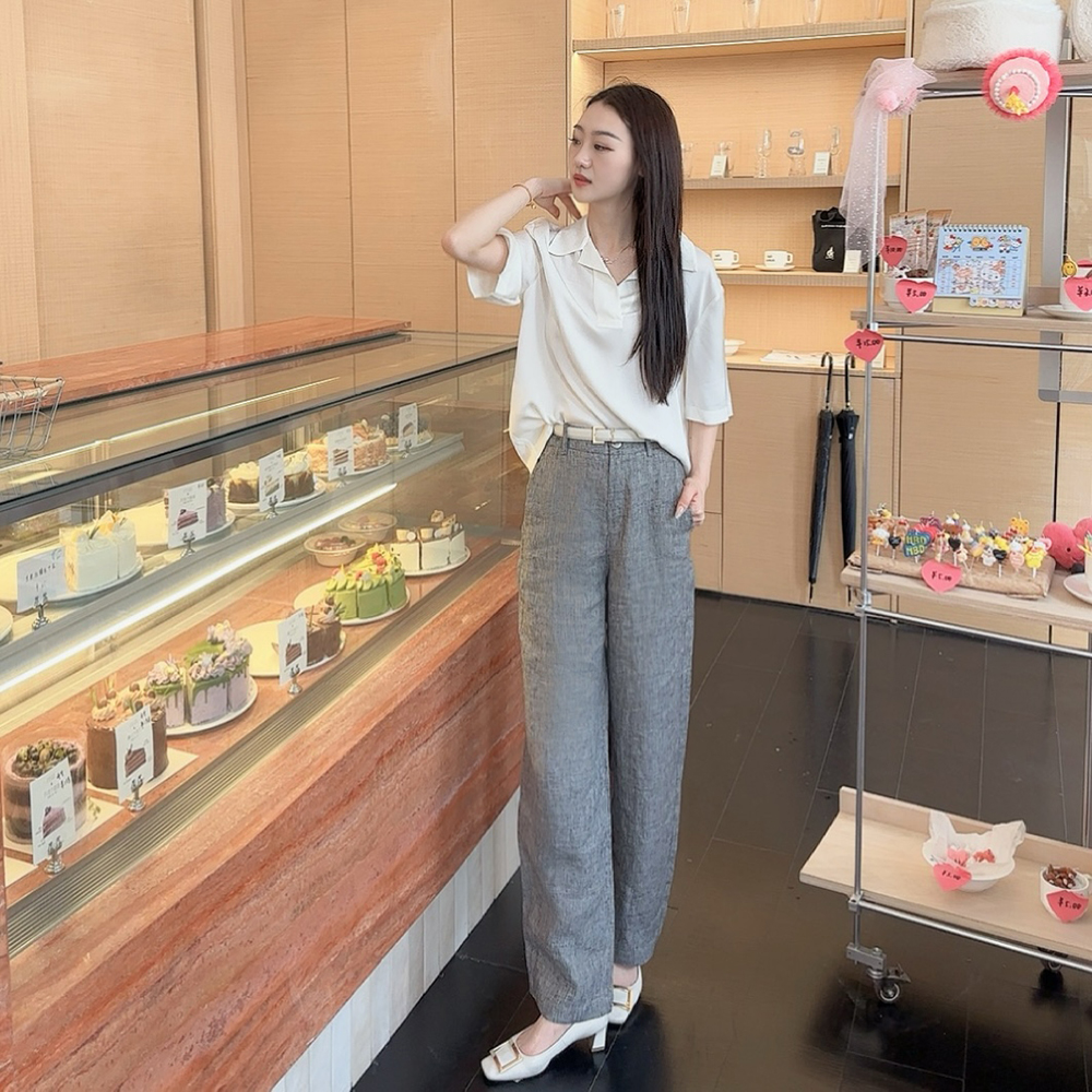 火桐hooton高定系列 智性格雷 比利时色织花纱亚麻月亮裤88056/88997