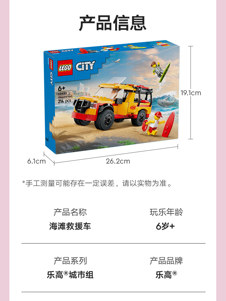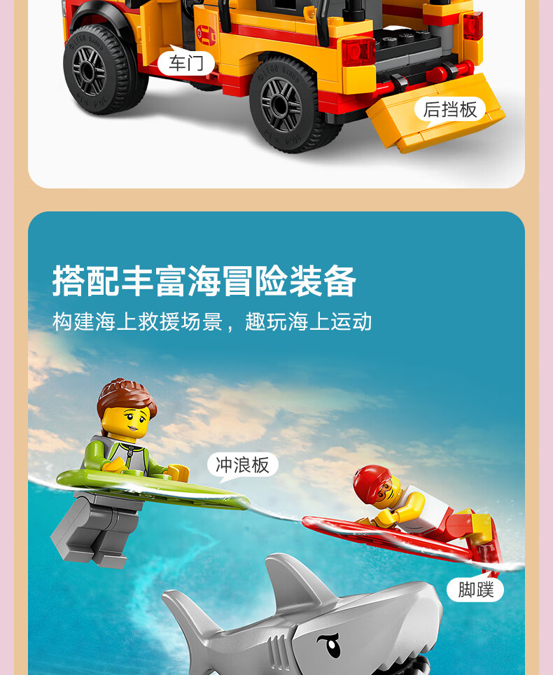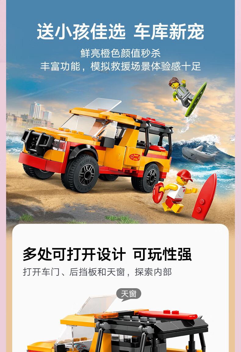 乐高积木L60453城市系列海滩救援车