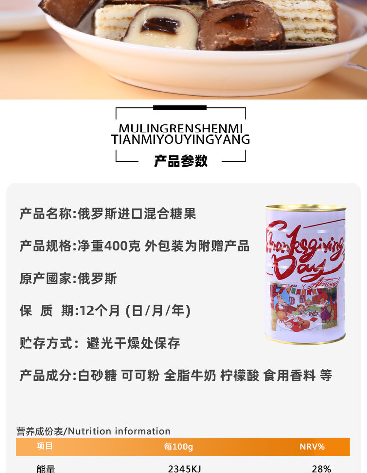 PS:糖果为铁桶包装,快递运输途中可能会出现个别轻微压扁,不影响糖果食用,故不售后,介意慎拍!