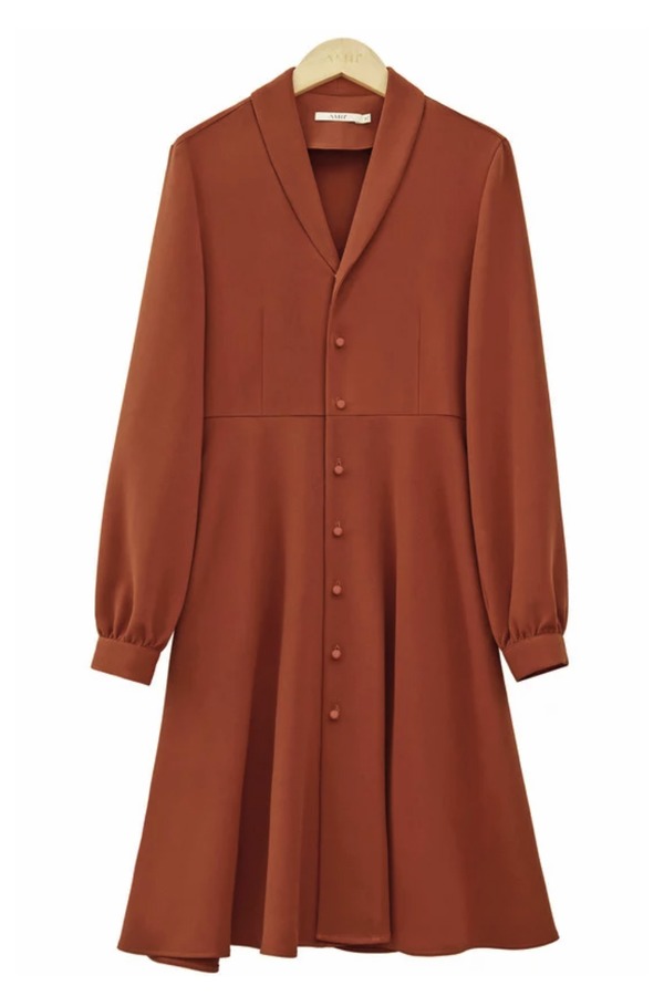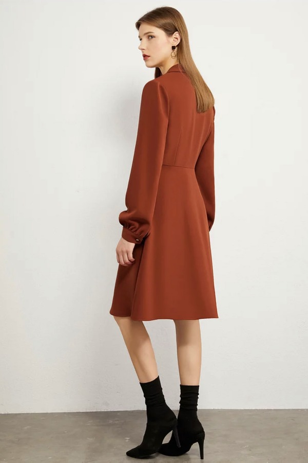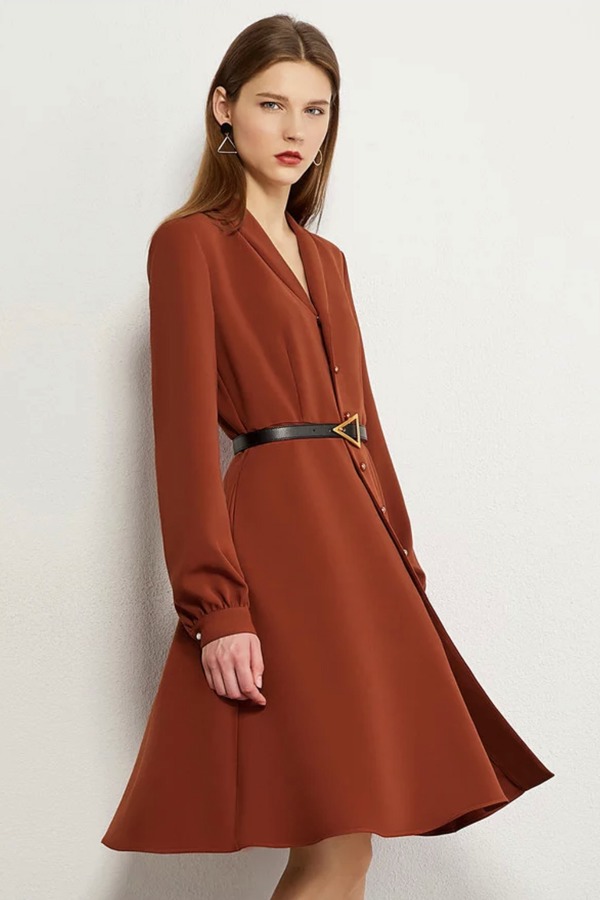 AMII/艾米 砖红色单排扣连衣裙 13917