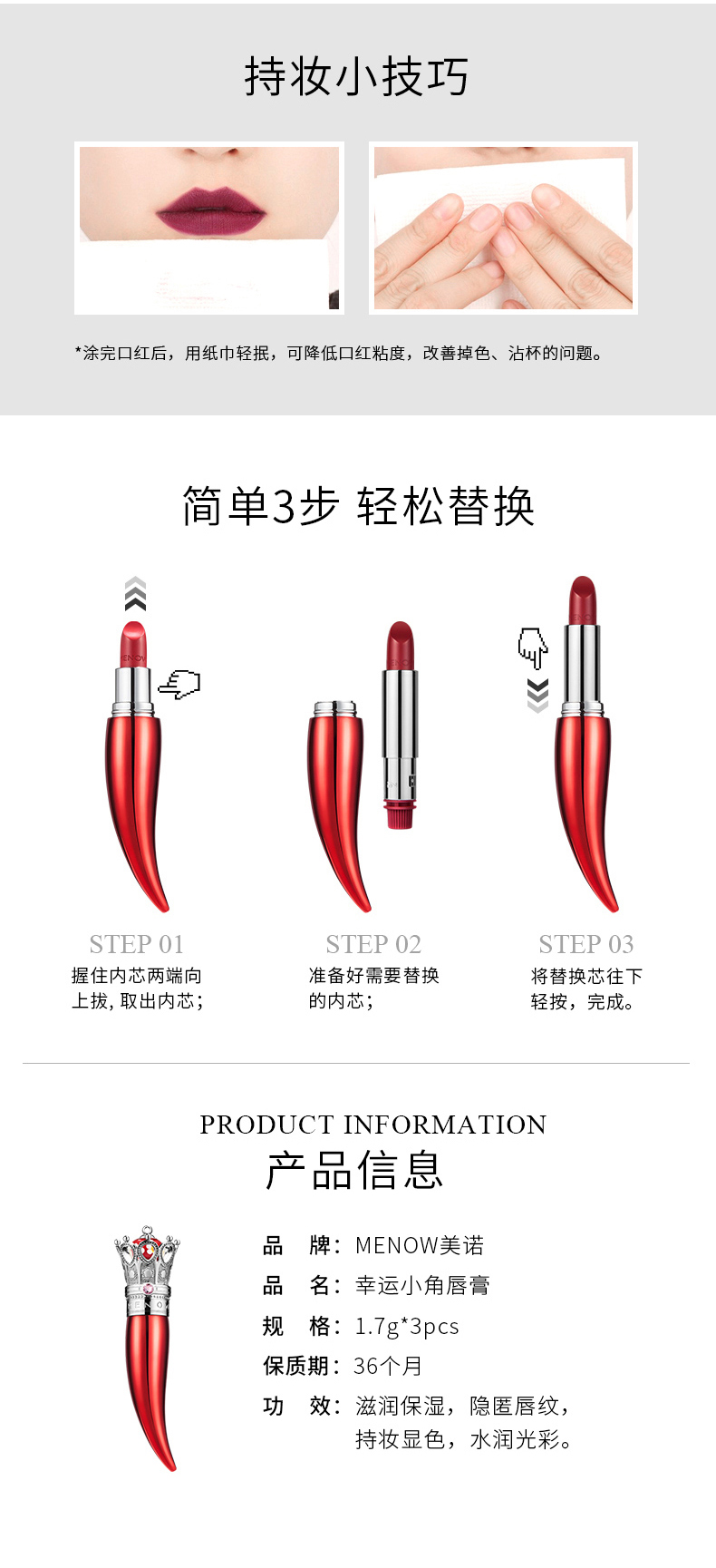 MENOW美诺 小辣椒口红大牌正品幸运小角唇膏