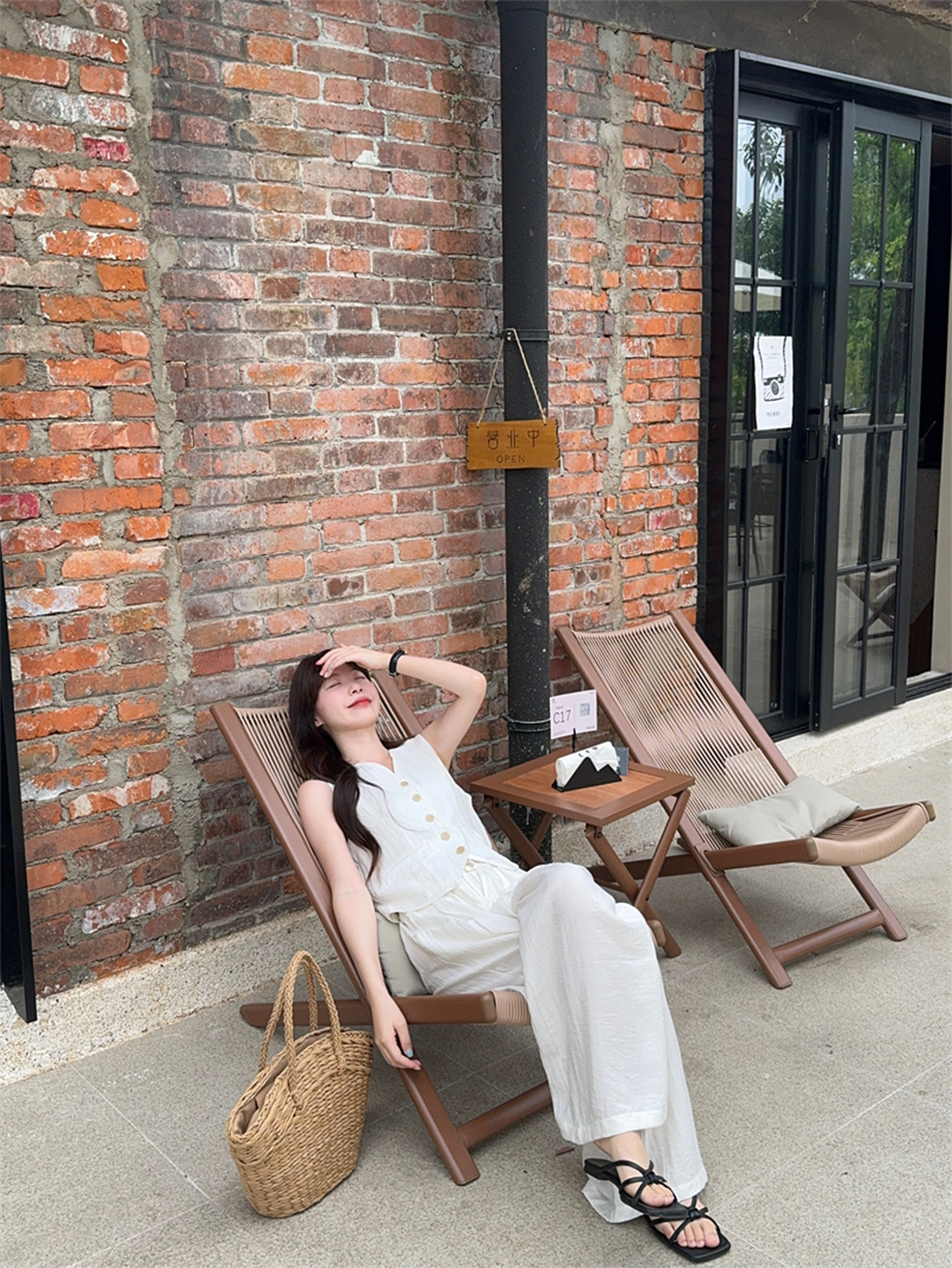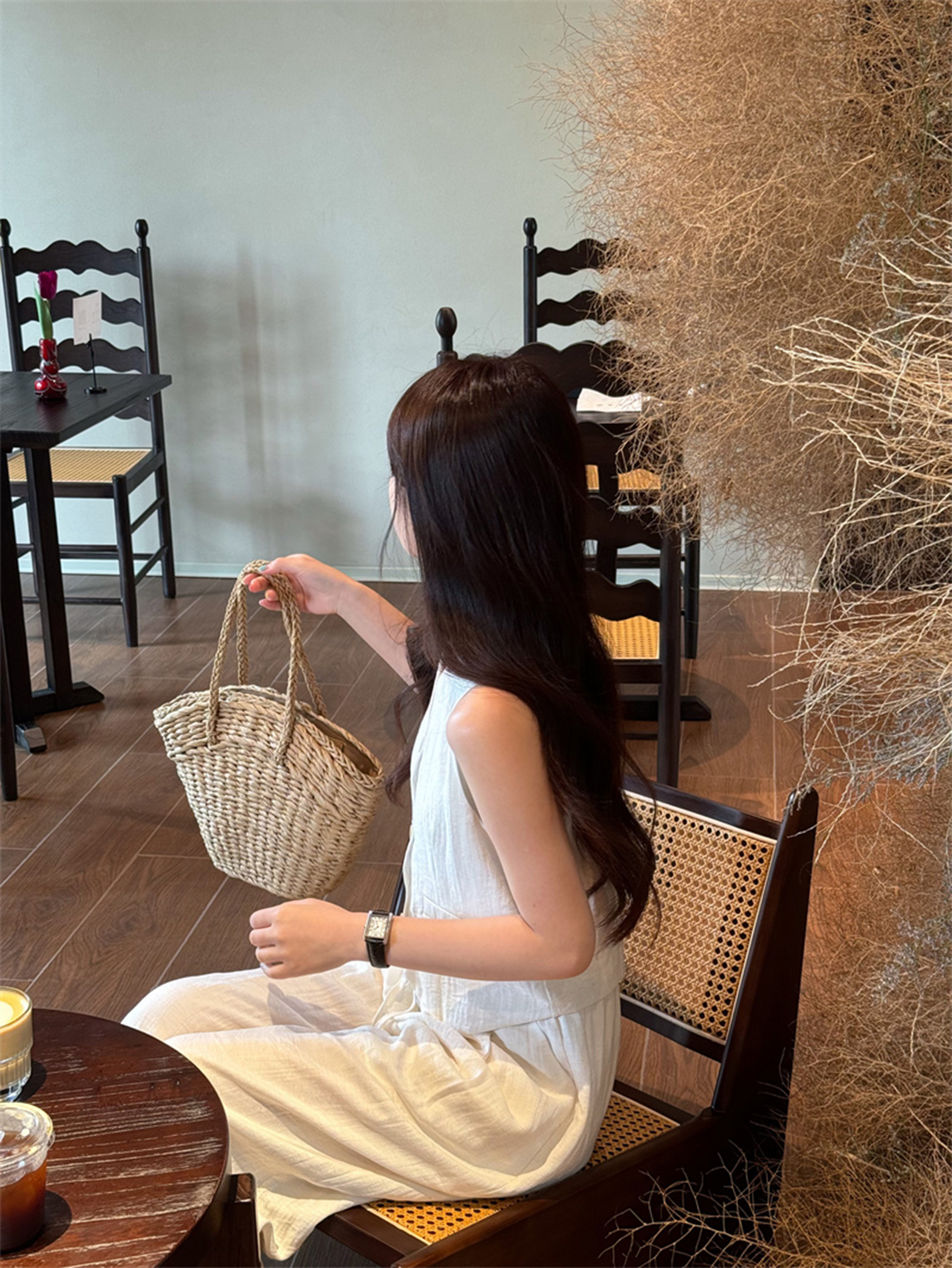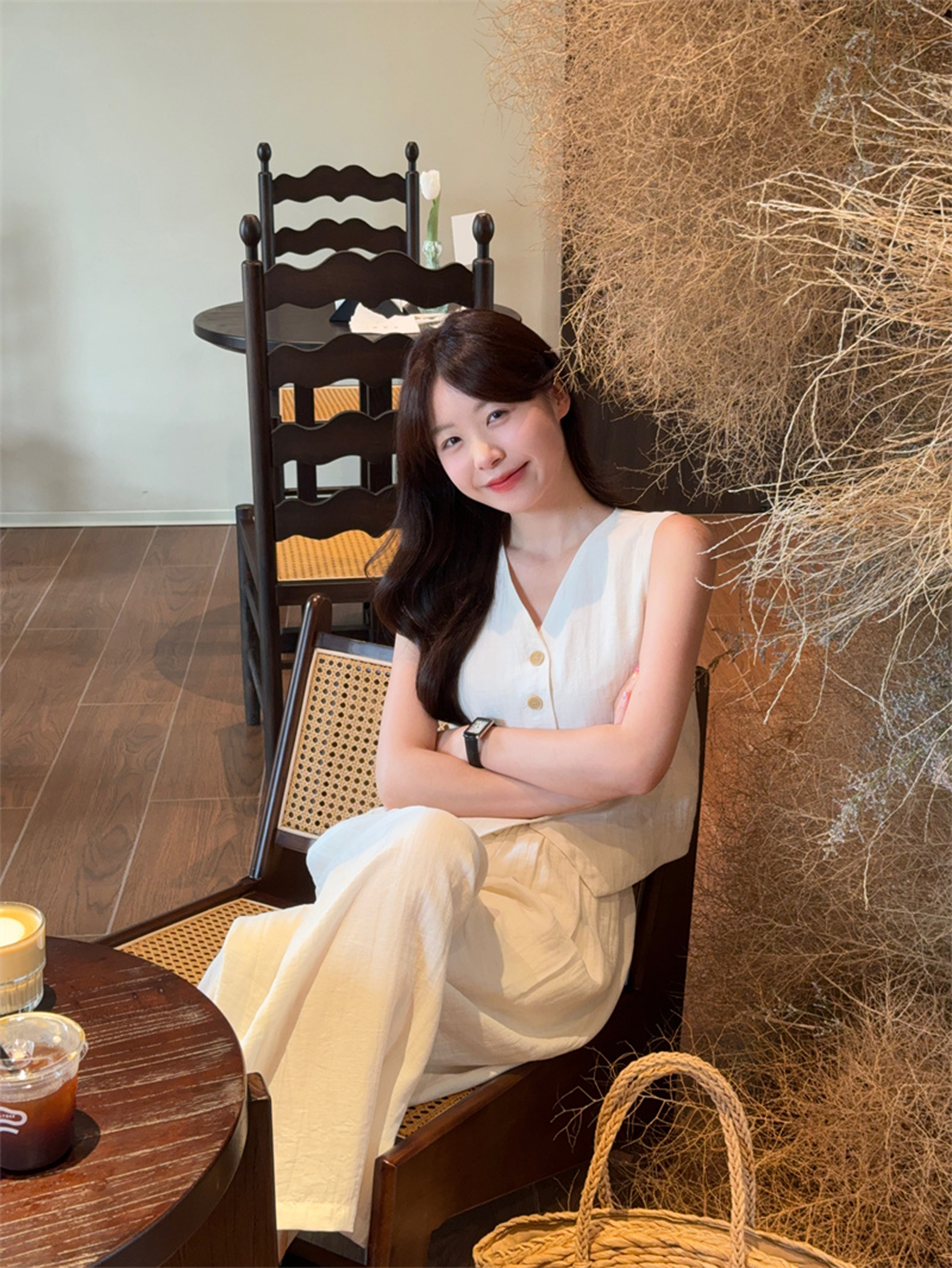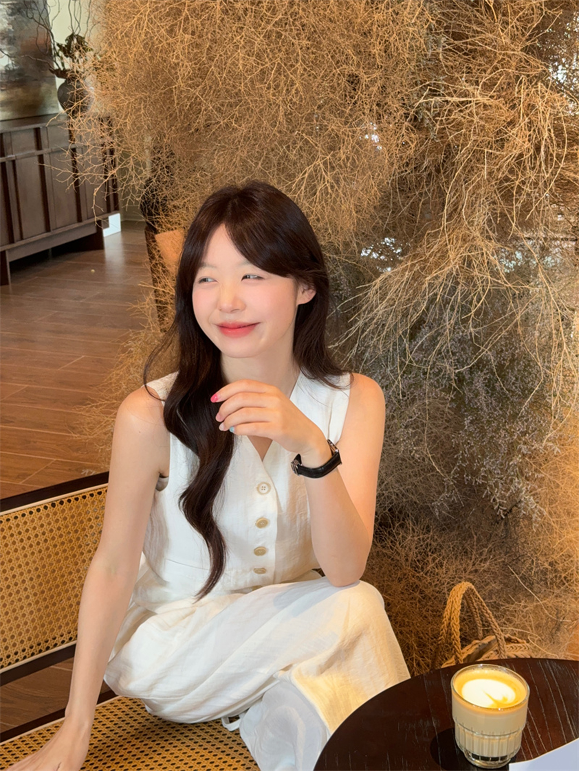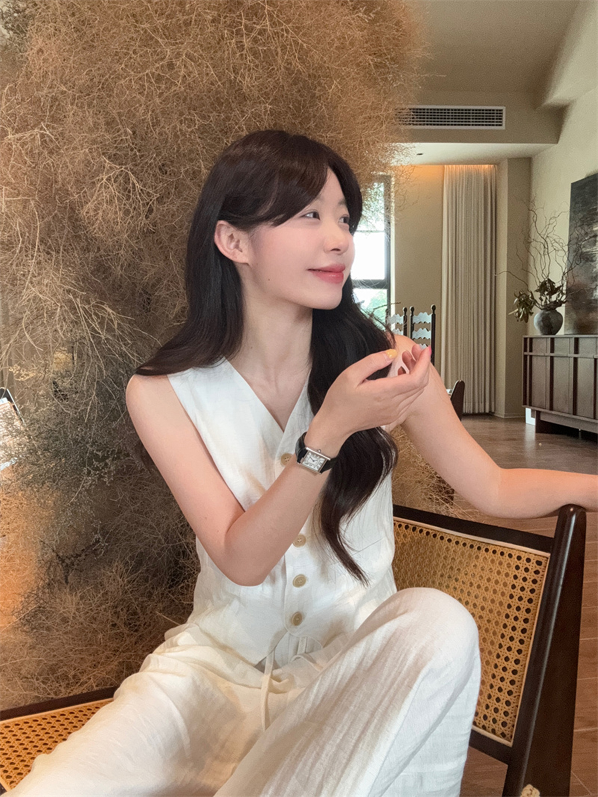 西遇法式气质套装女春夏新款V领无袖背心宽松阔腿裤两件套SS150320