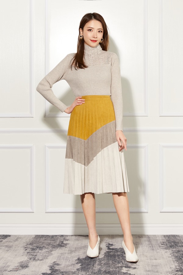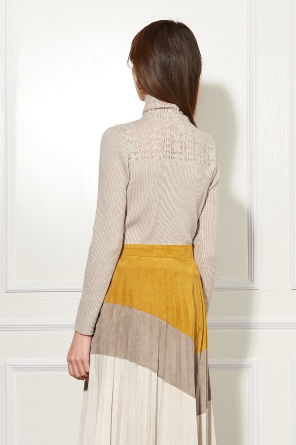 Le Malene 杏色蕾丝钩花修身打底毛衣 11039