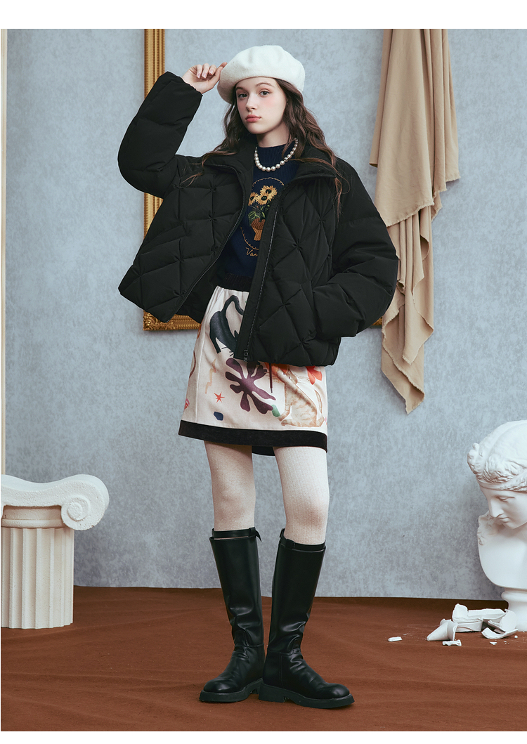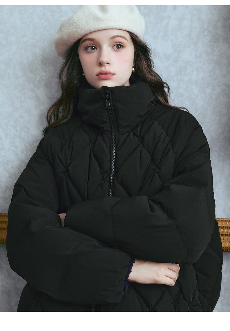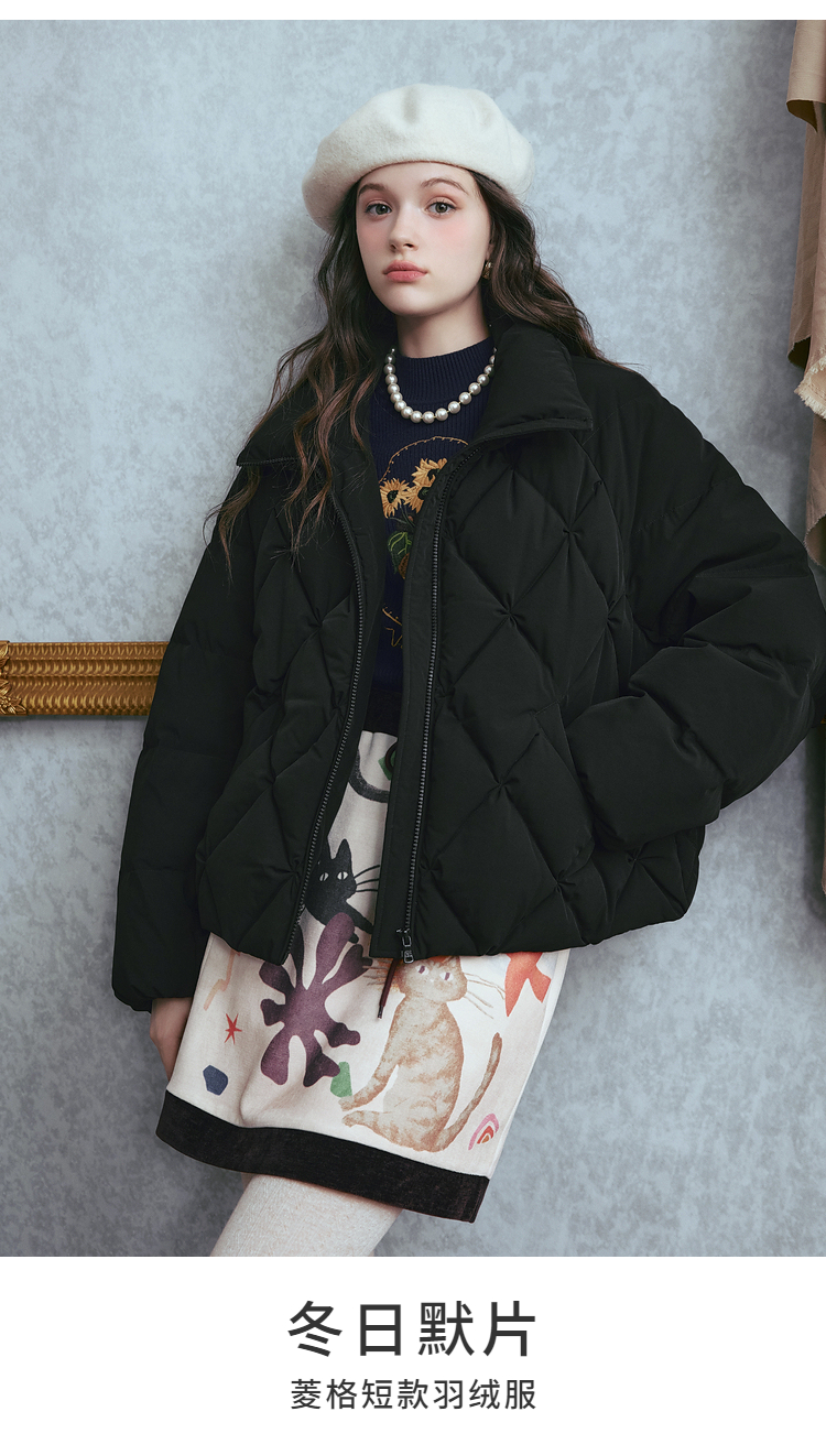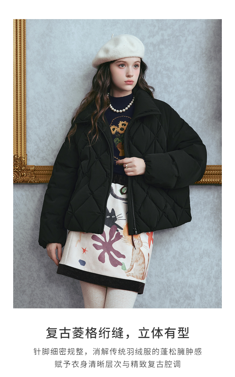 【暖冬内购】两三事梵高文艺 冬日默片 2025冬季新款时尚高领黑色羽绒服女宽松
