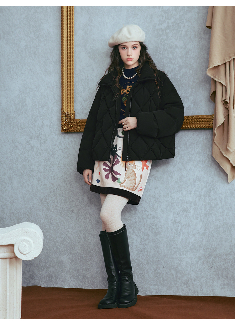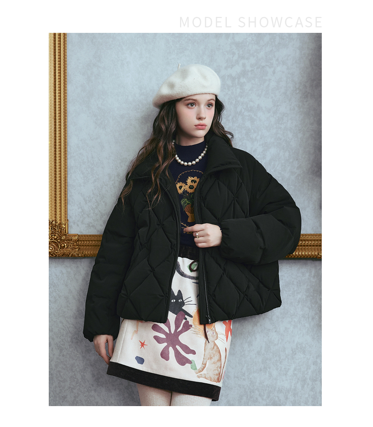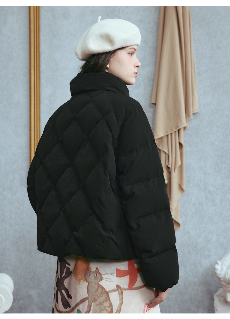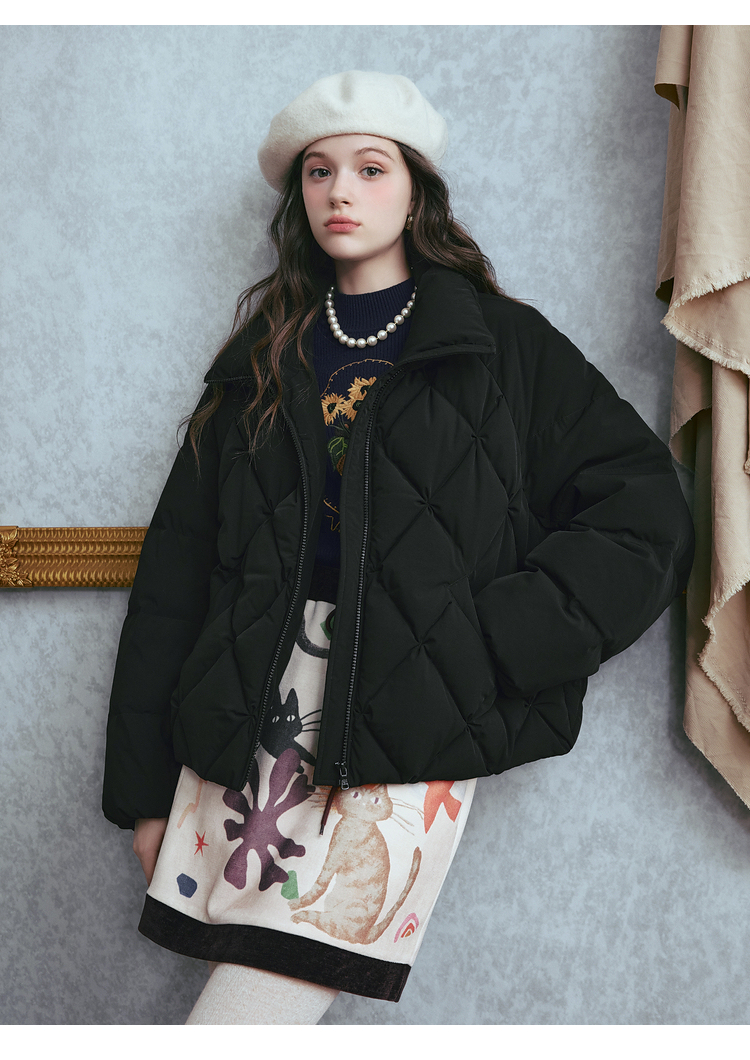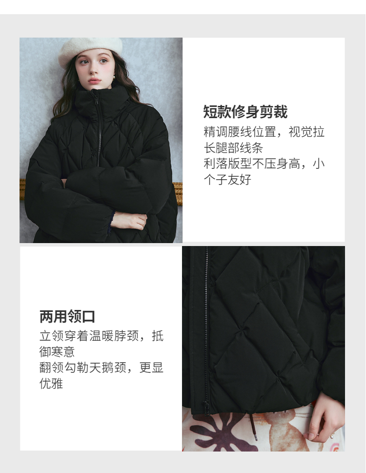 【暖冬内购】两三事梵高文艺 冬日默片 2025冬季新款时尚高领黑色羽绒服女宽松