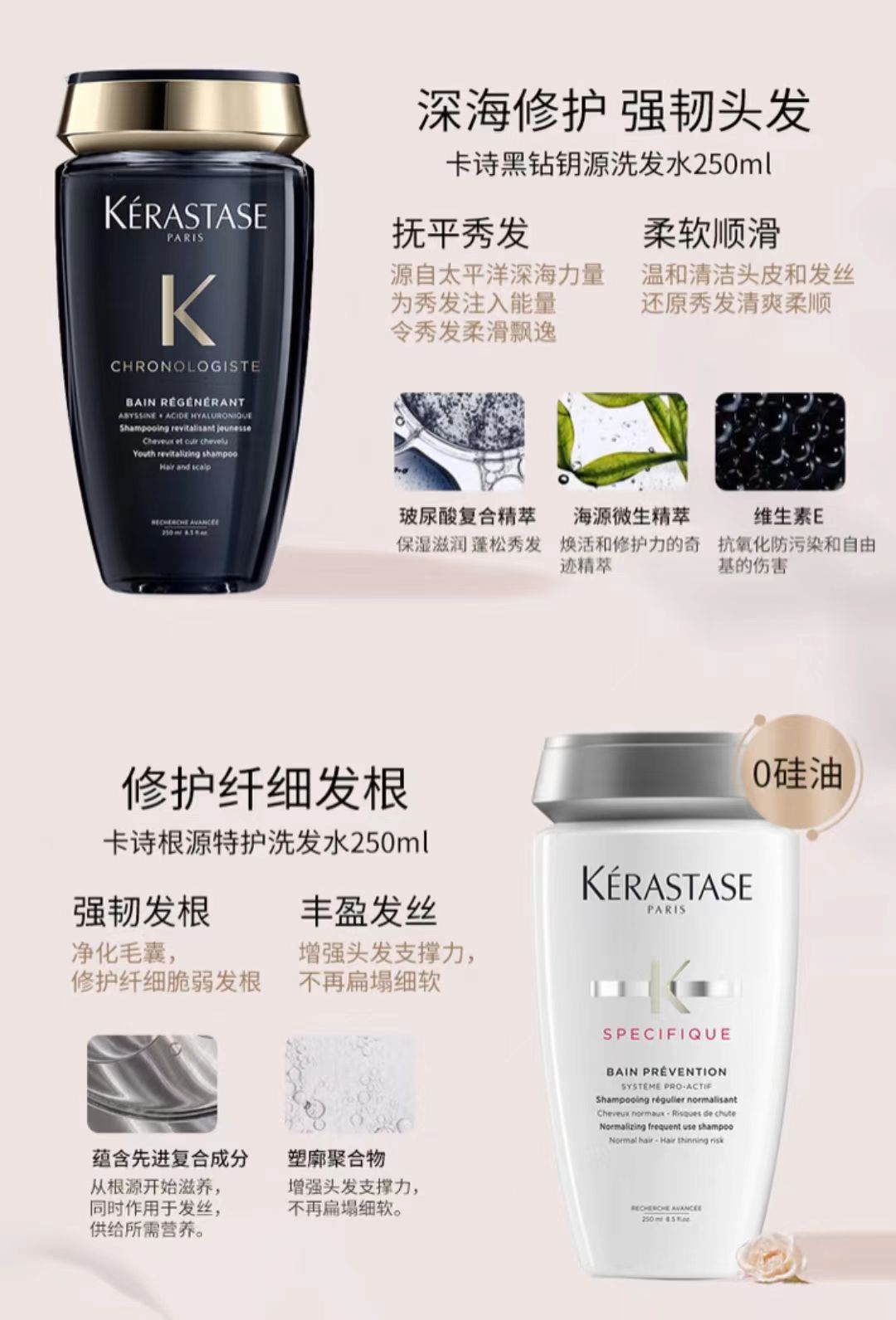 卡诗黑钻鱼子酱 白金赋活 双重功能 洗发水250ml