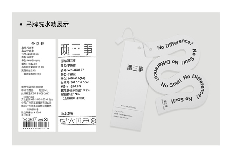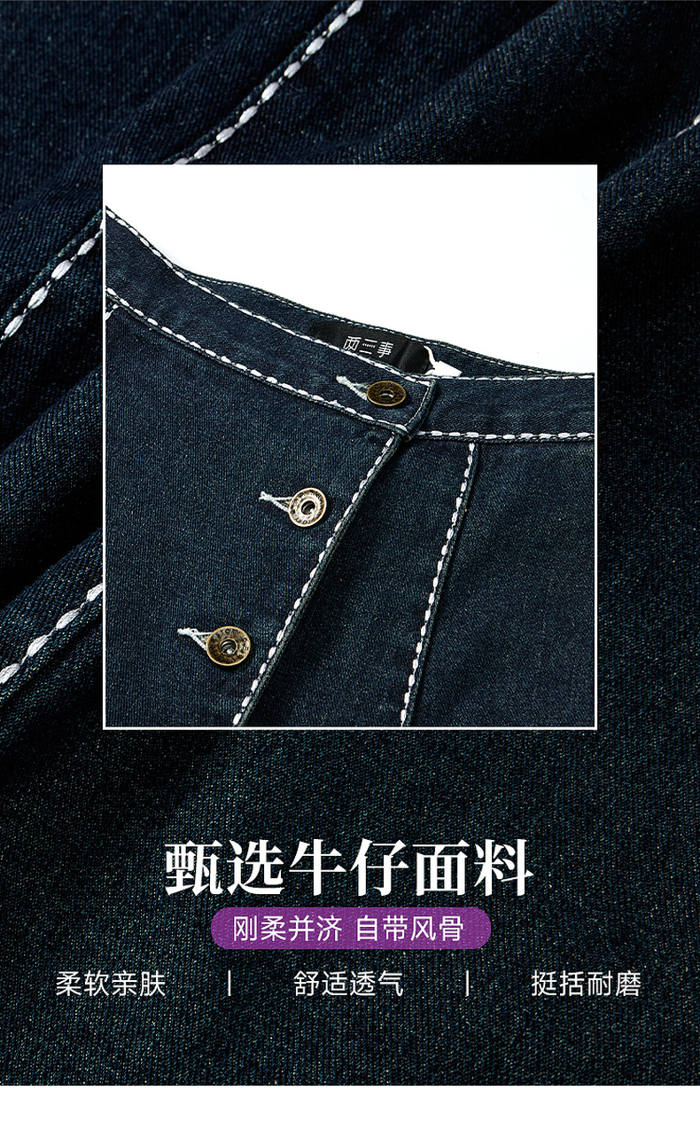 两三事一人相伴 春夏新款时尚单边背带裙系扣高腰牛仔半身裙S23CKB050