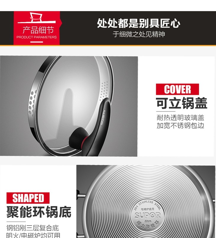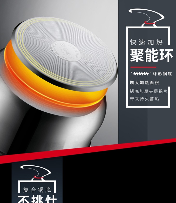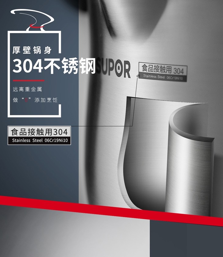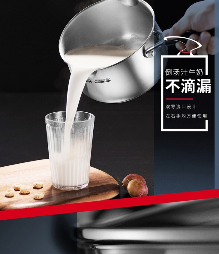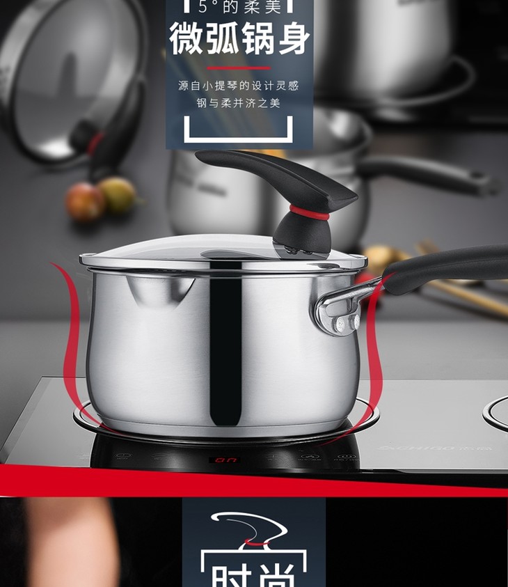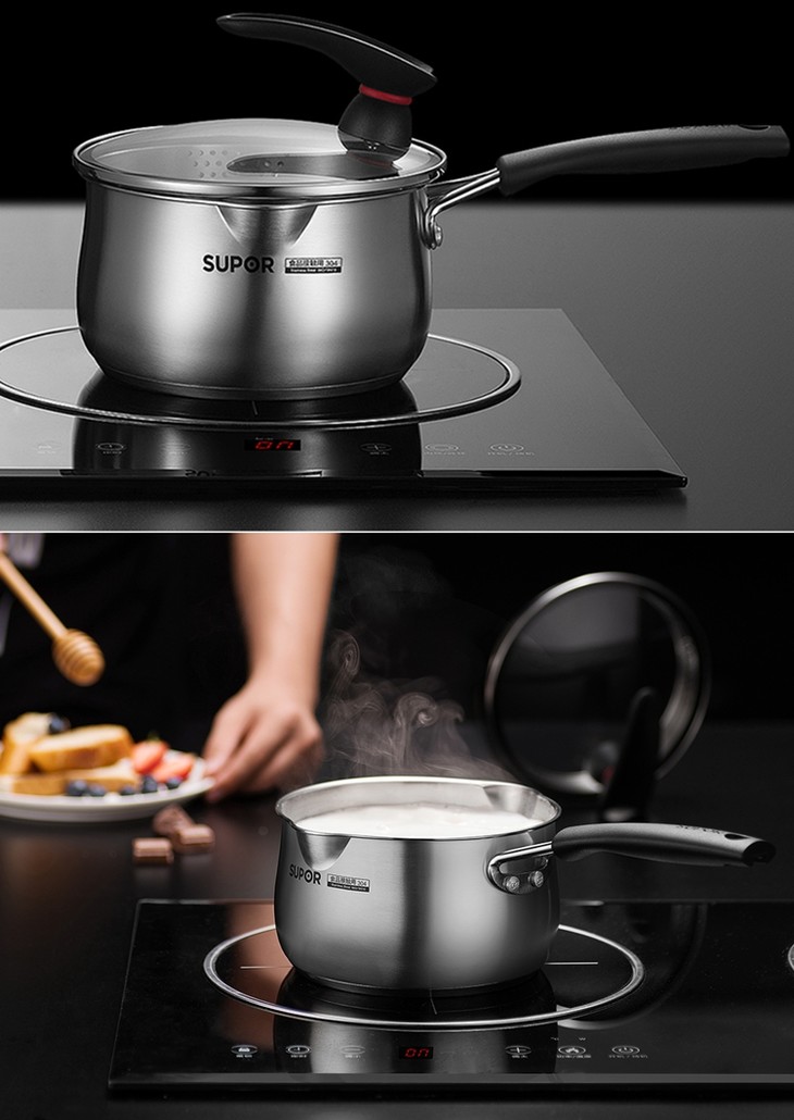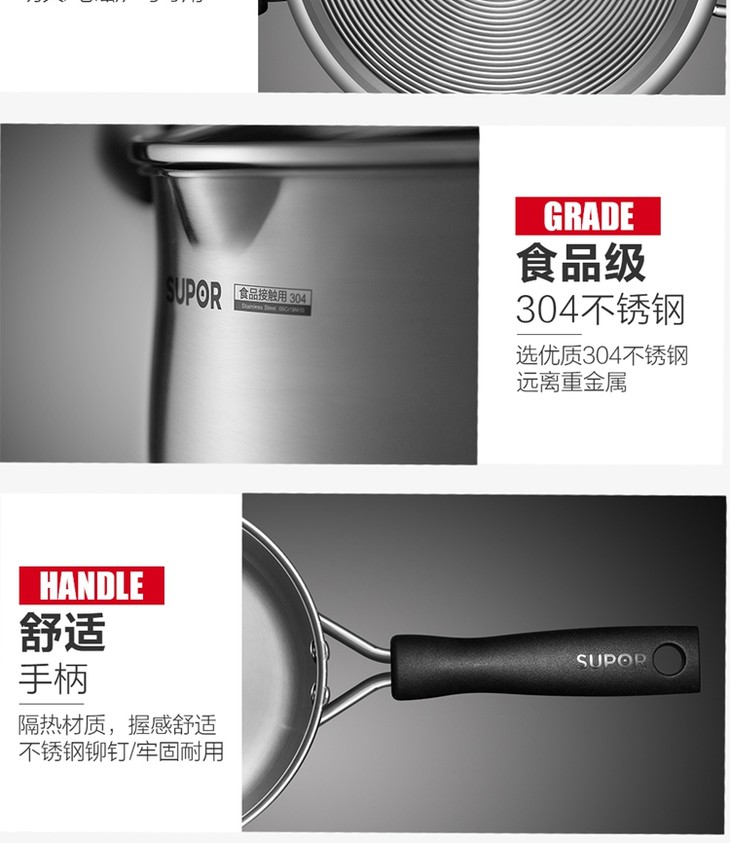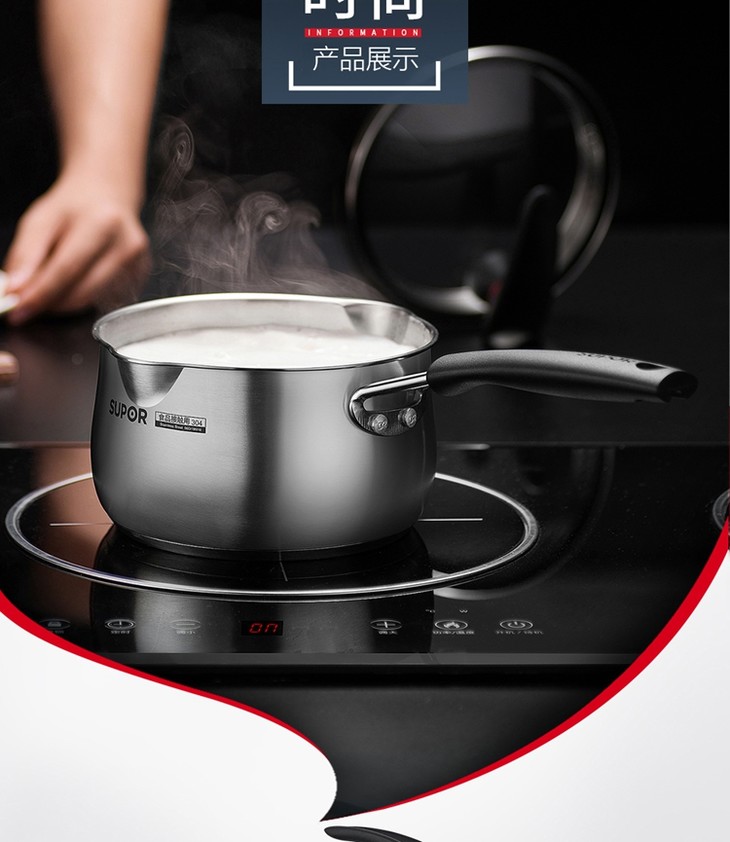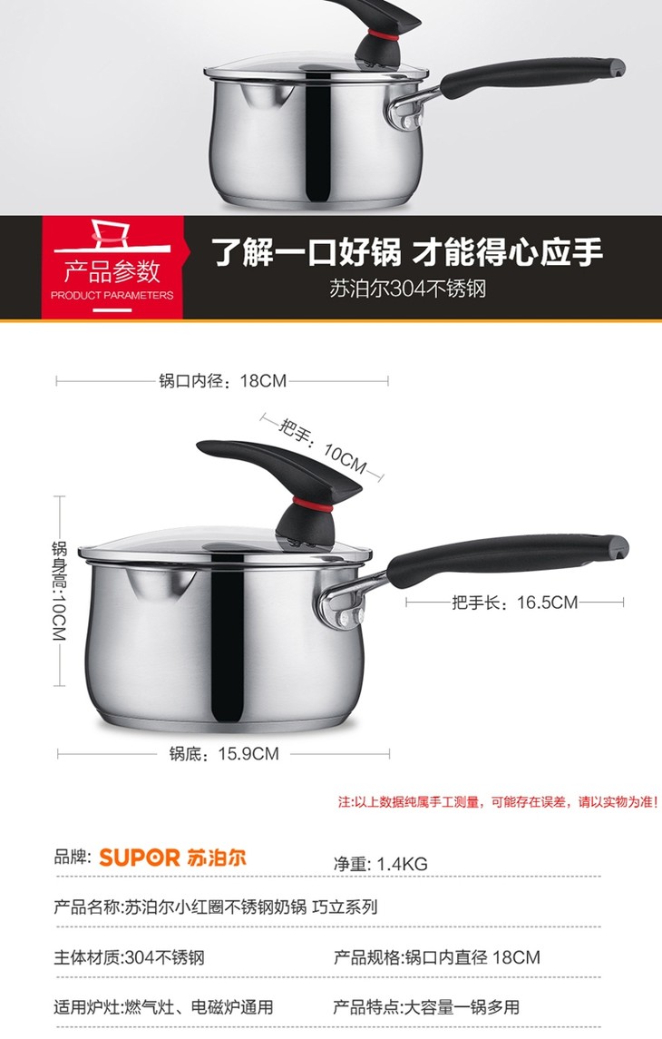 苏泊尔SUPOR小红圈304不锈钢奶锅可立盖18cm加厚复底婴幼儿辅食锅电磁炉燃气通用ST18JA1