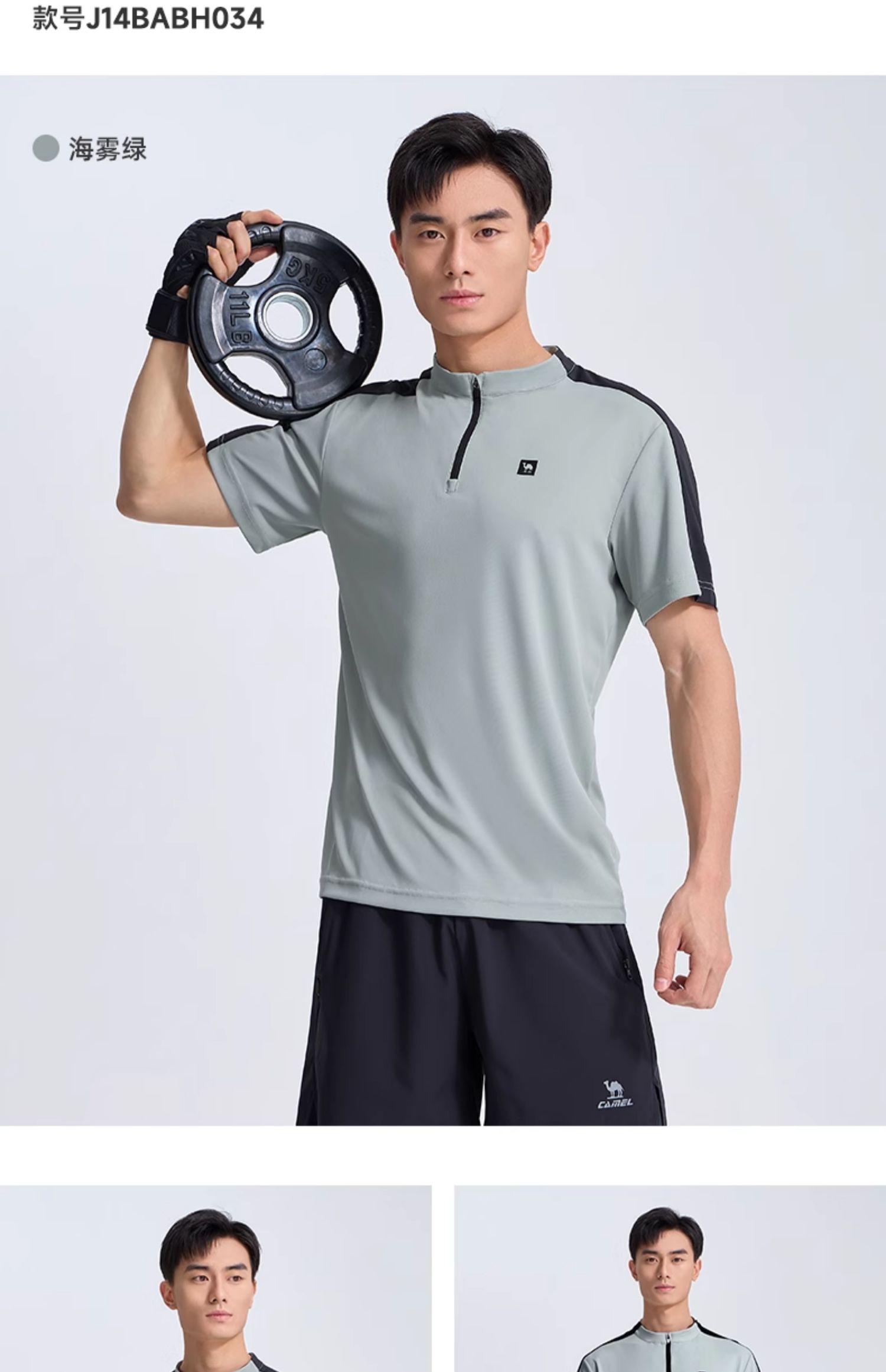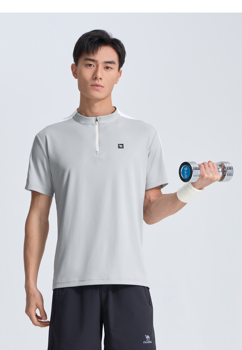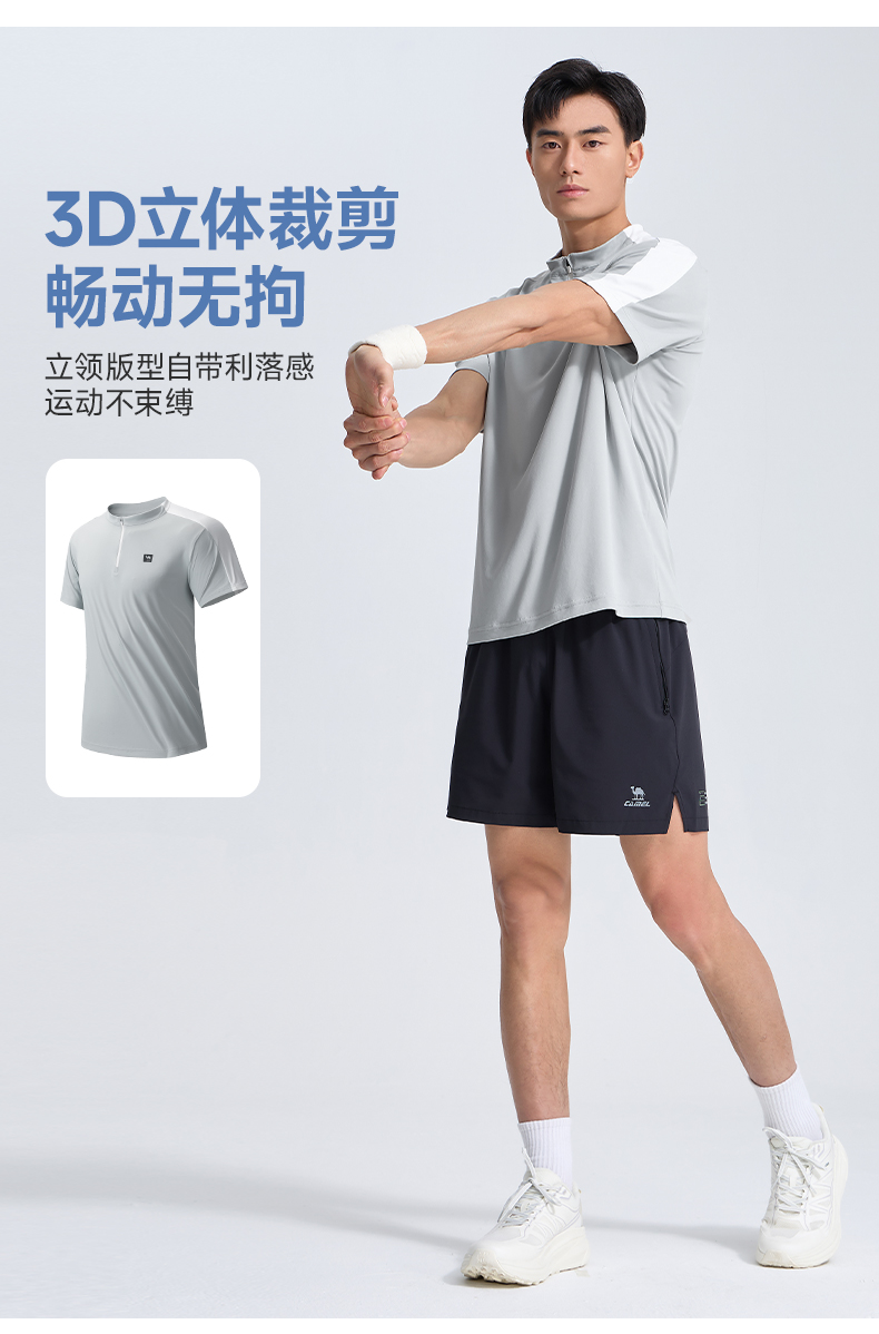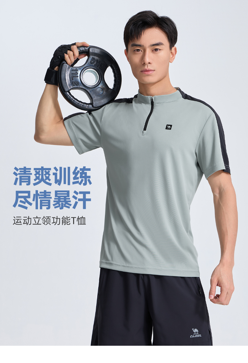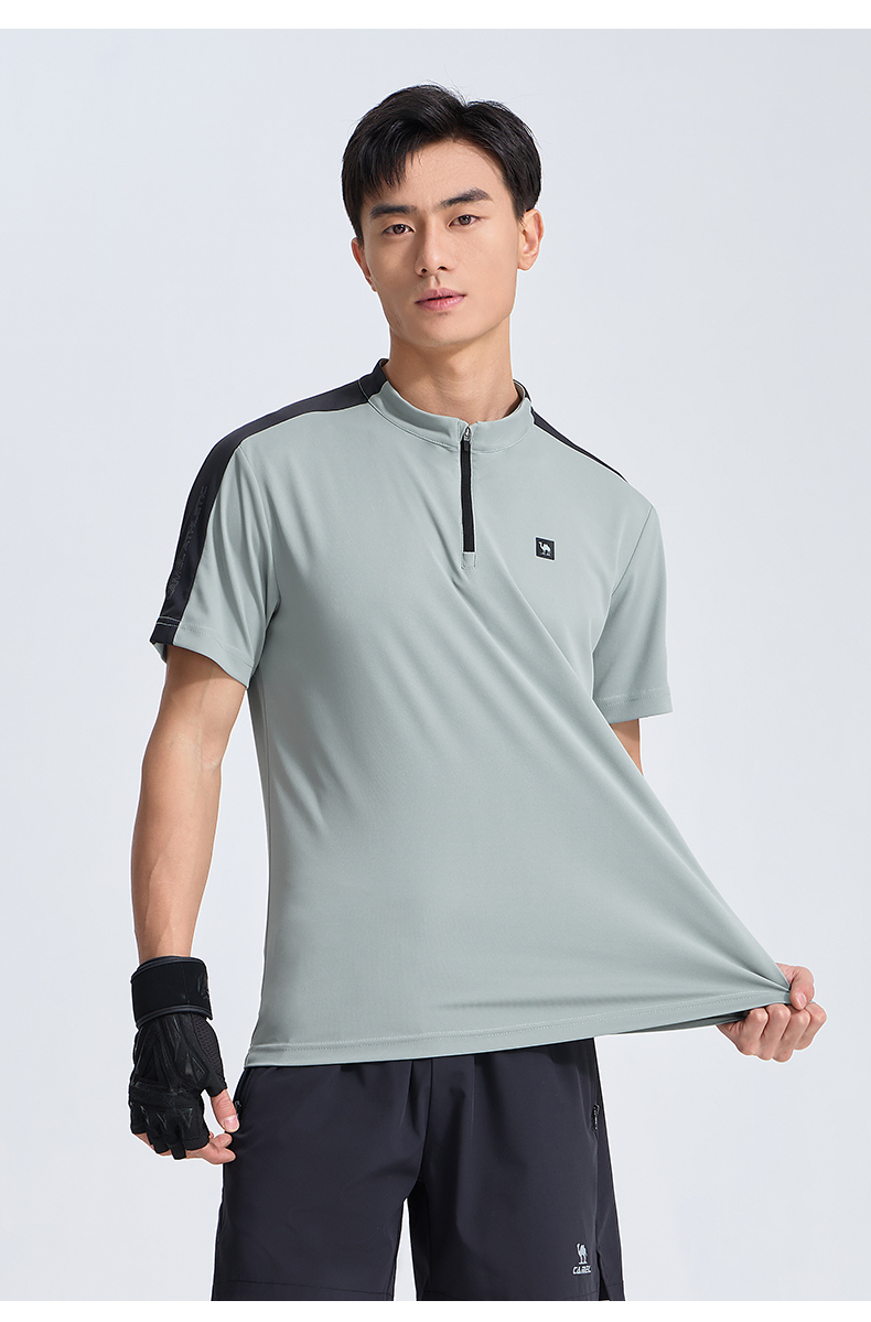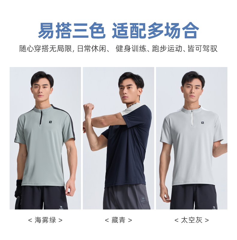 骆驼运动服速干衣男T恤夏季防晒冰感透气短袖跑步高尔夫立领上衣 J14BABH034