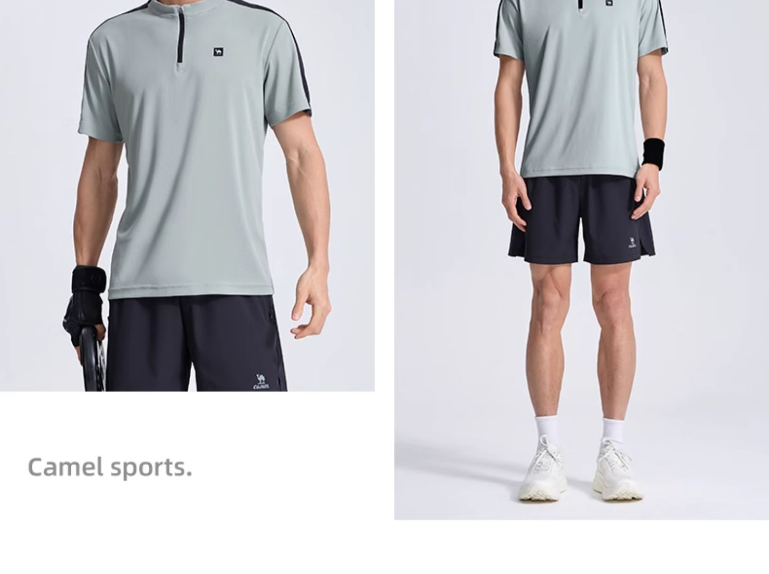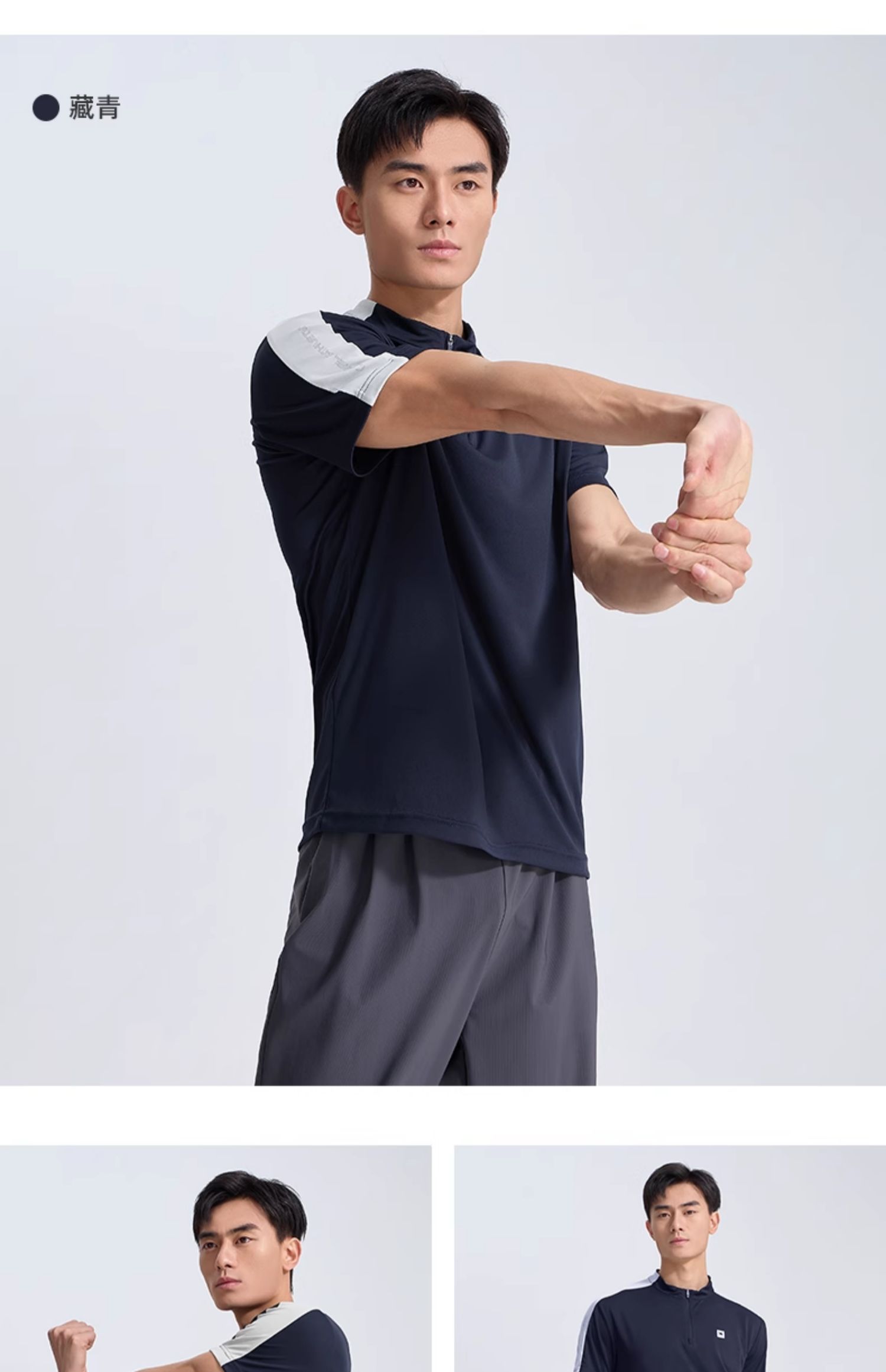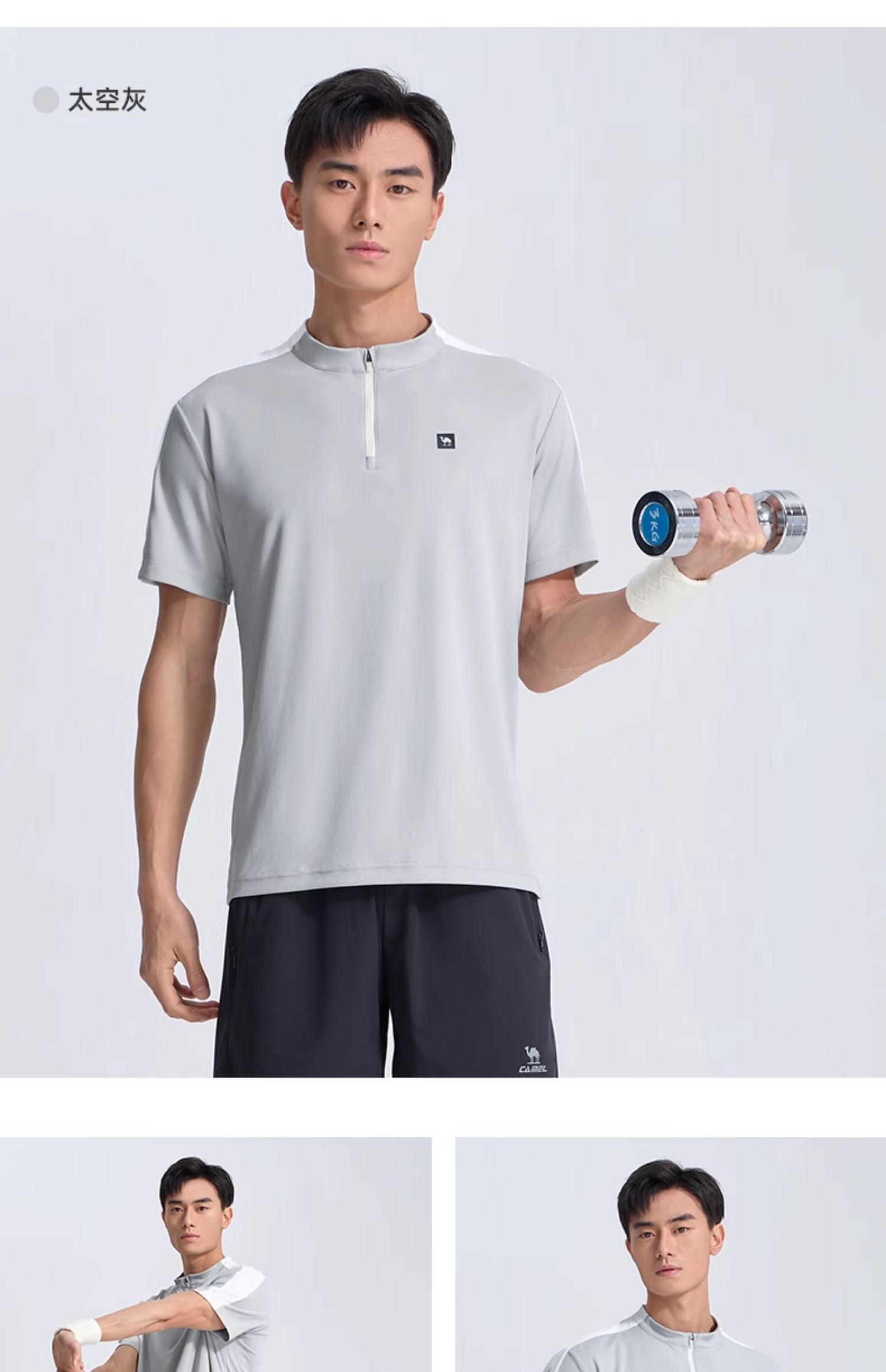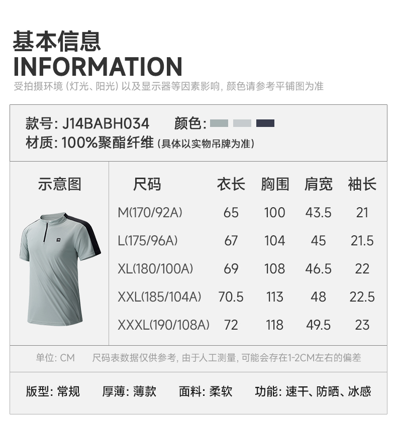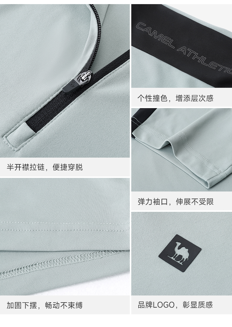 骆驼运动服速干衣男T恤夏季防晒冰感透气短袖跑步高尔夫立领上衣 J14BABH034