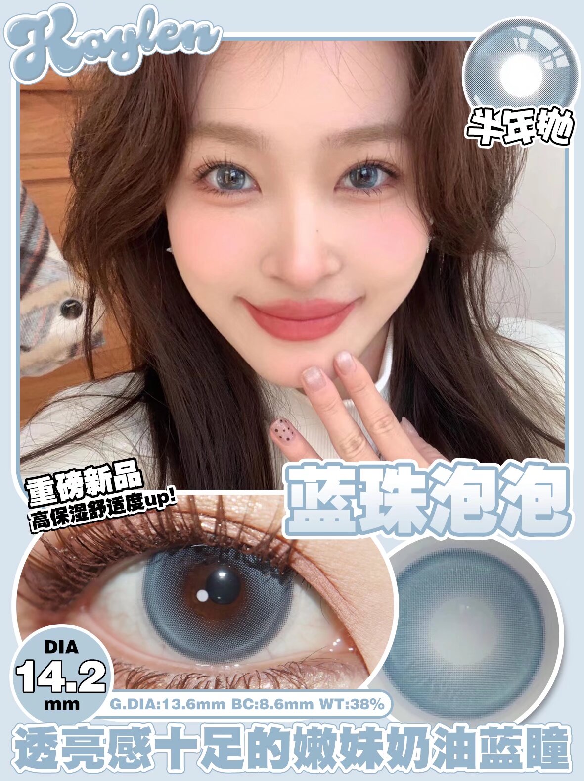 KAYLENS 蓝珠泡泡 半年抛 两片 14.2mm 参考着色13.6mm 基弧8.6 含水38% 新锐国货