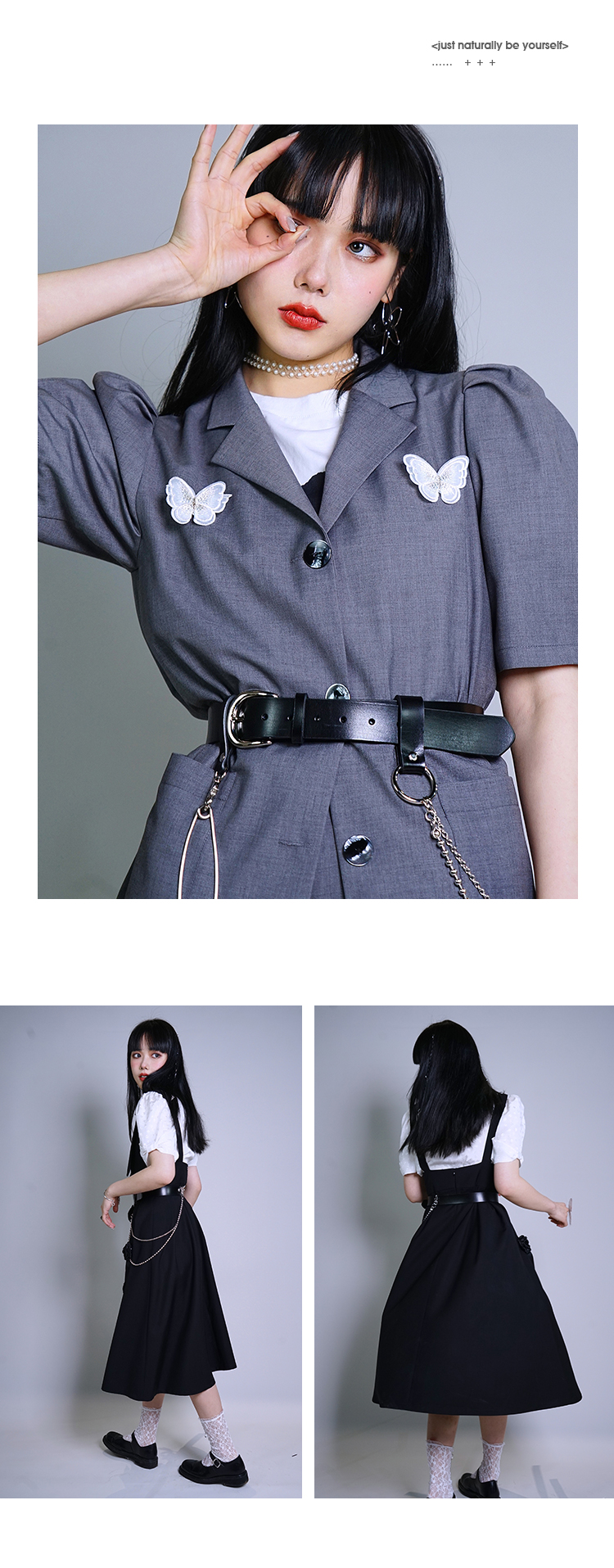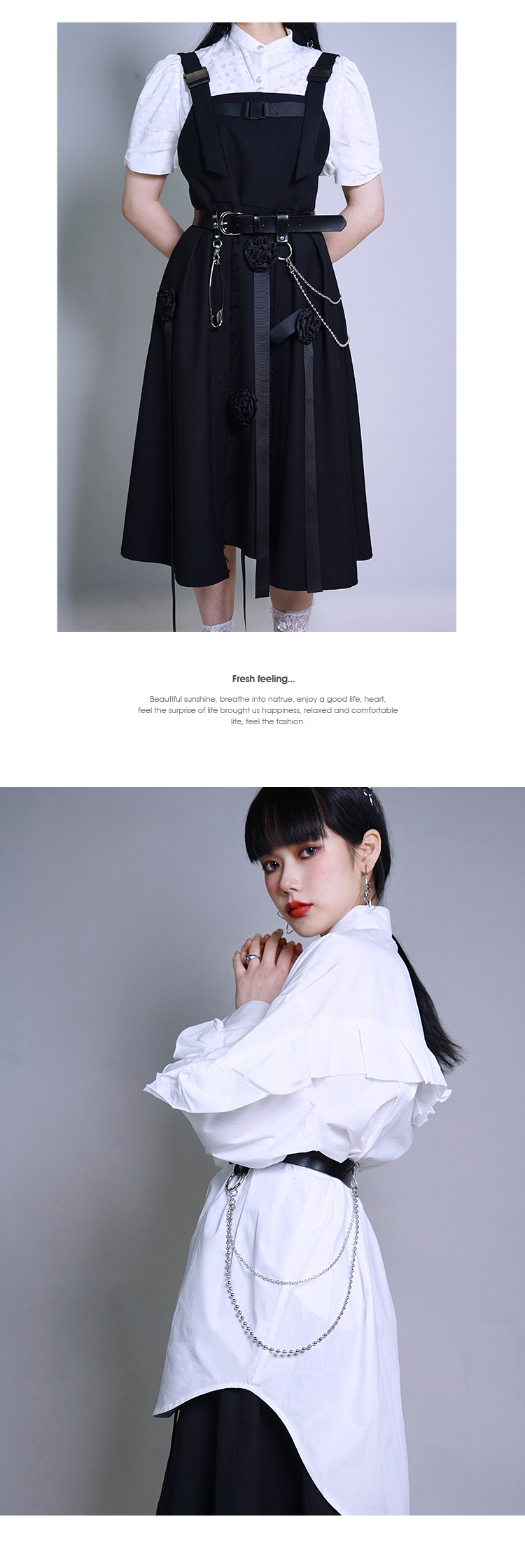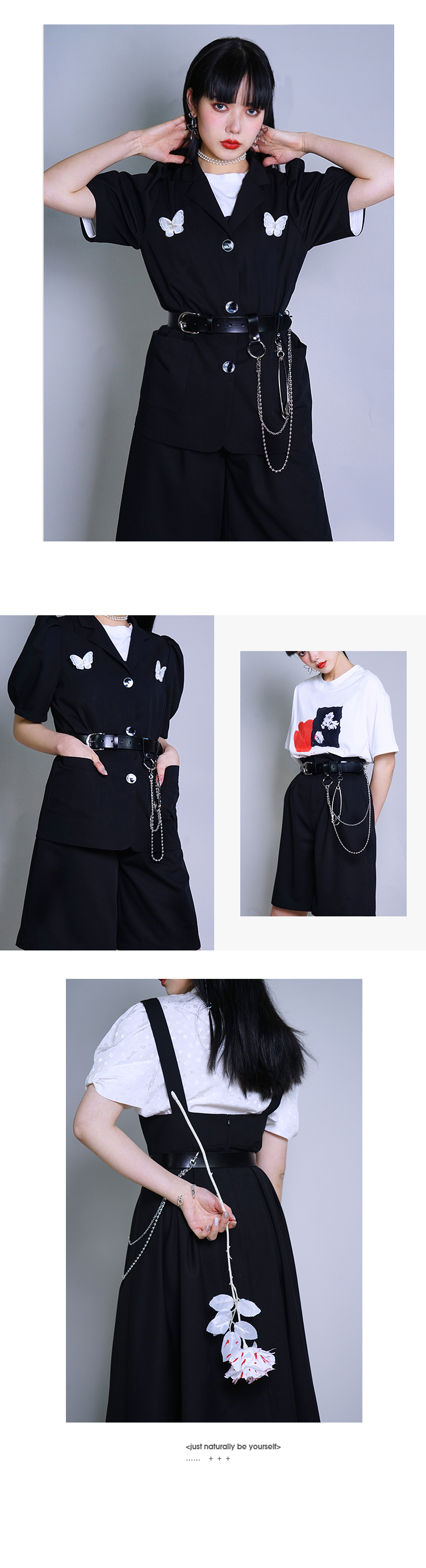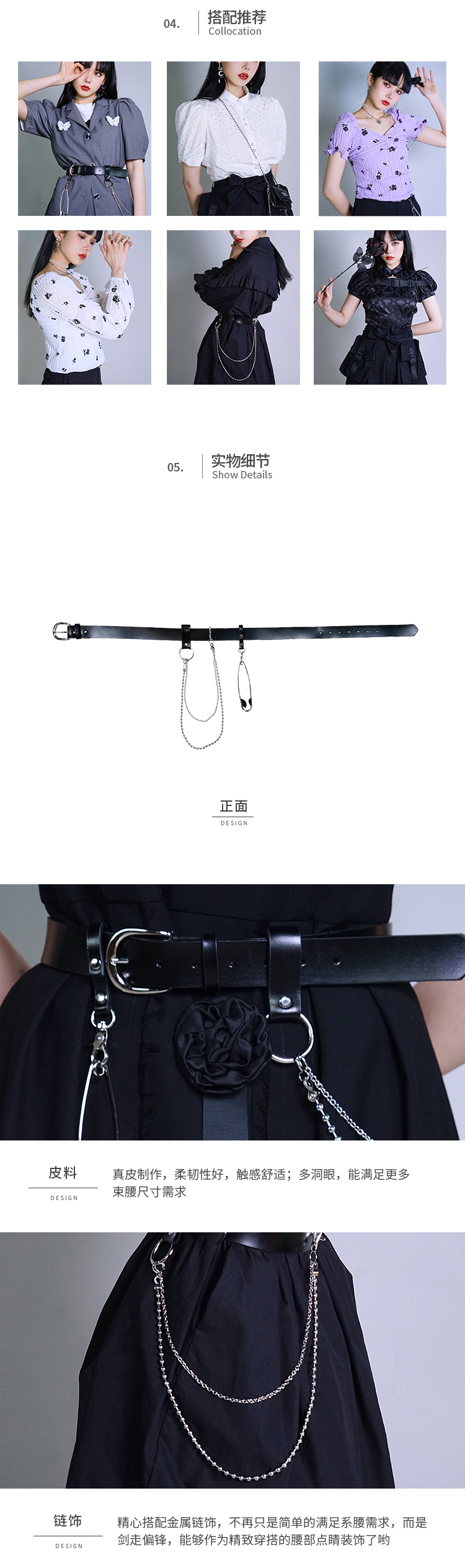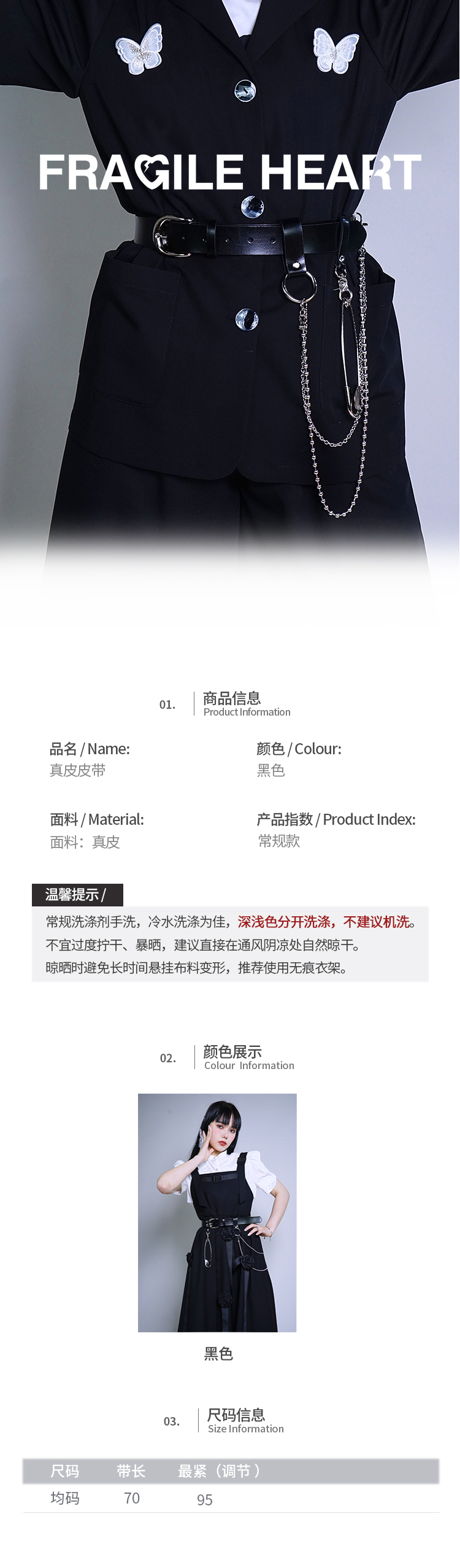 fragileheart原创设计感双链条真皮别针黑色皮带搭配衬衫宽腰带女
