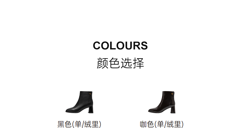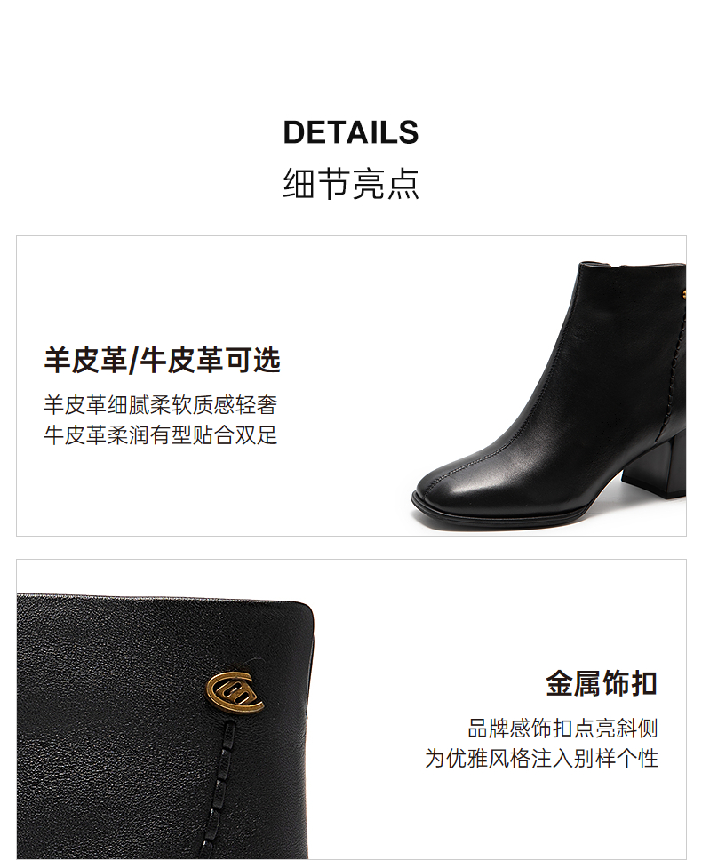 千百度粗高跟羊皮靴时装靴女加绒保暖显瘦轻奢短靴子A25552336
