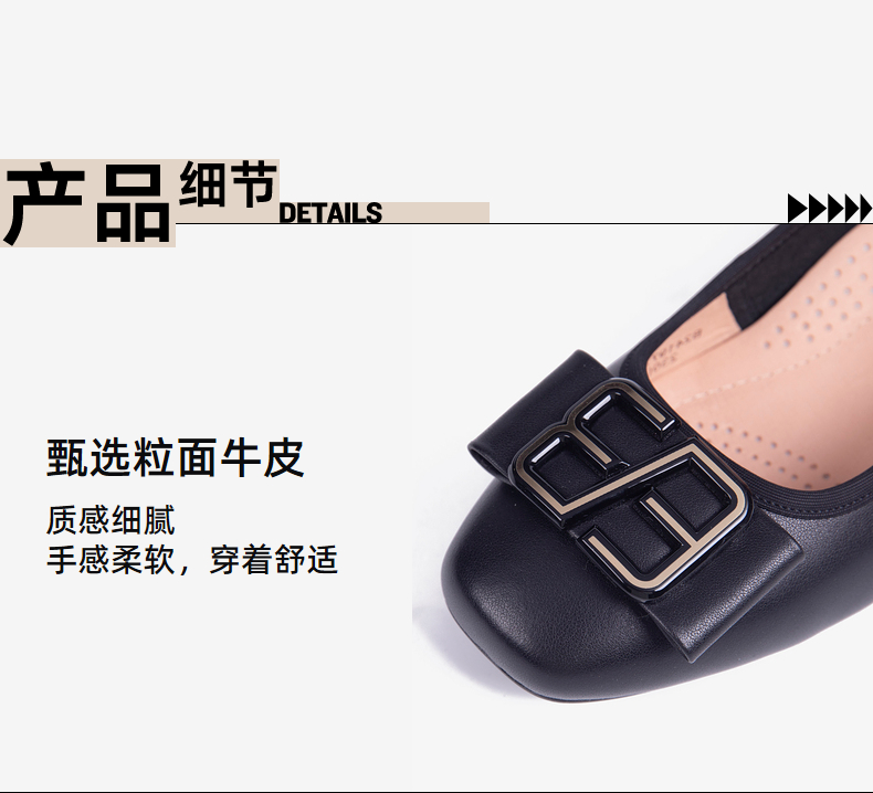千百度低跟珍珠玛丽珍鞋女羊皮平底晚晚鞋浅口单鞋A25480059
