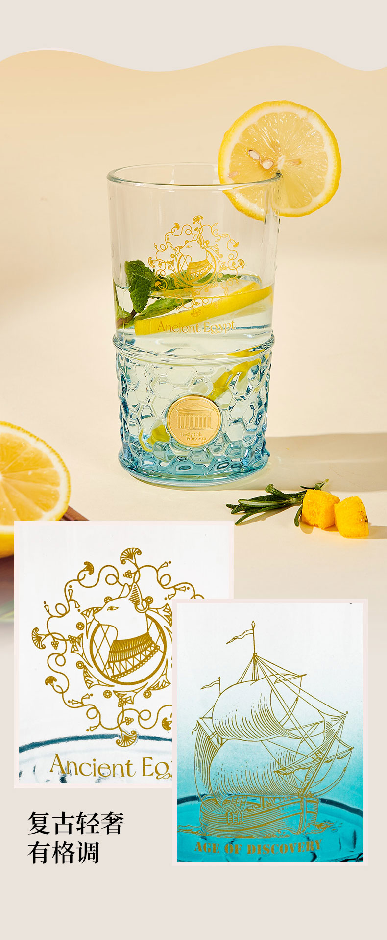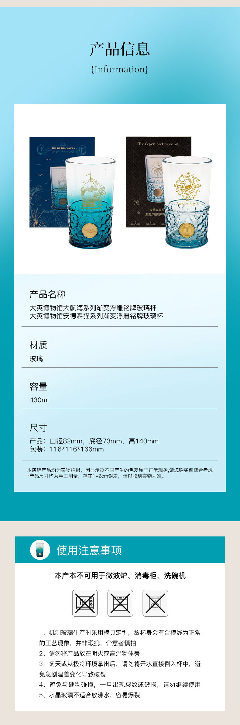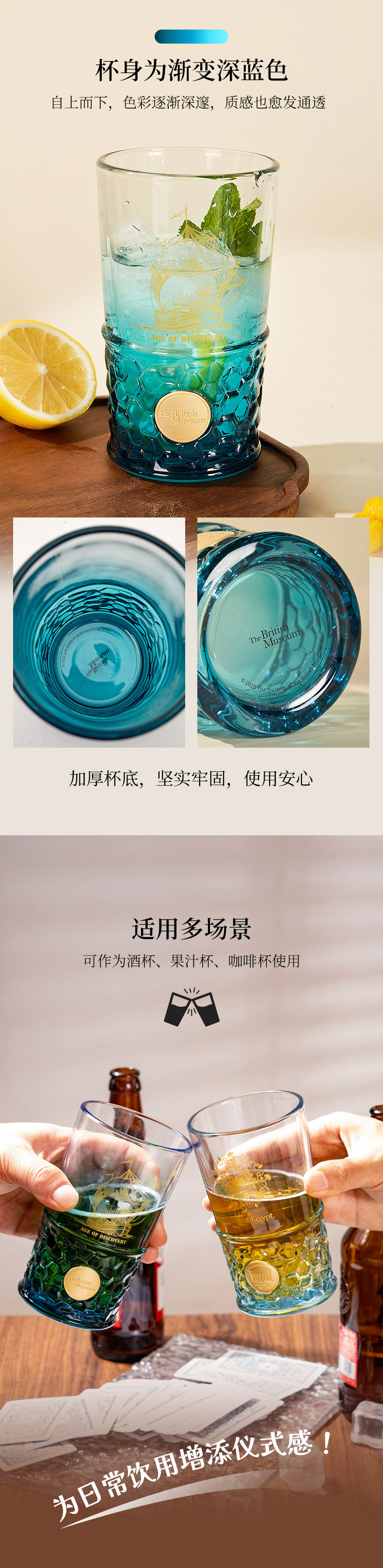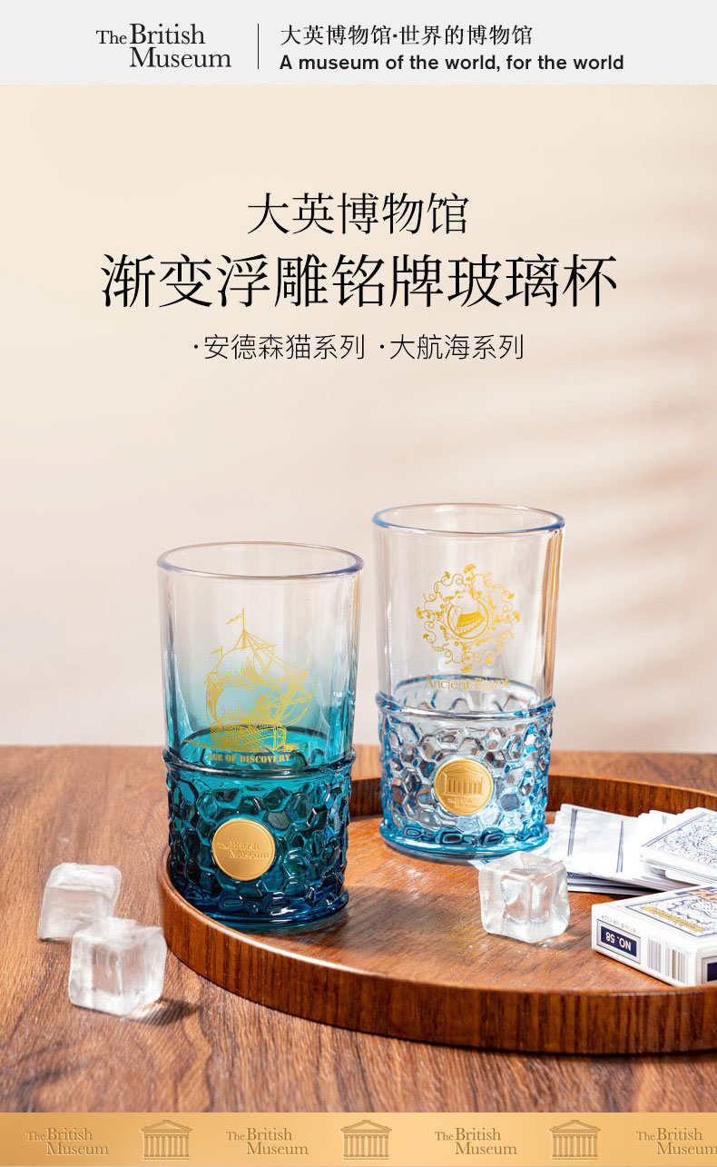 大英博物馆 大航海系列渐变浮雕铭牌玻璃杯 安德森猫系列渐变浮雕铭牌玻璃杯