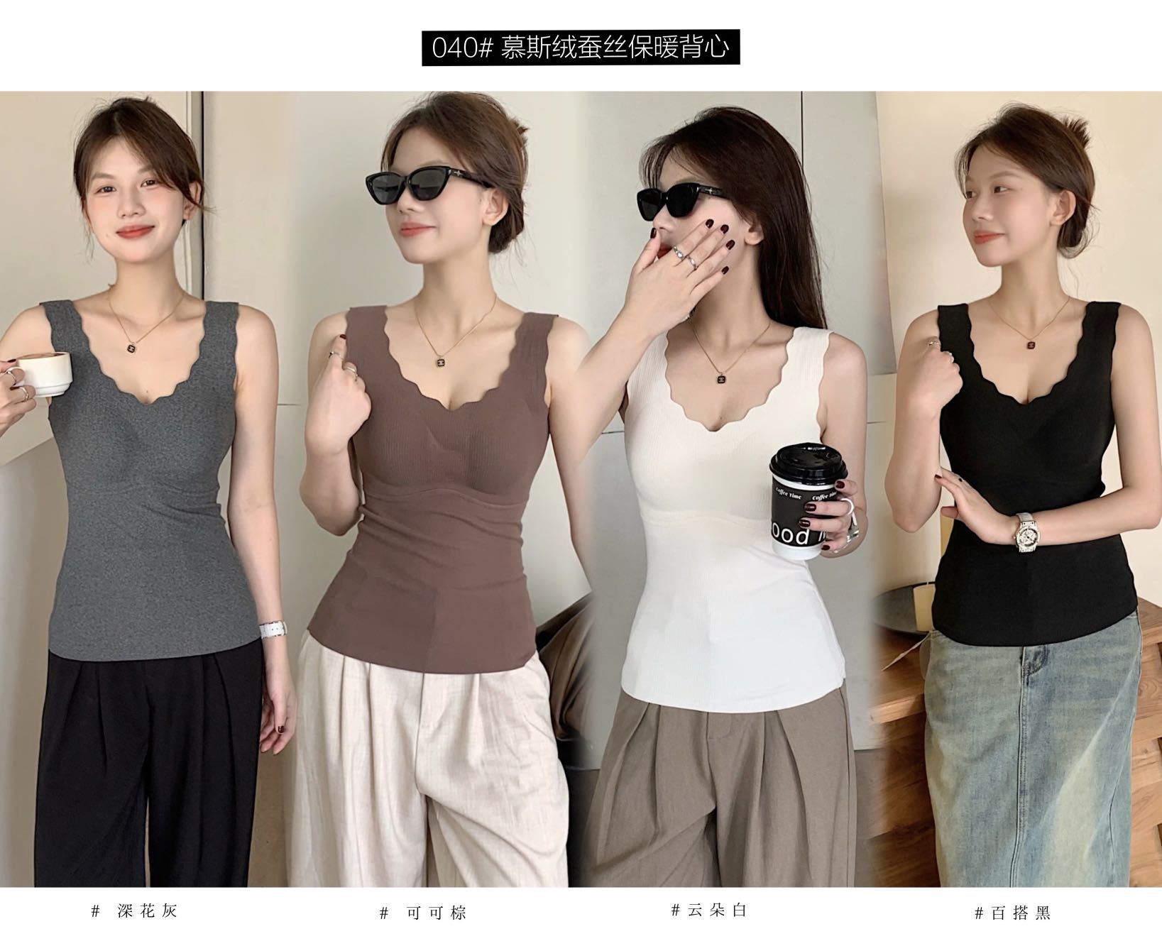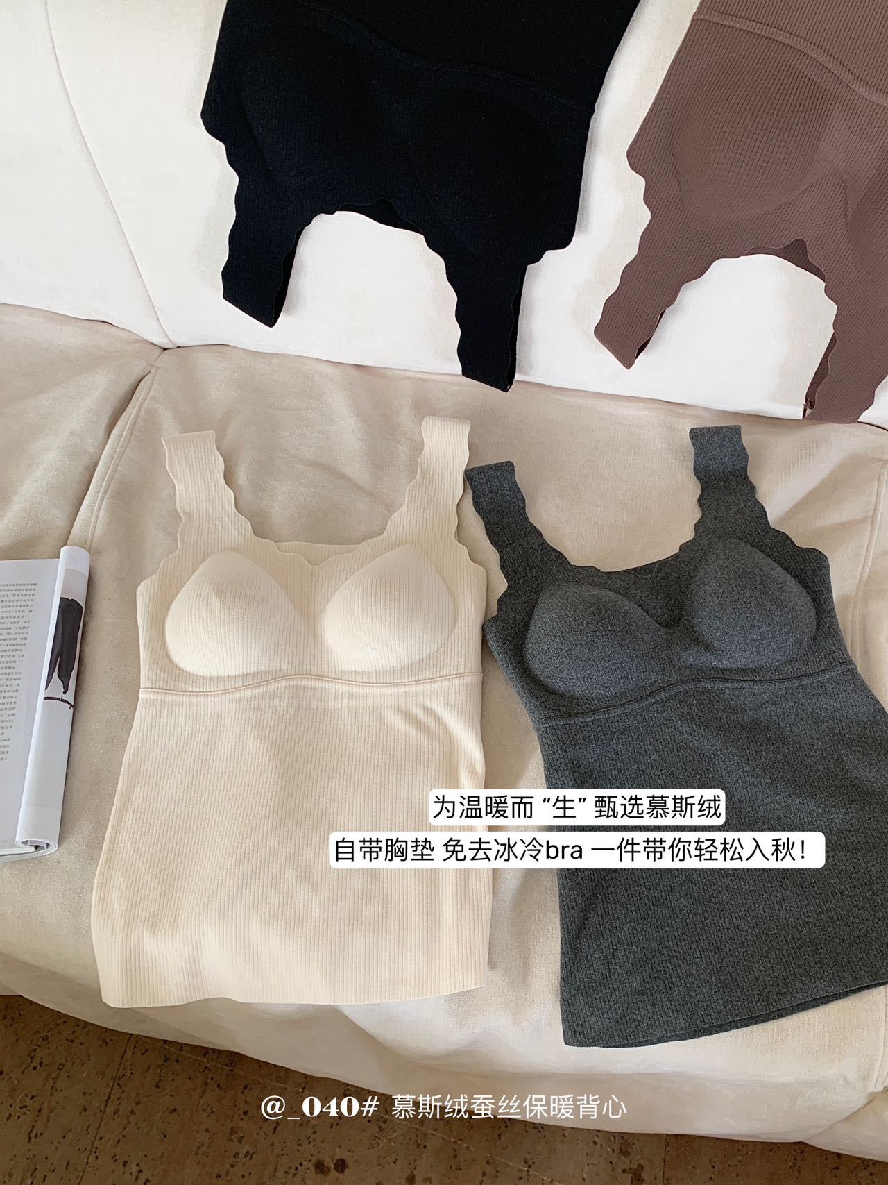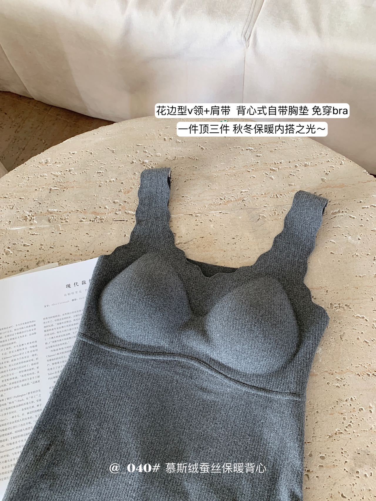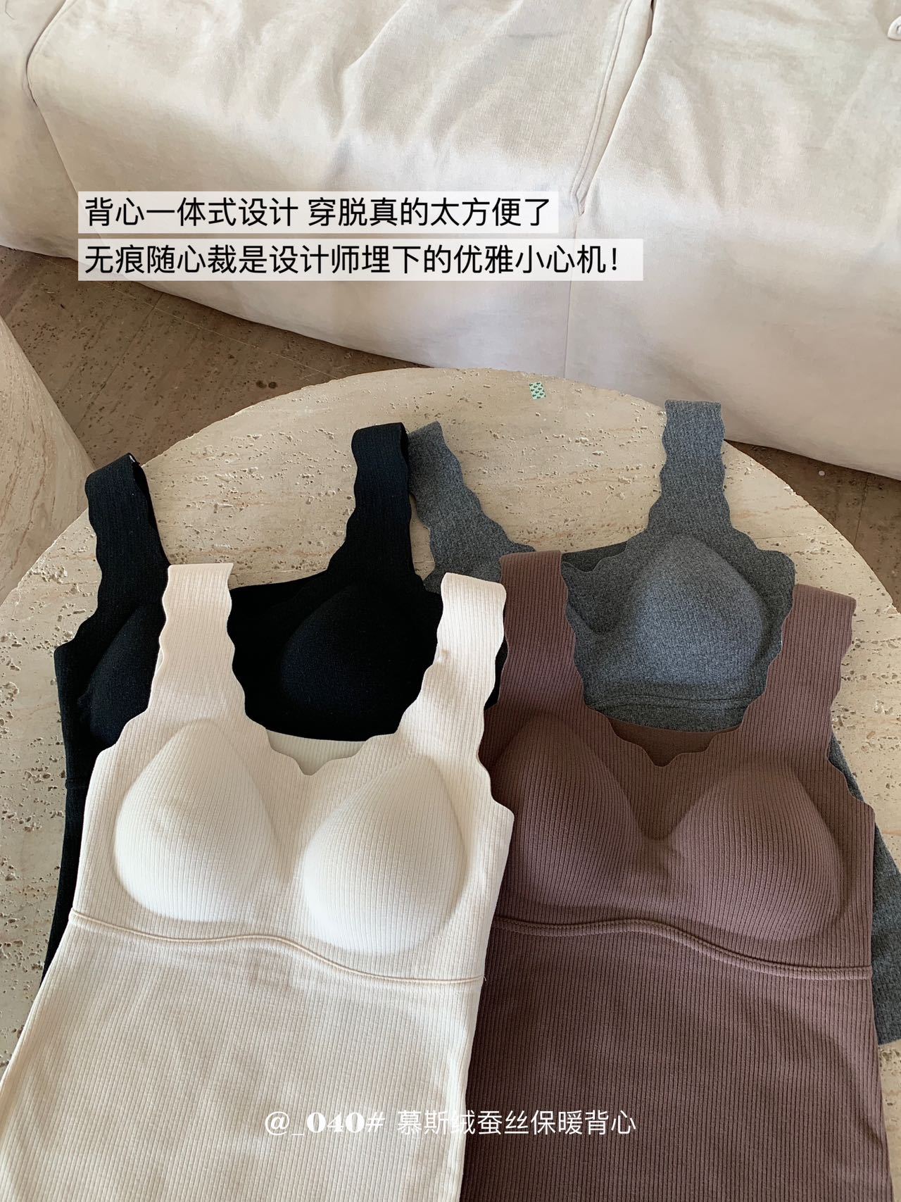 秋冬【慕思绒一体发热背心】绵羊毛蚕丝保暖内衣 发热一体式带文胸背 心可外穿内搭打底衣