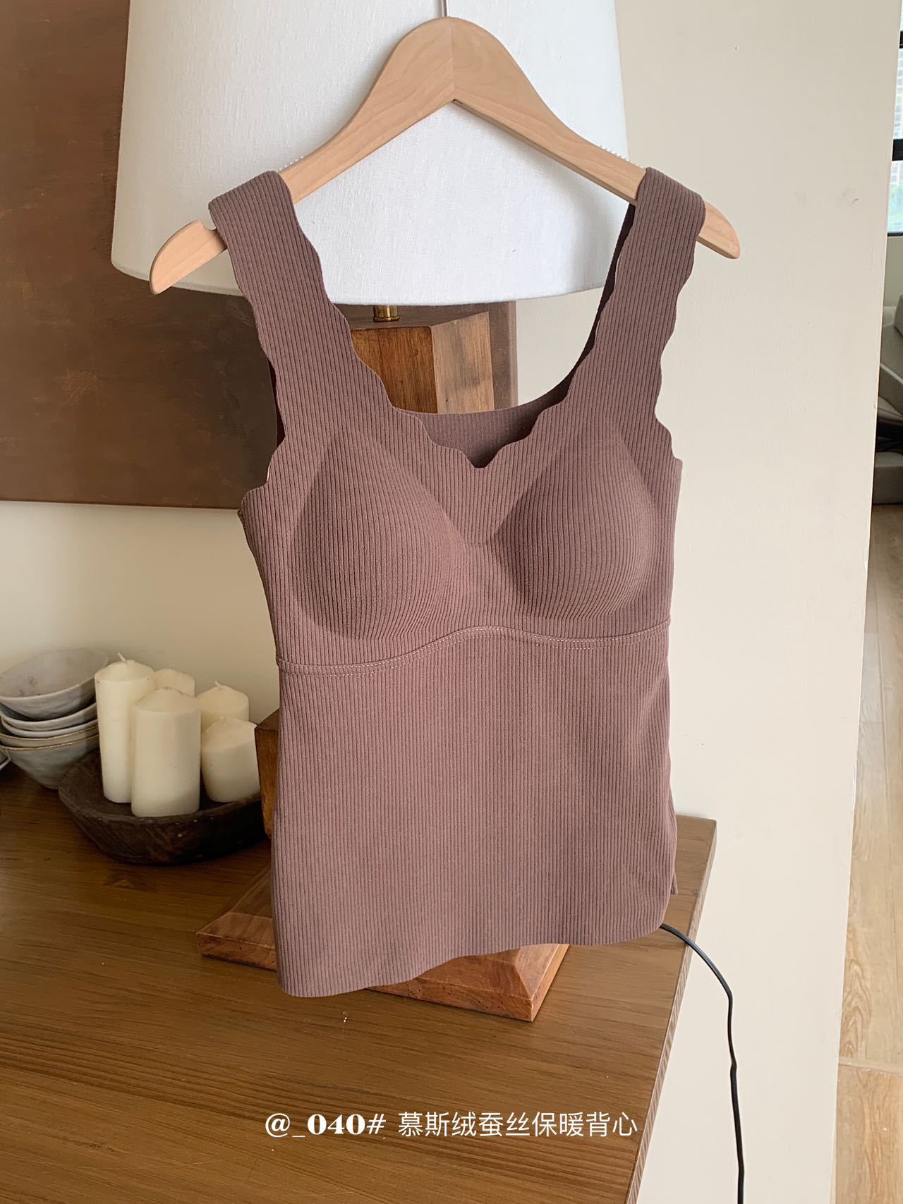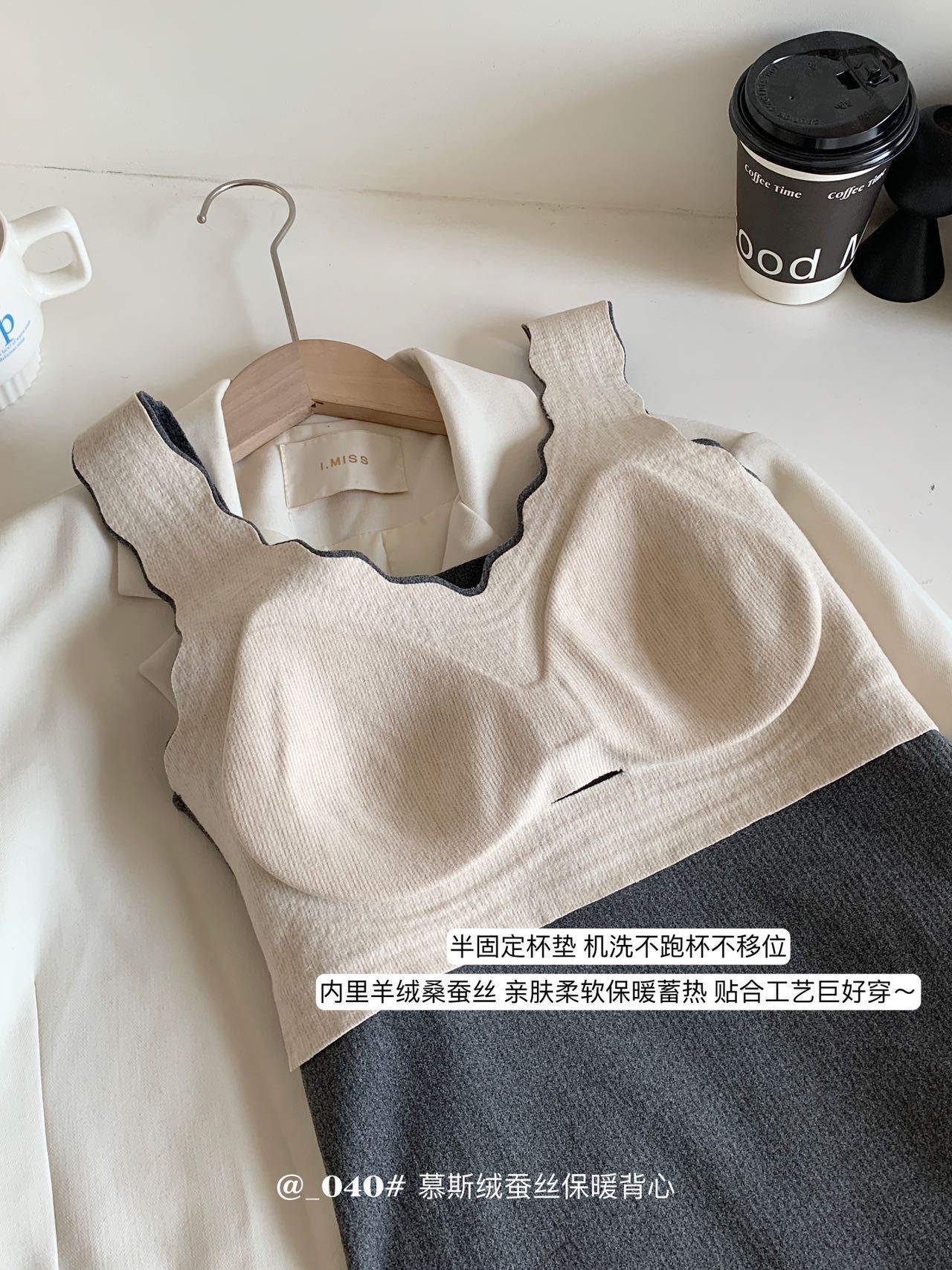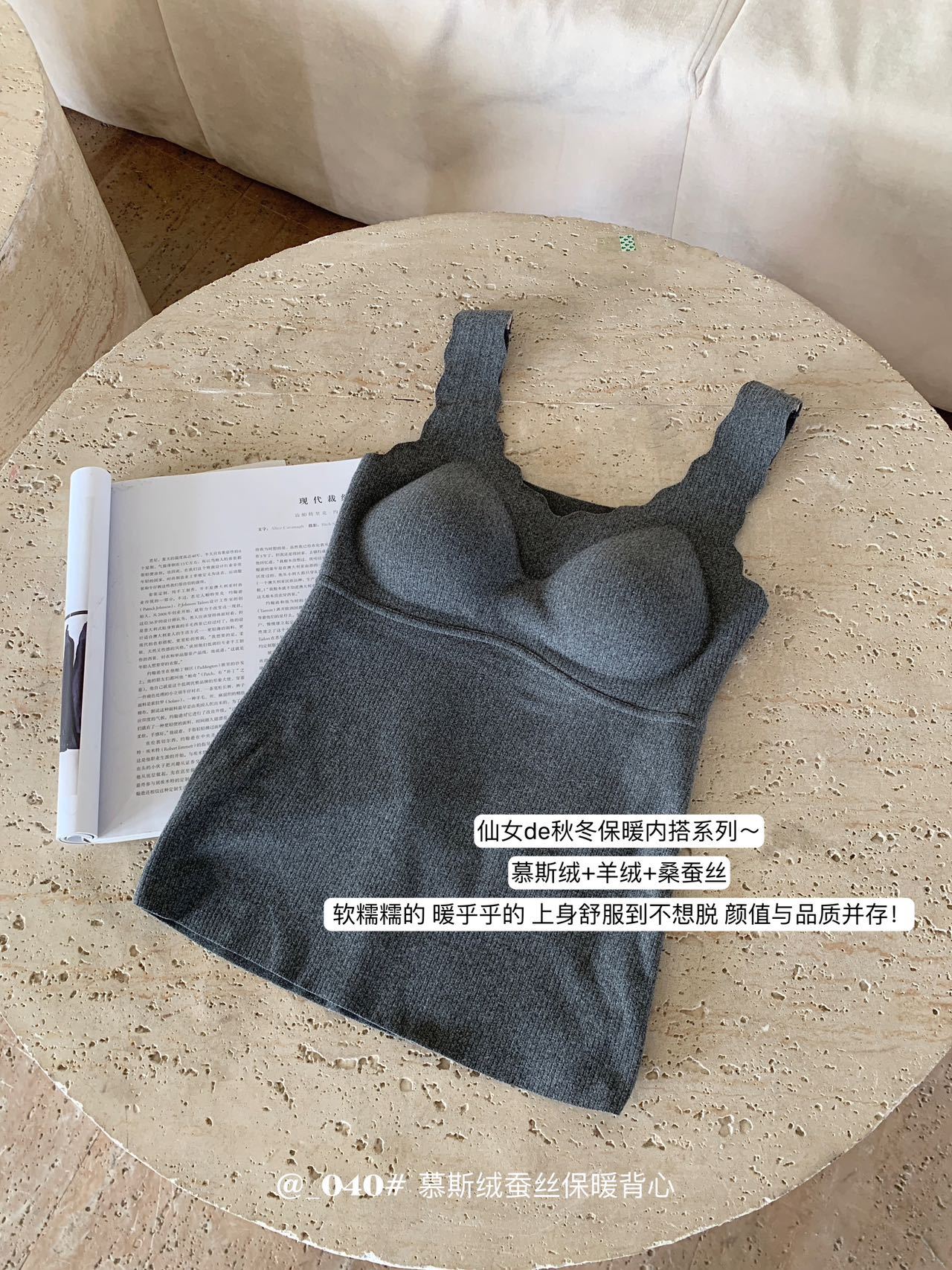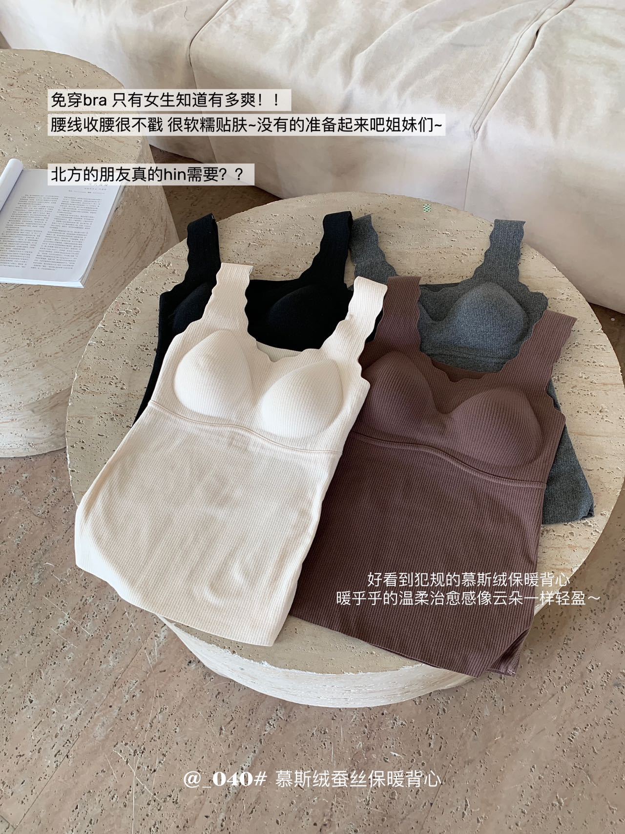 秋冬【慕思绒一体发热背心】绵羊毛蚕丝保暖内衣 发热一体式带文胸背 心可外穿内搭打底衣