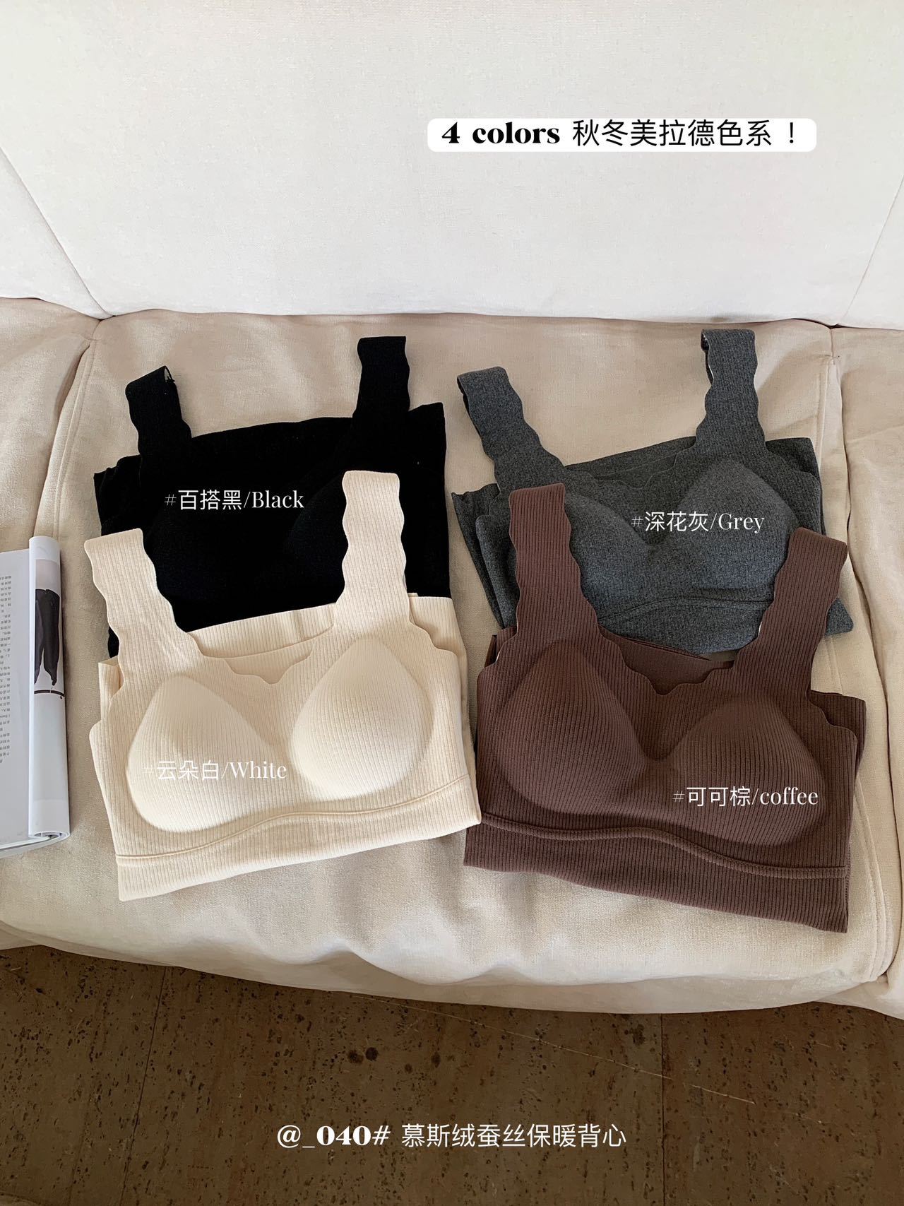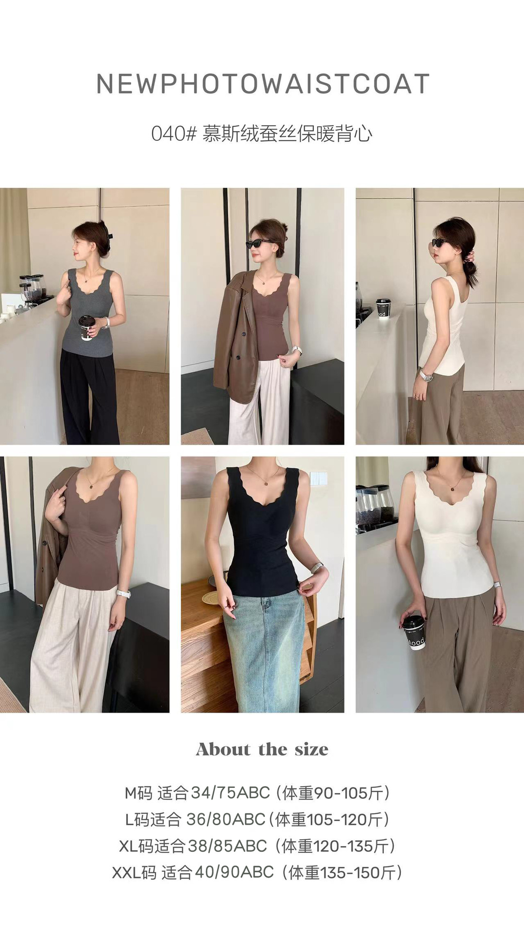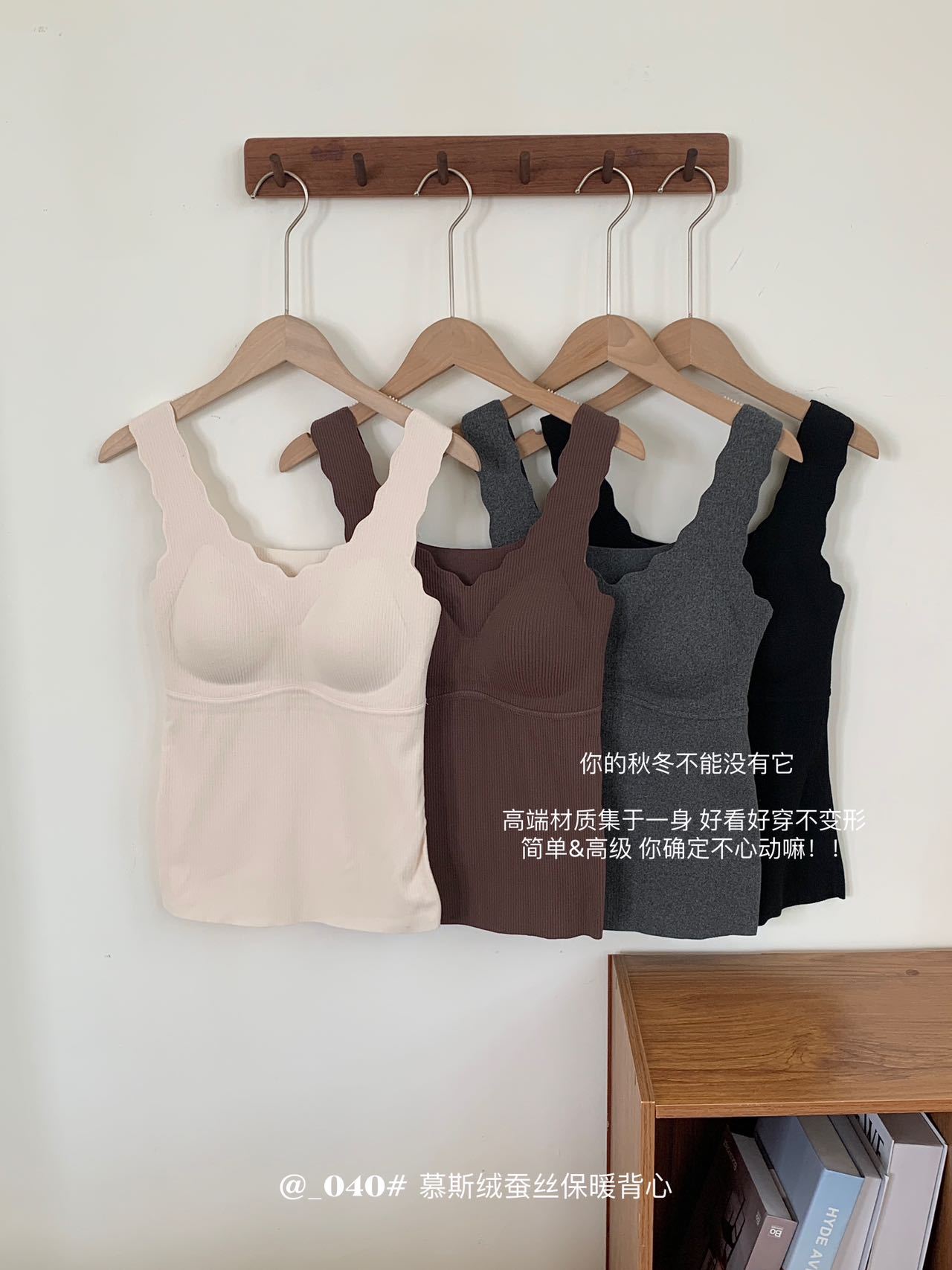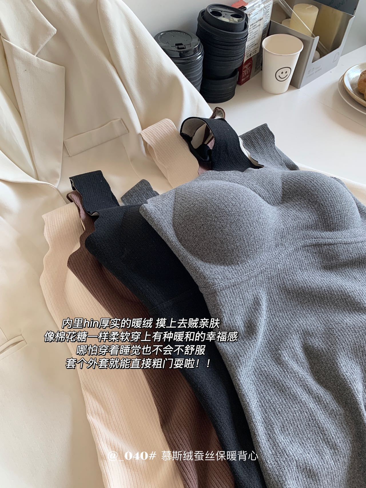 秋冬【慕思绒一体发热背心】绵羊毛蚕丝保暖内衣 发热一体式带文胸背 心可外穿内搭打底衣