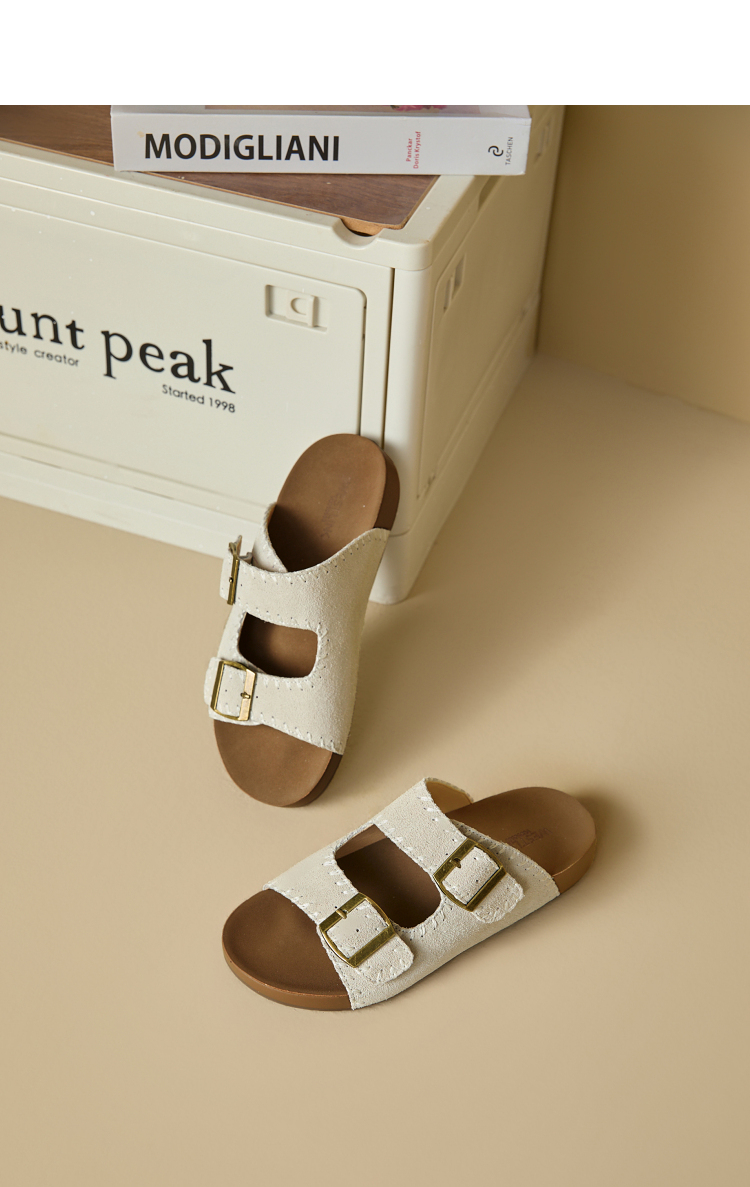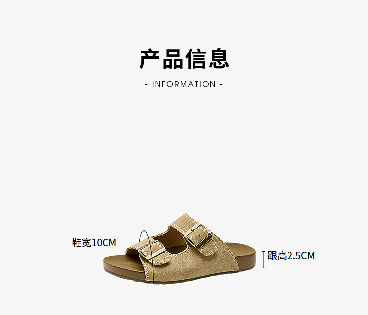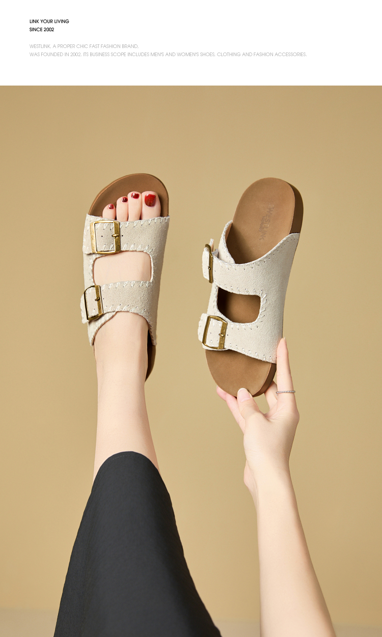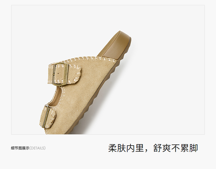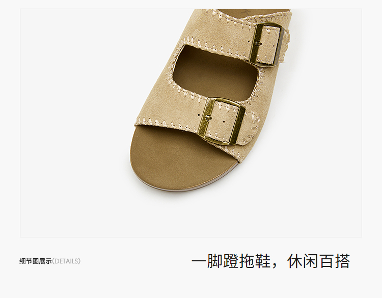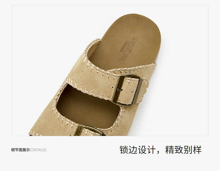 西遇厚底勃肯拖鞋女新款夏季复古缝线休闲沙滩一字拖外穿凉拖V0056560