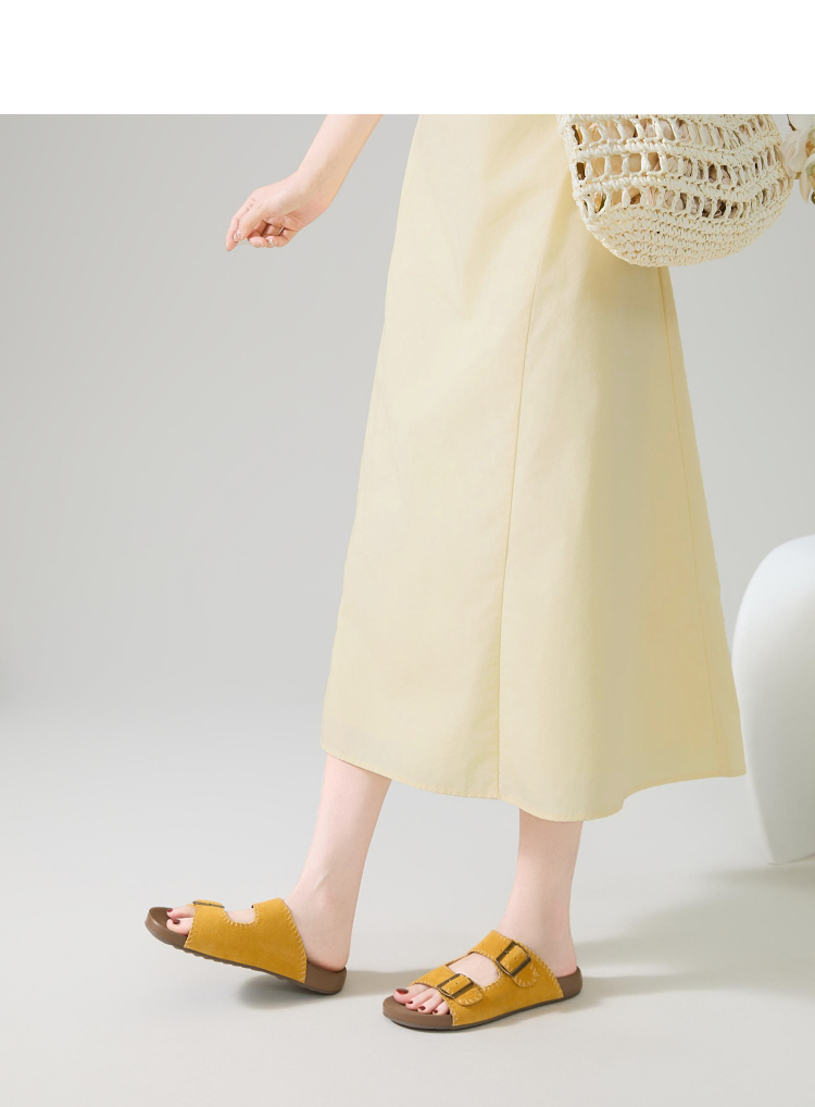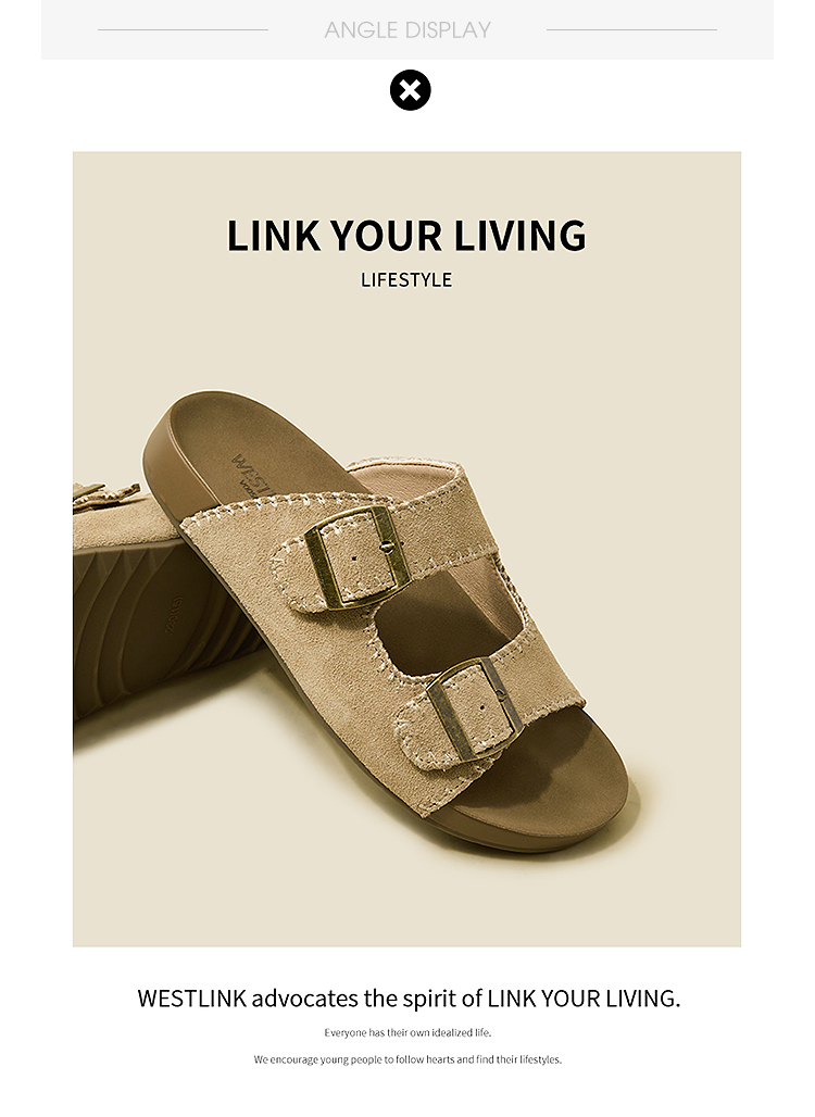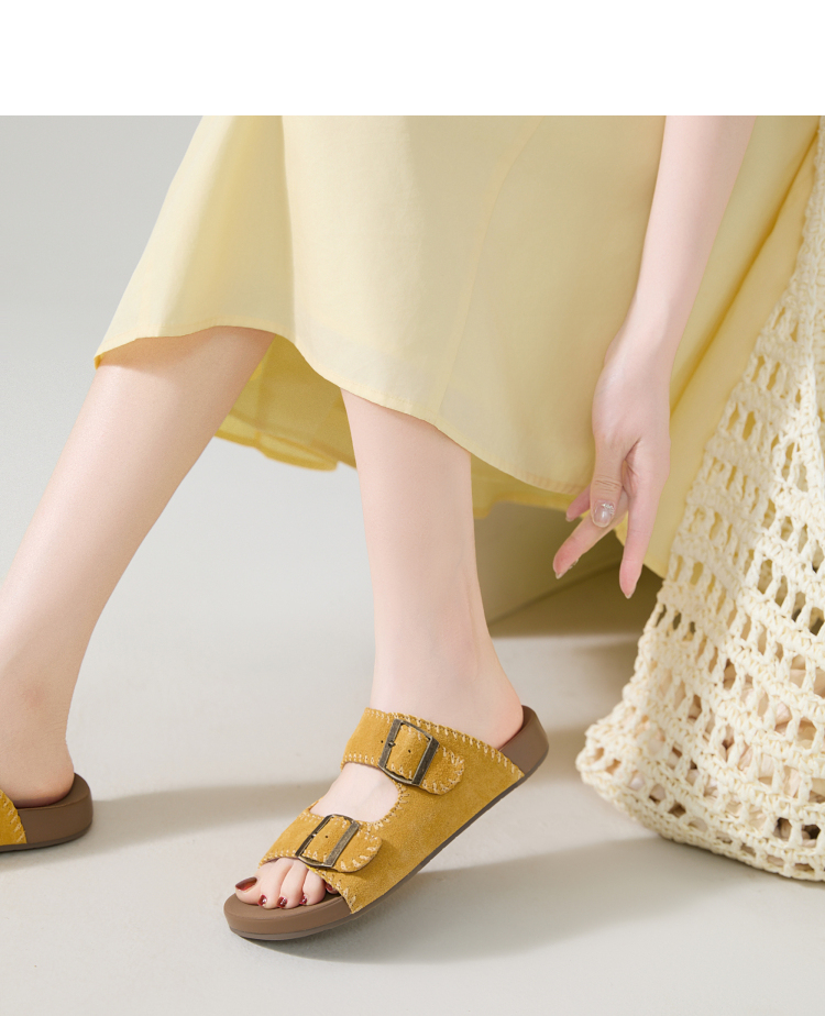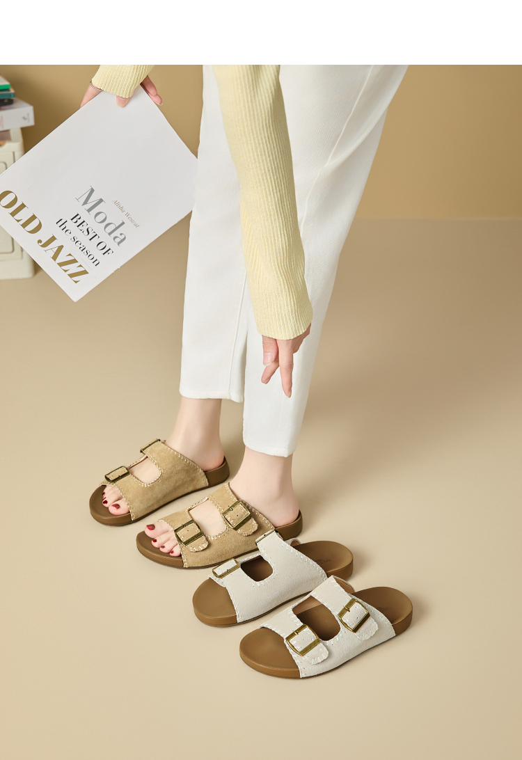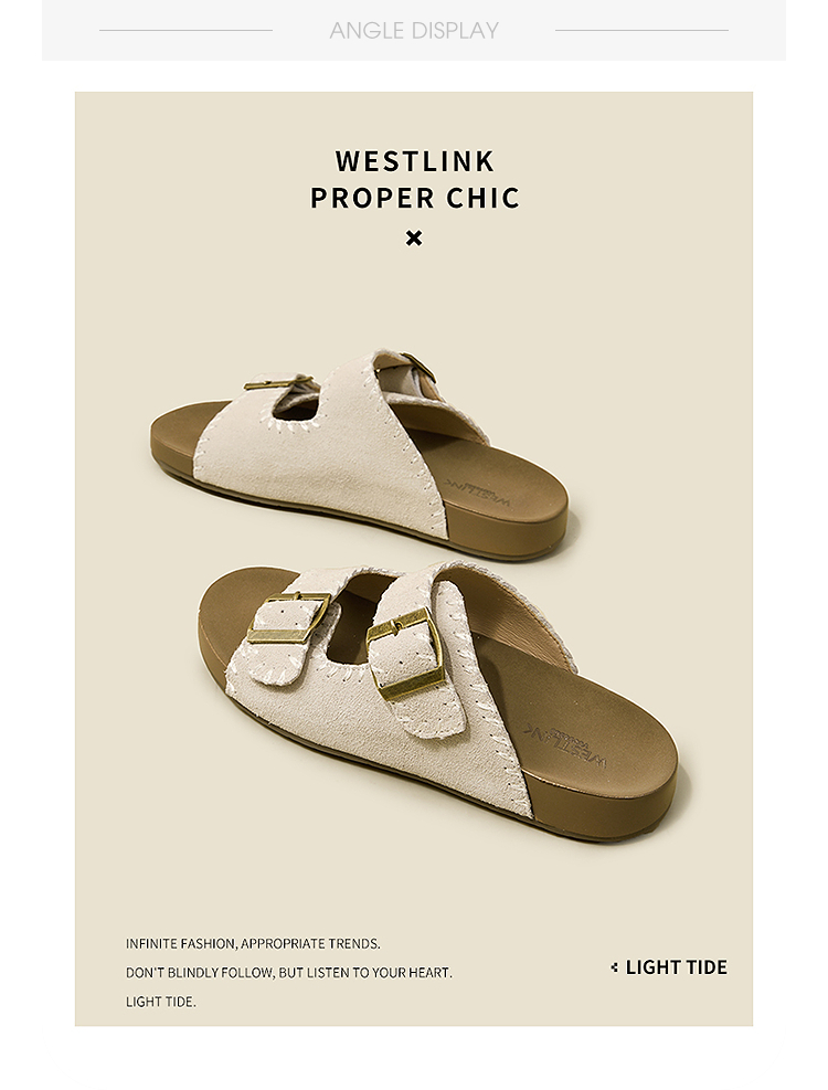 西遇厚底勃肯拖鞋女新款夏季复古缝线休闲沙滩一字拖外穿凉拖V0056560