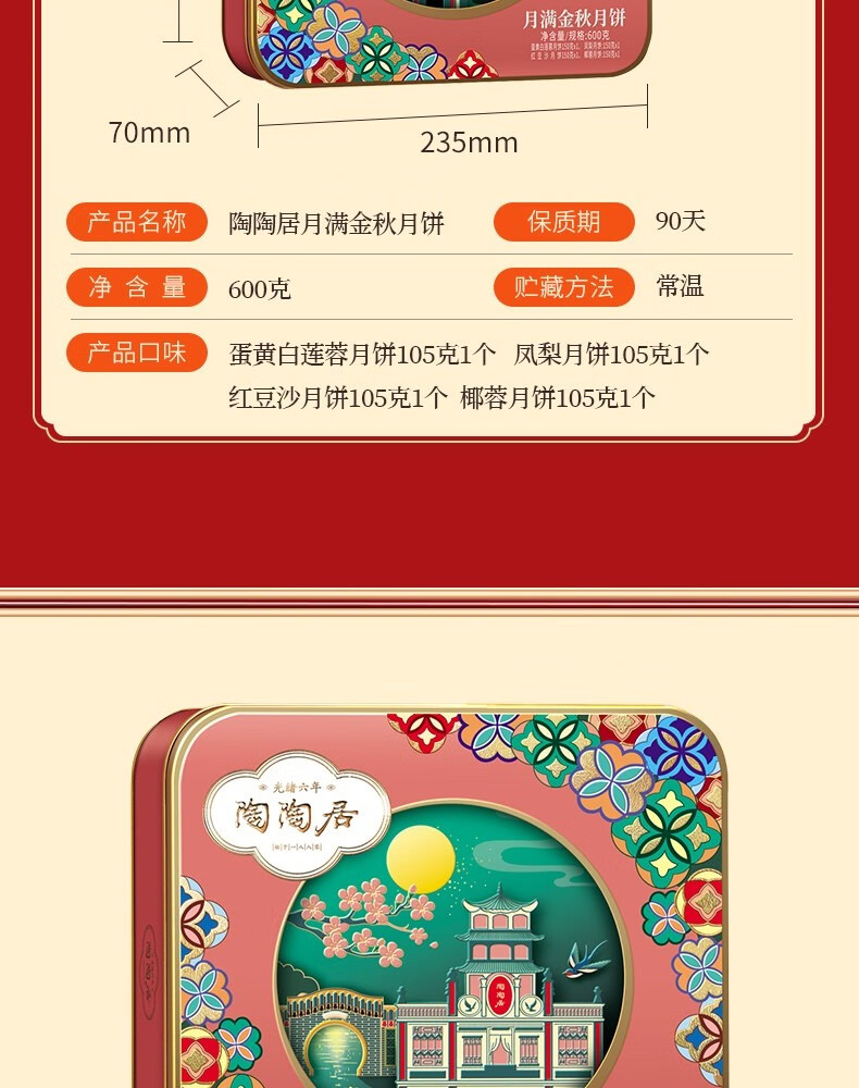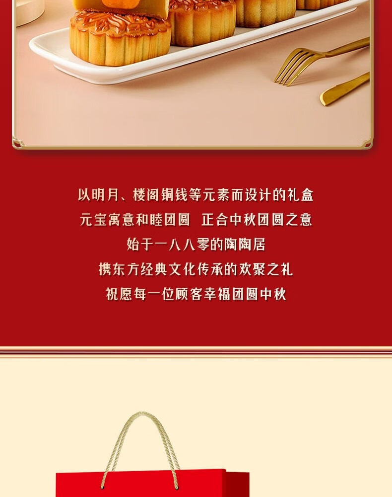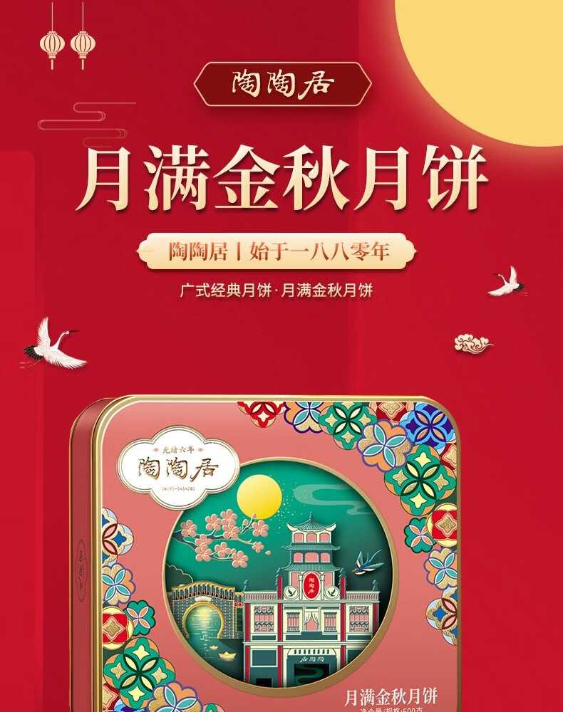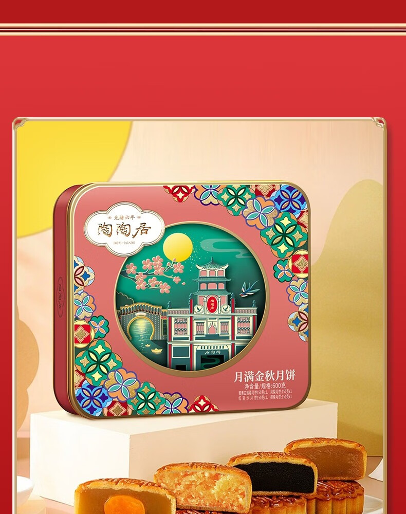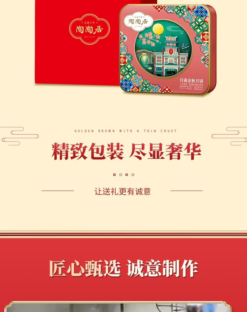 陶陶居广州酒家月饼蛋黄白莲蓉红豆沙凤梨柳蓉广式中秋月饼礼盒 陶陶居月满金秋月饼礼盒 600g