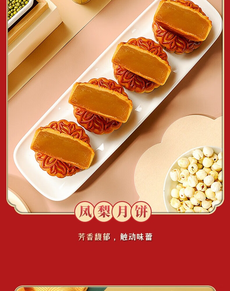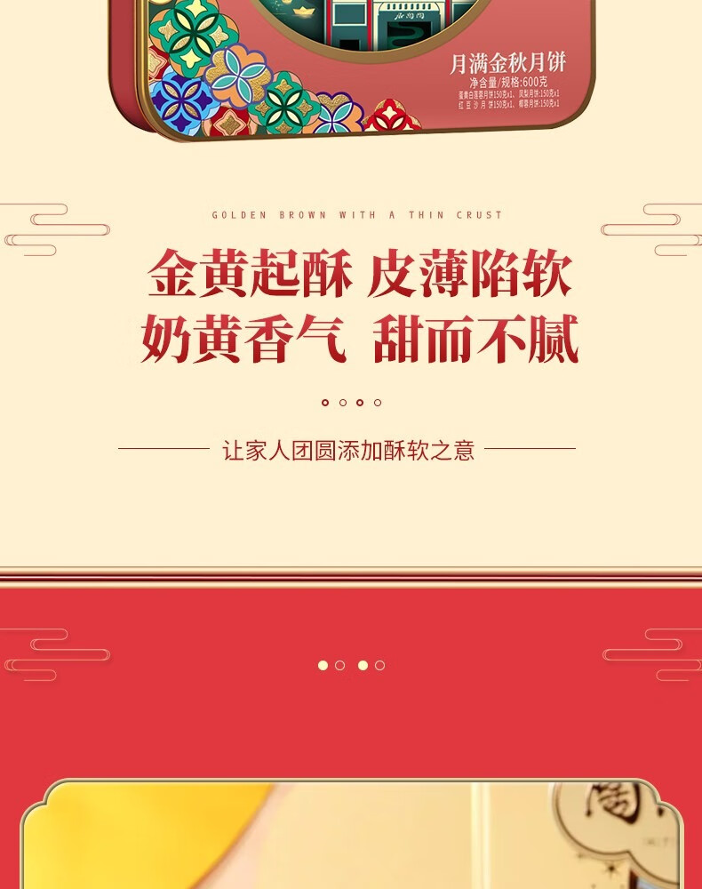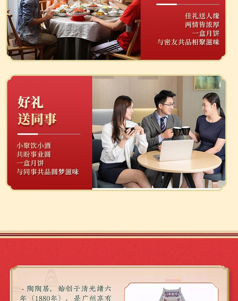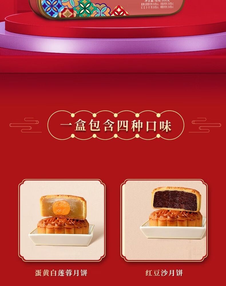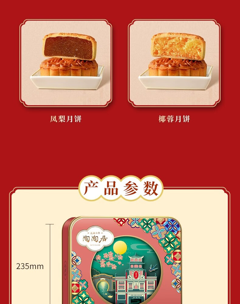 陶陶居广州酒家月饼蛋黄白莲蓉红豆沙凤梨柳蓉广式中秋月饼礼盒 陶陶居月满金秋月饼礼盒 600g