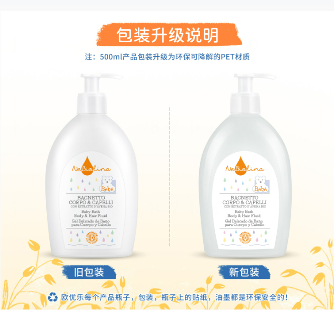 【温和清洁 燕麦萃取 无皂基 俢护 葆湿】宝宝洗发水沐浴露二合一500ml 意大利 欧优乐
