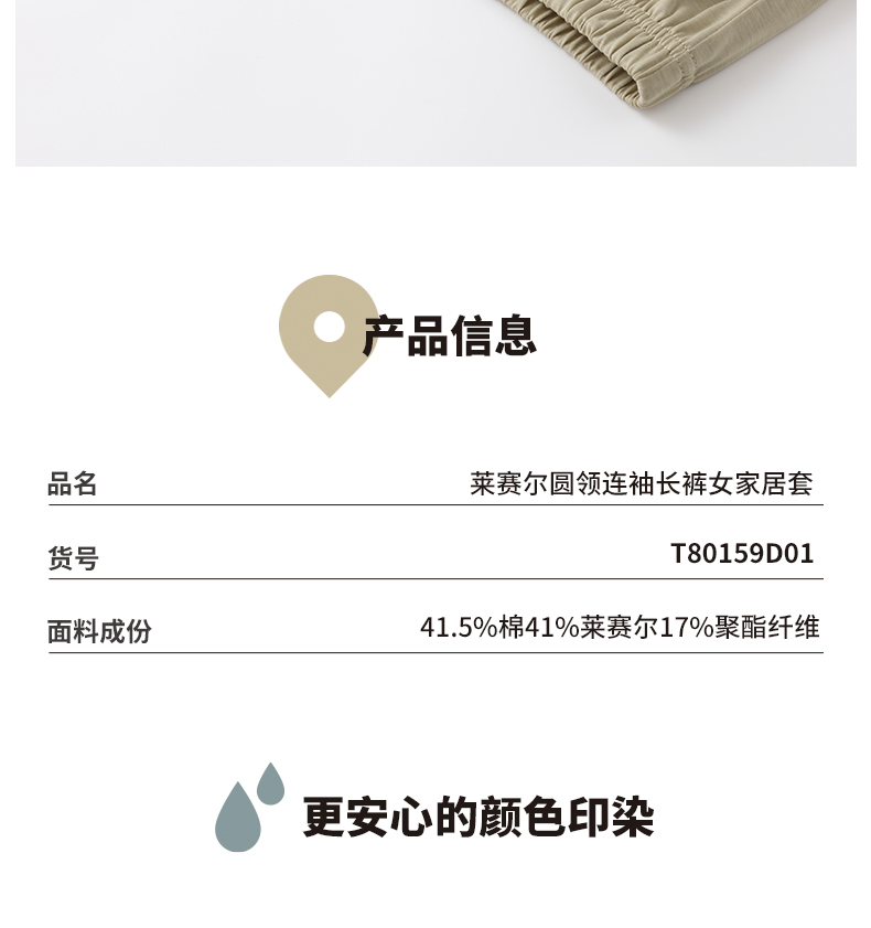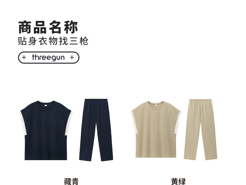Threegun三枪 莱赛尔圆领连袖长裤女家居套-T80159D01