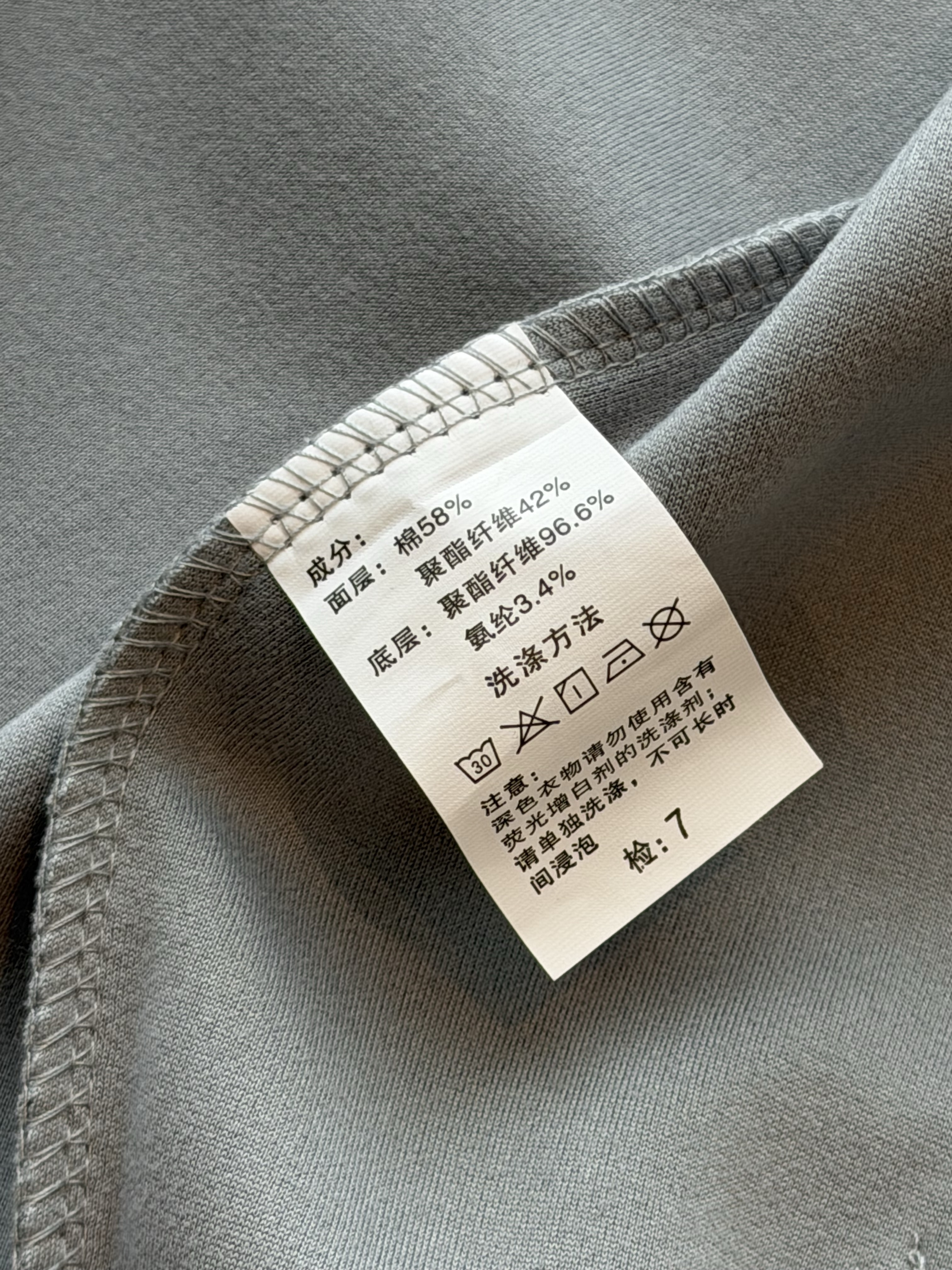 [材质/面料】面层:棉58%+聚酯纤维42%;底层:聚酯纤维96.6%+氨纶3.4%售后标准:不影响二次销售的情况下支持7天无理由退换货,拒收/拦截买需扣发出运费3元