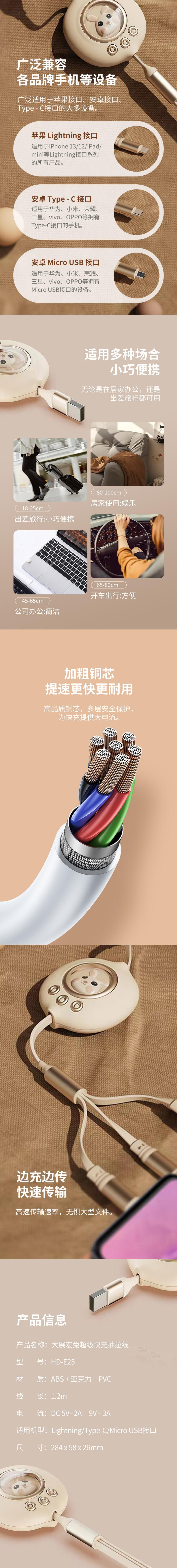 幻响 大展宏兔抽拉快充数据线HD-E25
