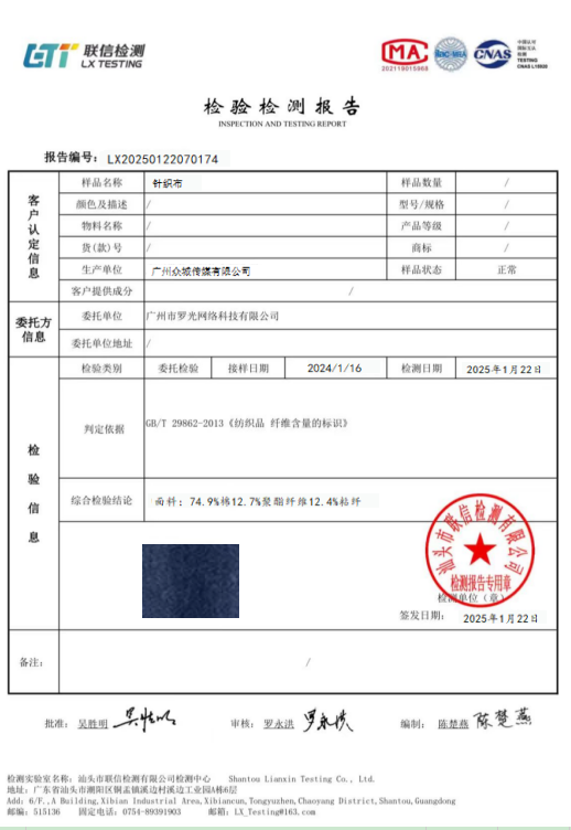 面料:74.9%棉12.7%聚酯纤维12.4%粘纤