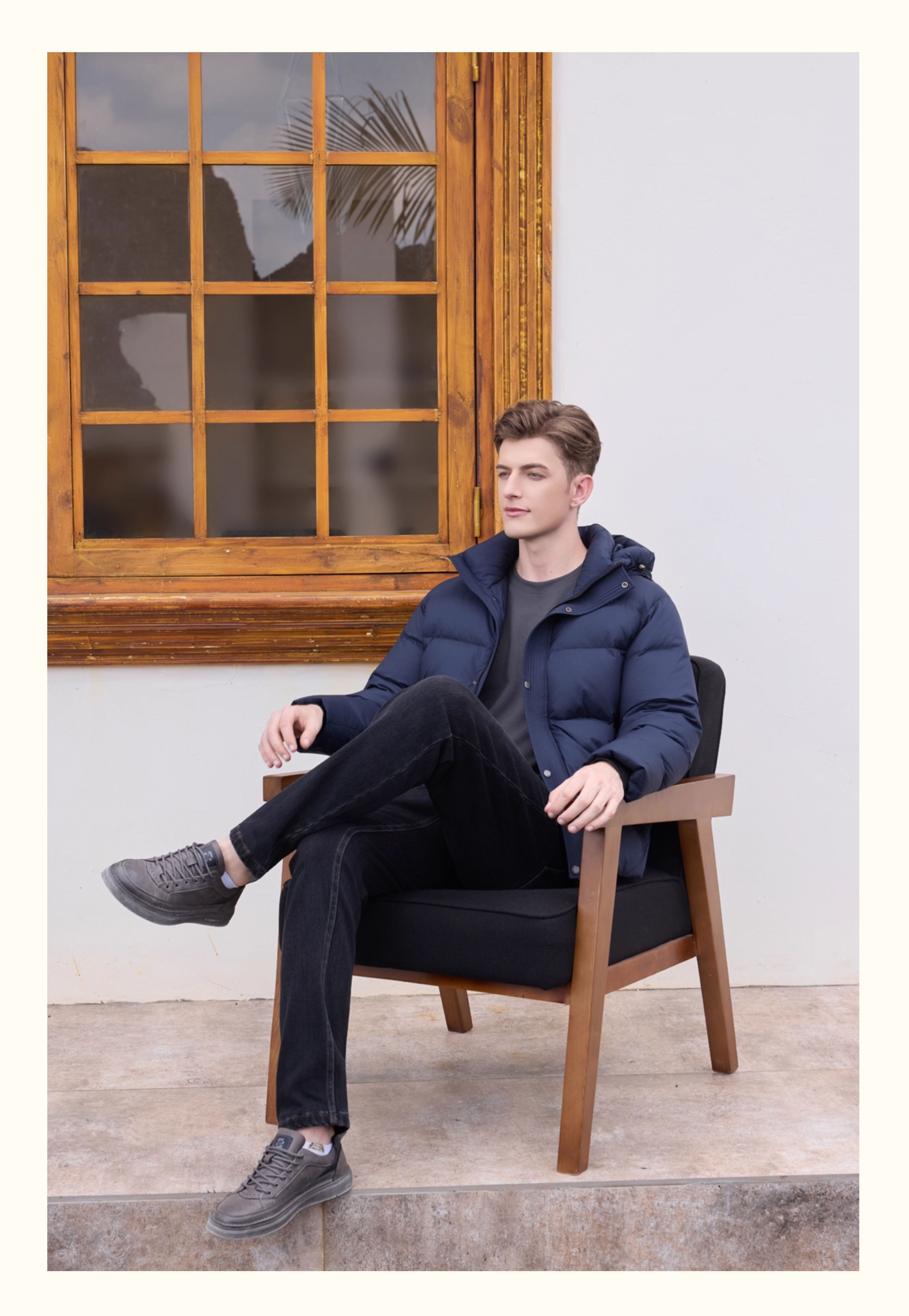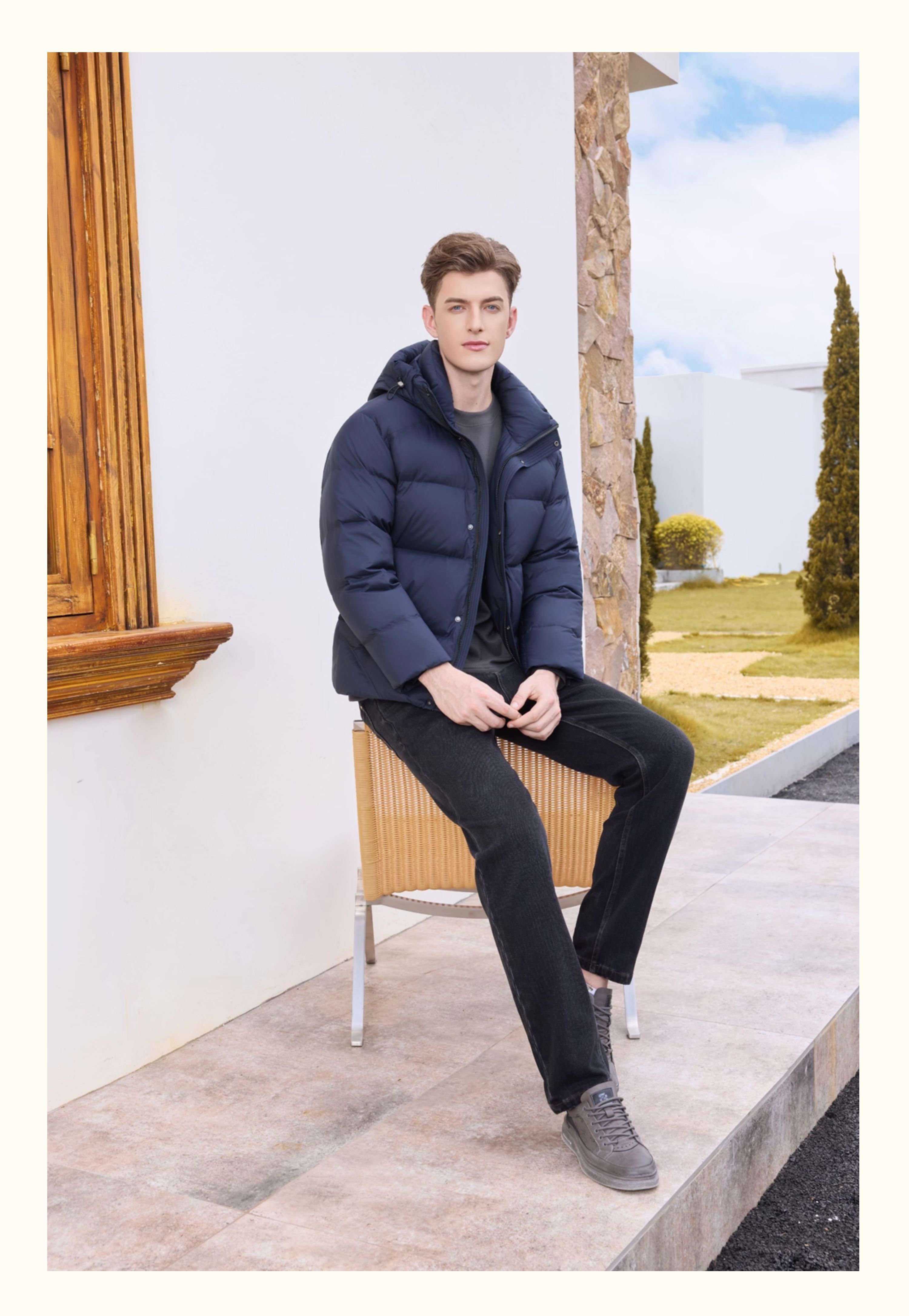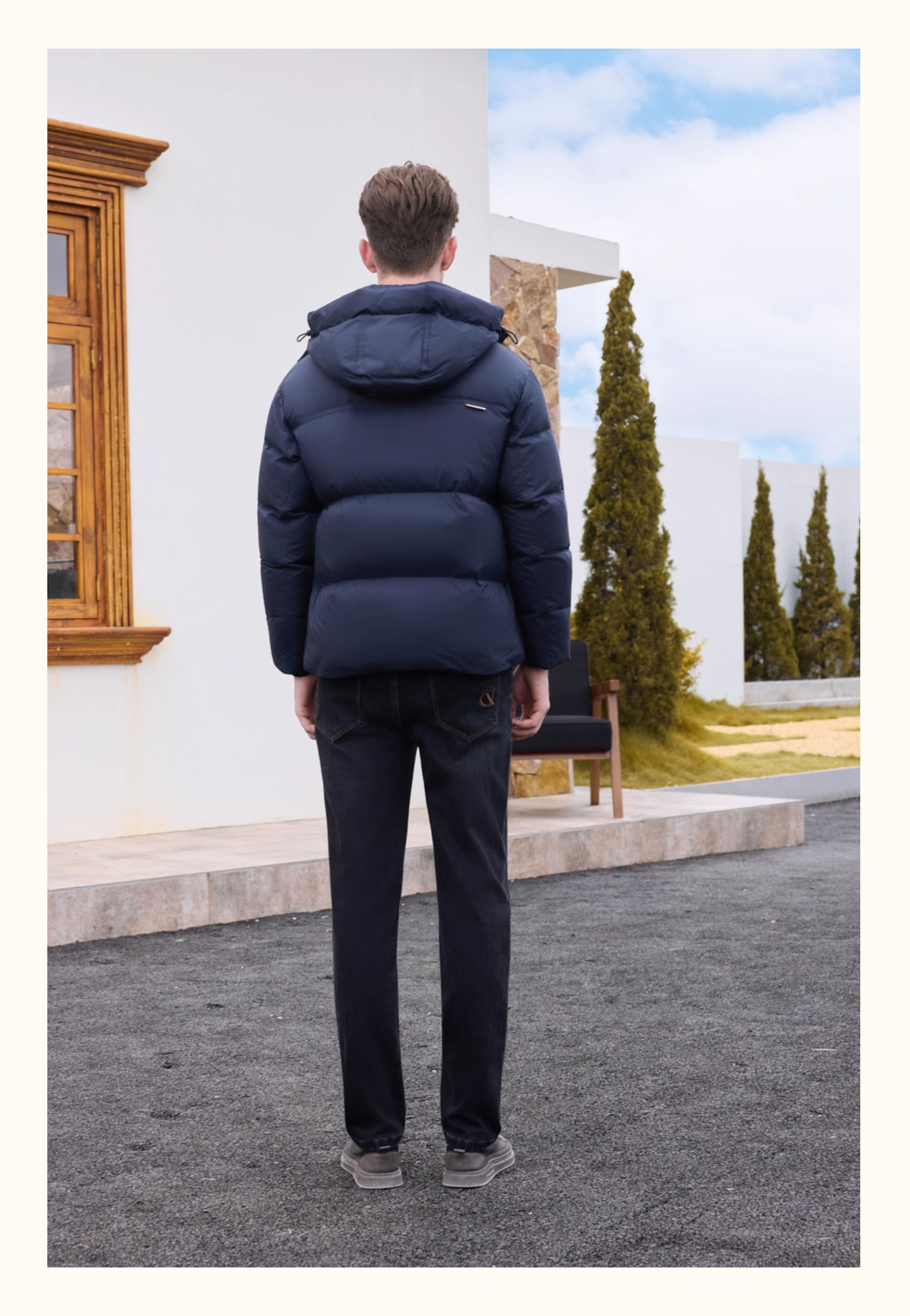 半身缘男装 冬季连帽经典百搭舒适羽绒服254312M01710124