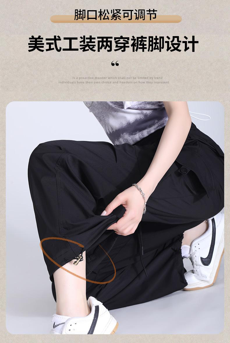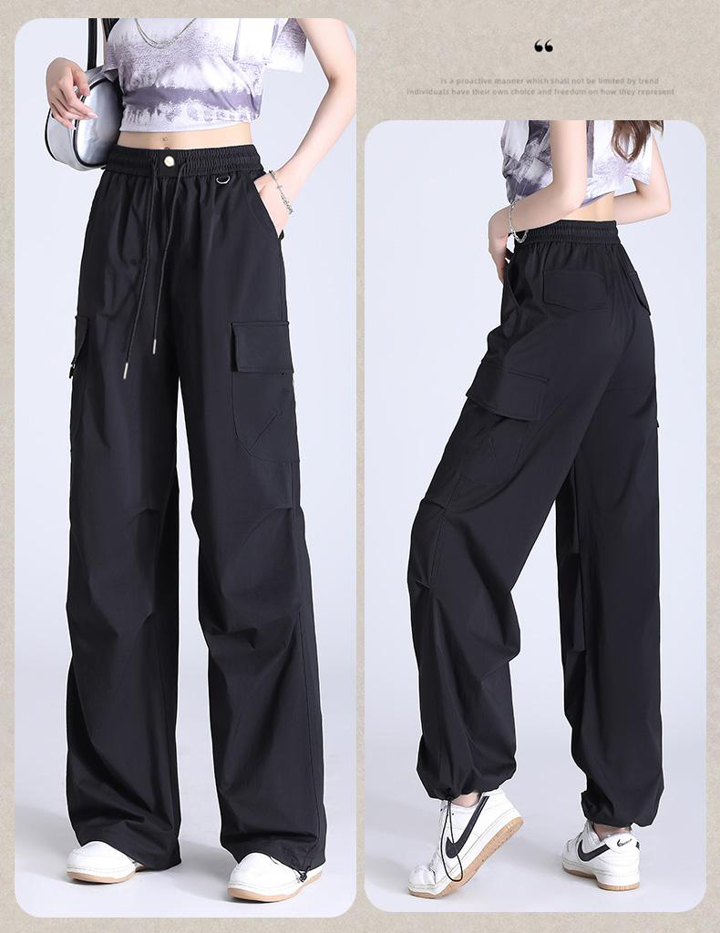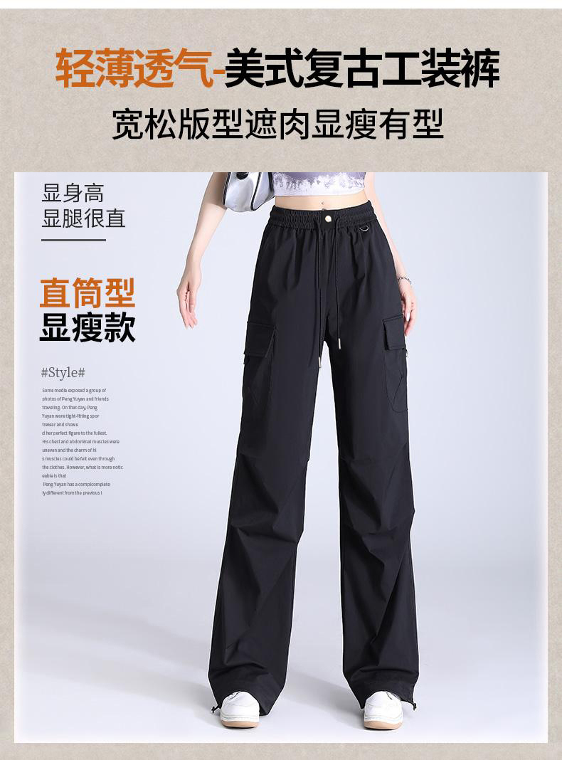 半身缘女裤 春季宽松松紧腰显瘦工装百搭美式直筒裤DS106