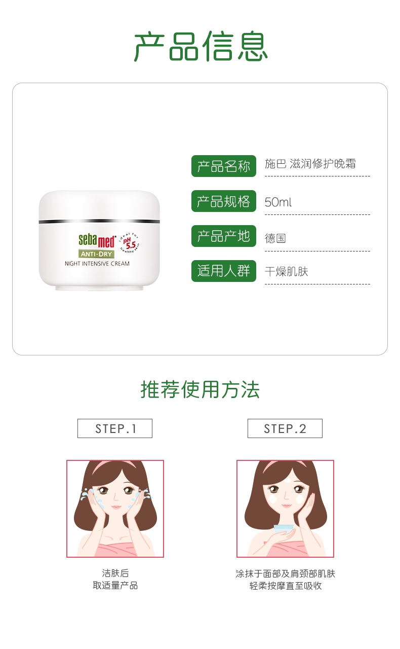 【中欧班列】德国施巴滋润系列修护晚霜 原装进口夜间调理呵护细腻皮肤不油腻晚霜 50ml/瓶