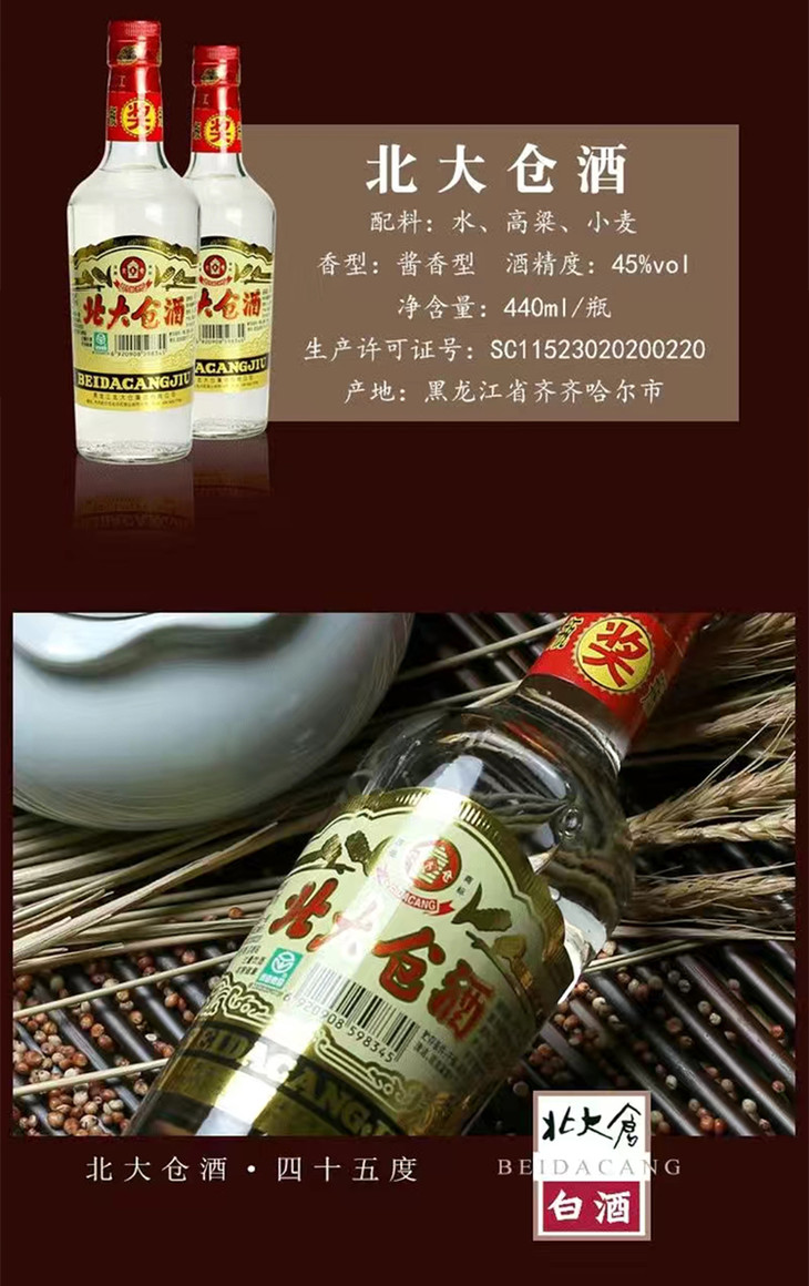 北大仓简装酒 45度酱香型白酒 整箱440ml*12瓶包邮